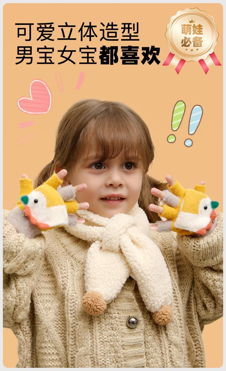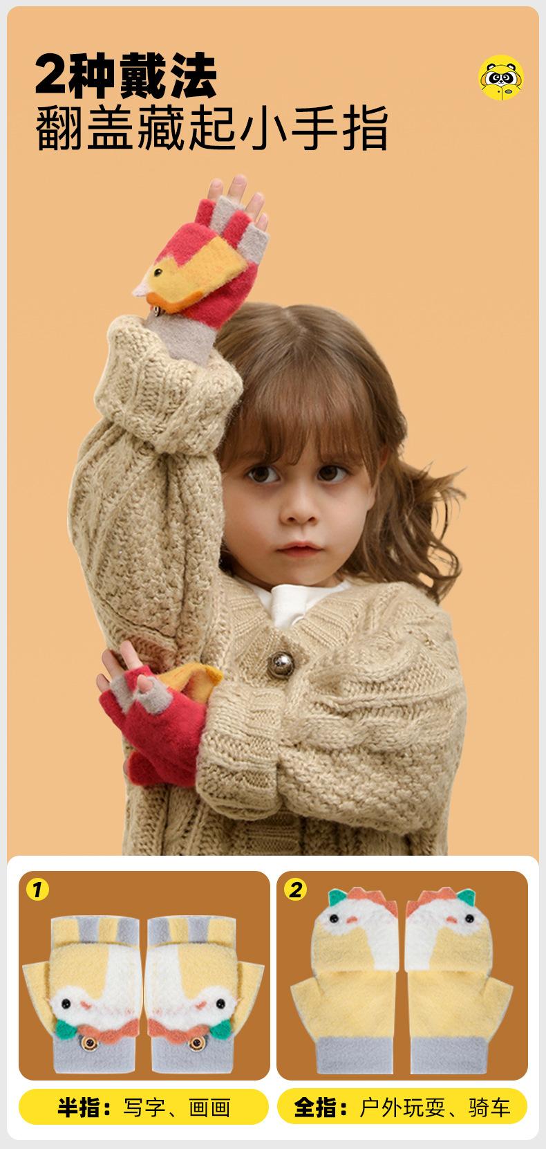 Invierno nuevos guantes para niños al por mayor para exteriores cálidos a prueba de viento de dibujos animados lindos de felpa tejidos guantes para bebés para niños y niñas