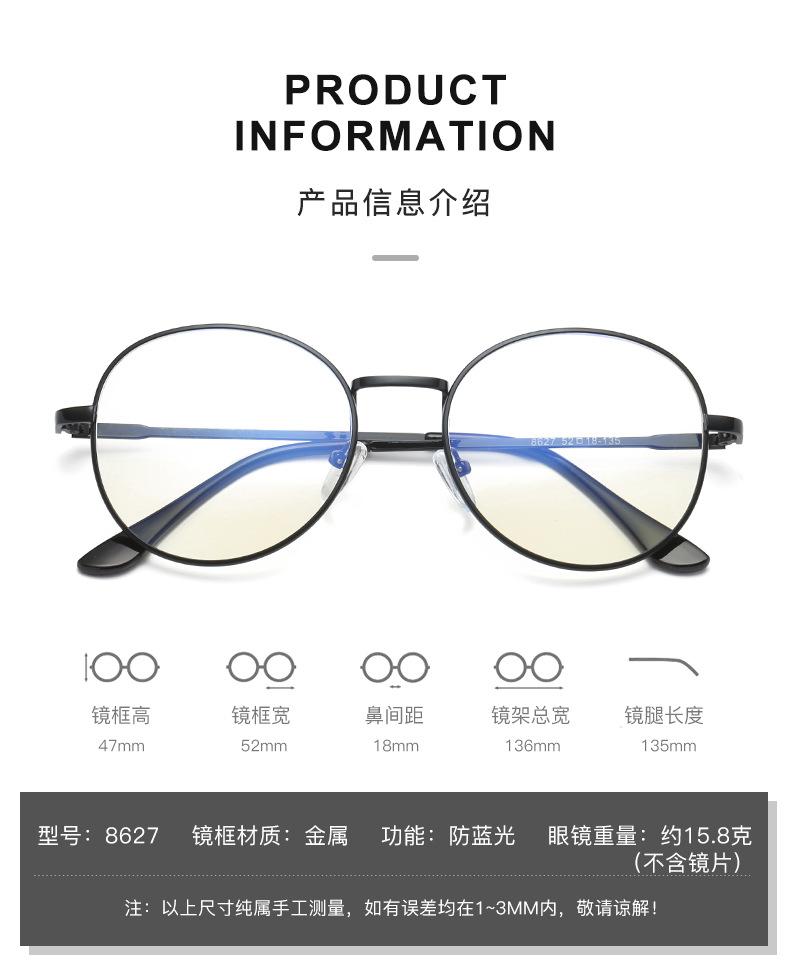 8627 montura metálica montura artística para gafas nueva lente anti luz azul gafas para computadora gafas sencillas retro