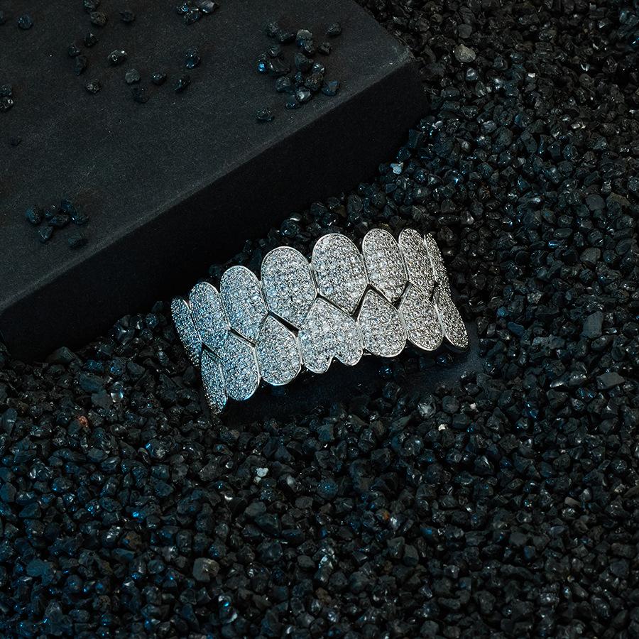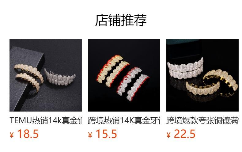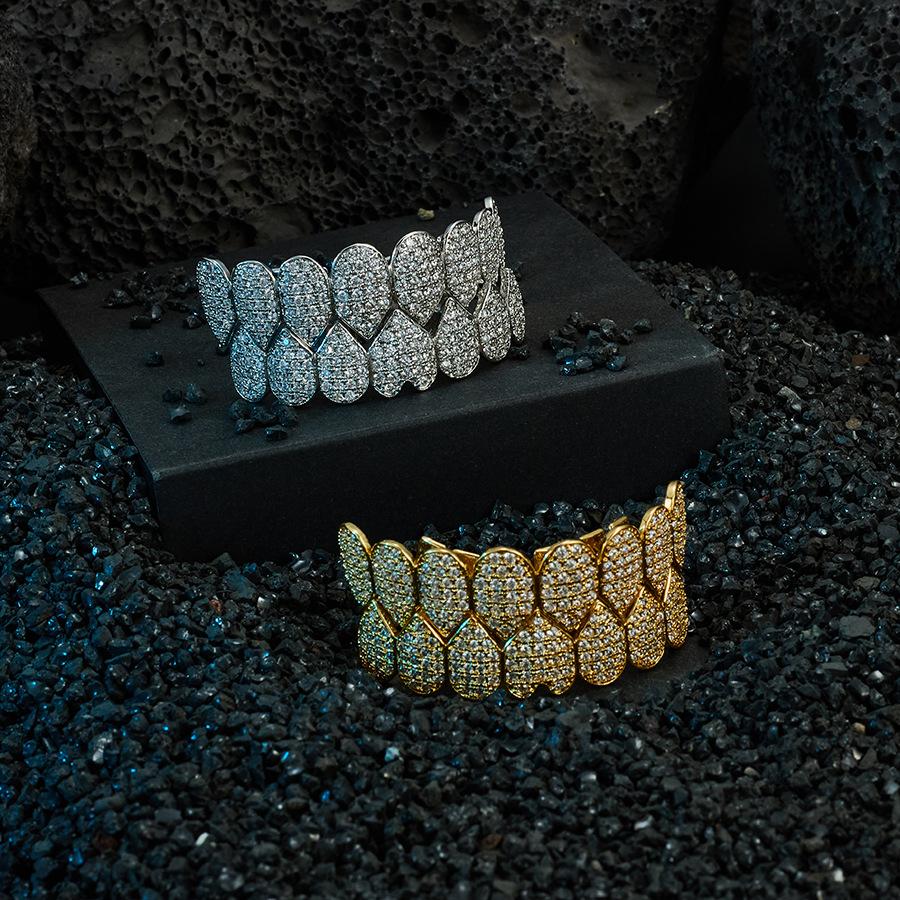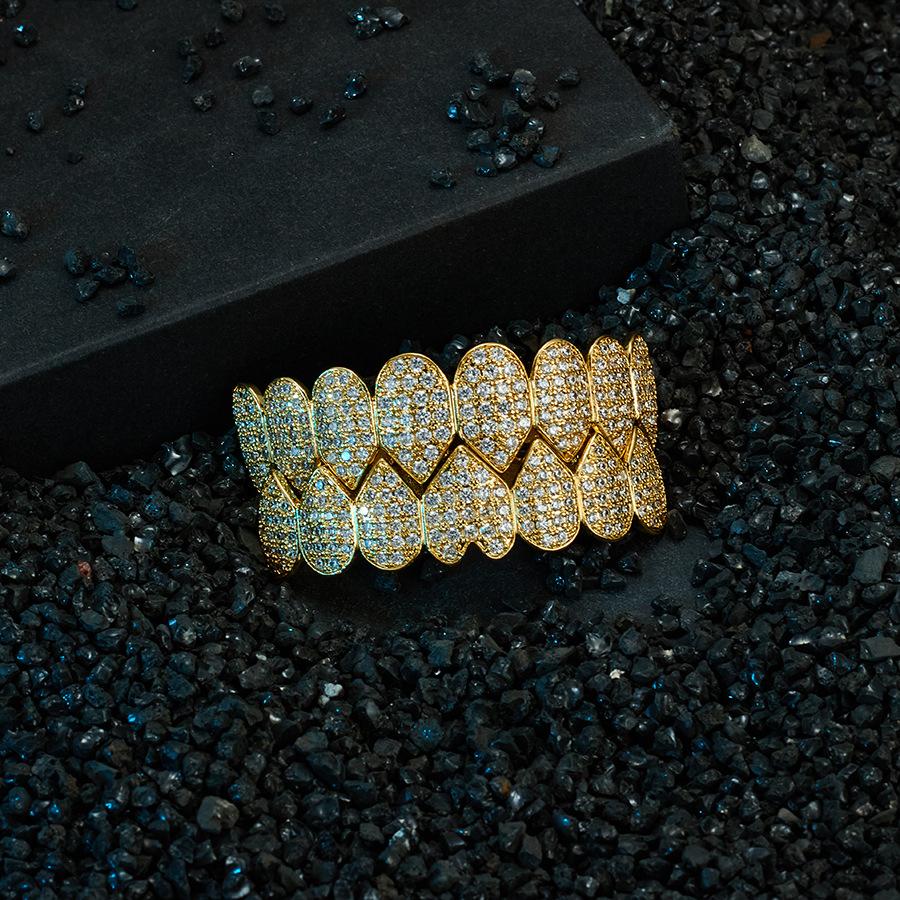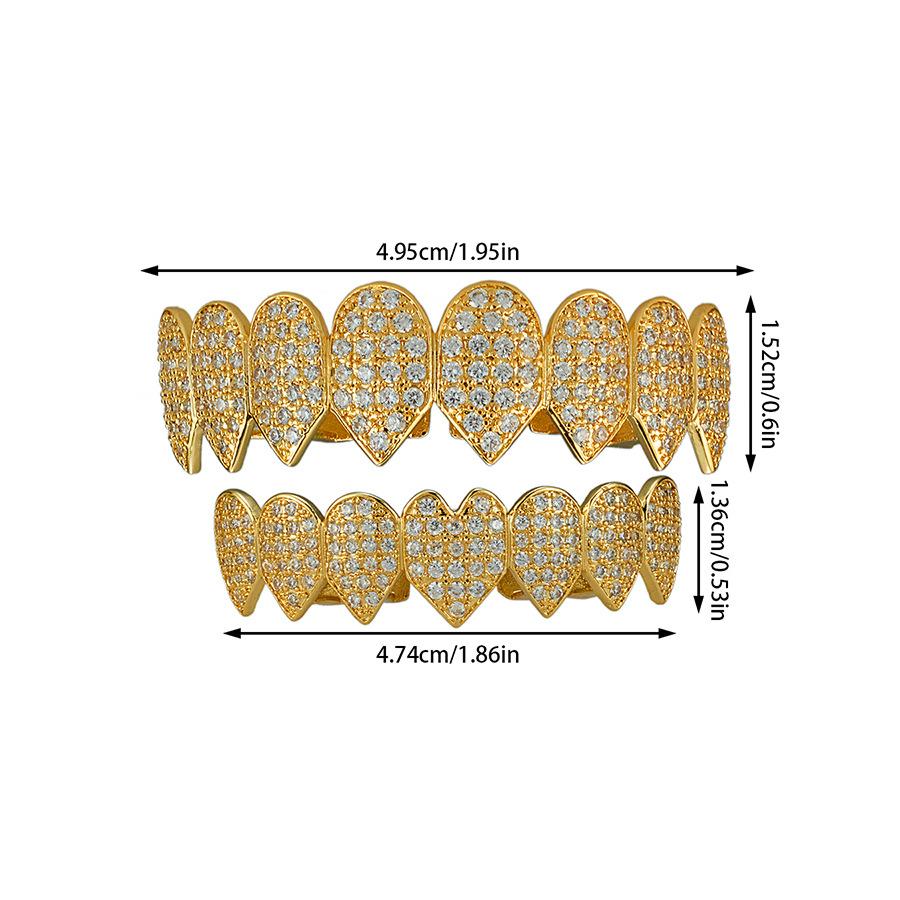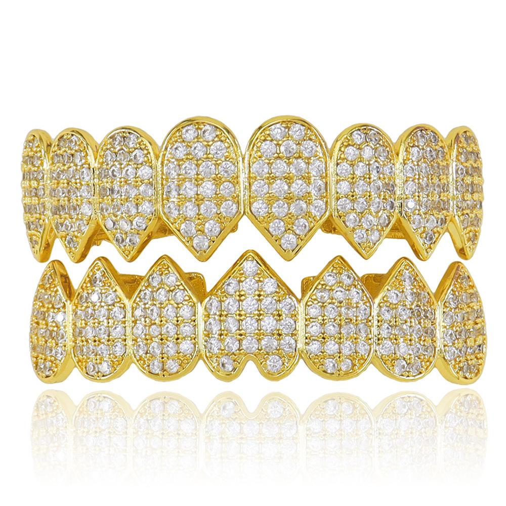 Brackets Navideños Transfronterizos Hip-Hop Cobre Incrustado con Zirconio Galvanoplastia Oro 14K Joyería para Dientes Tendencia Europea y Americana Brackets Puntiagudos en Forma de Corazón