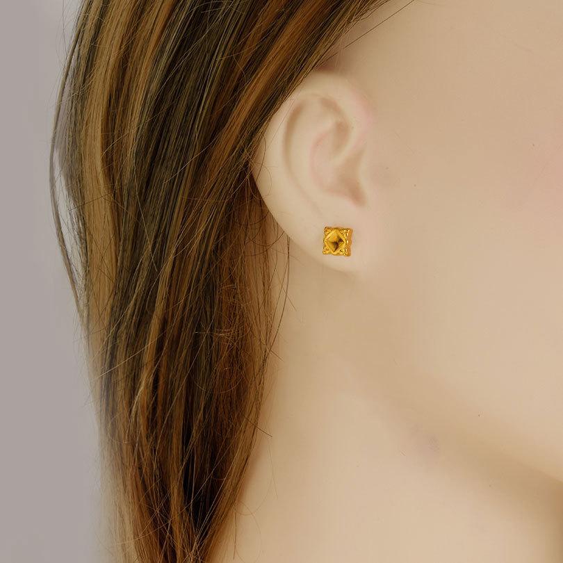 Pendientes de acero inoxidable 304 con diamantes de imitación, exquisitos pendientes de nicho con personalidad simple, pendientes de oro de 18 quilates al vacío, disponibles en stock.
