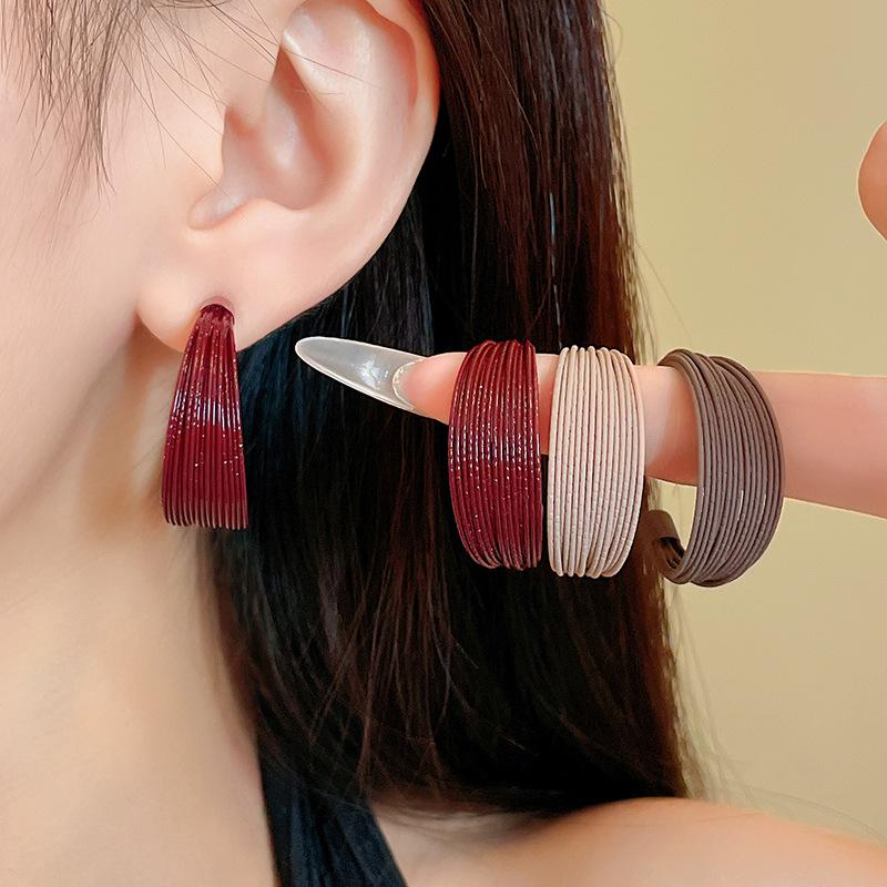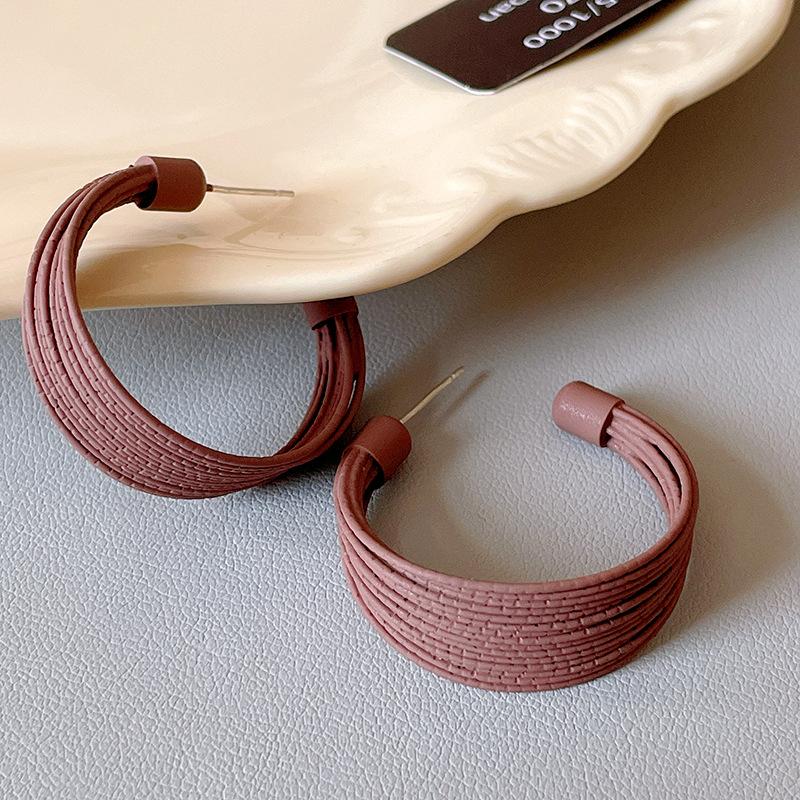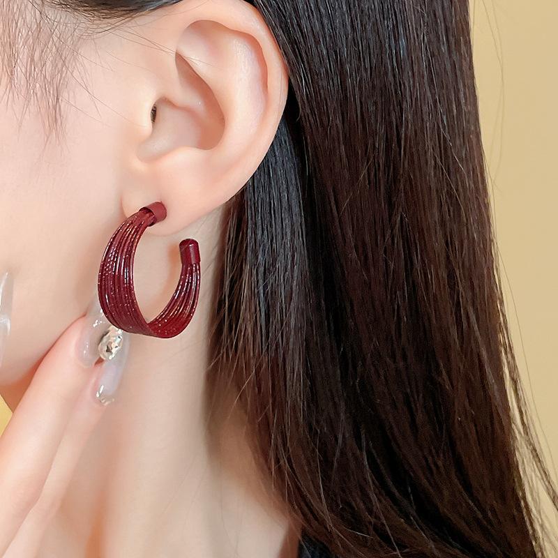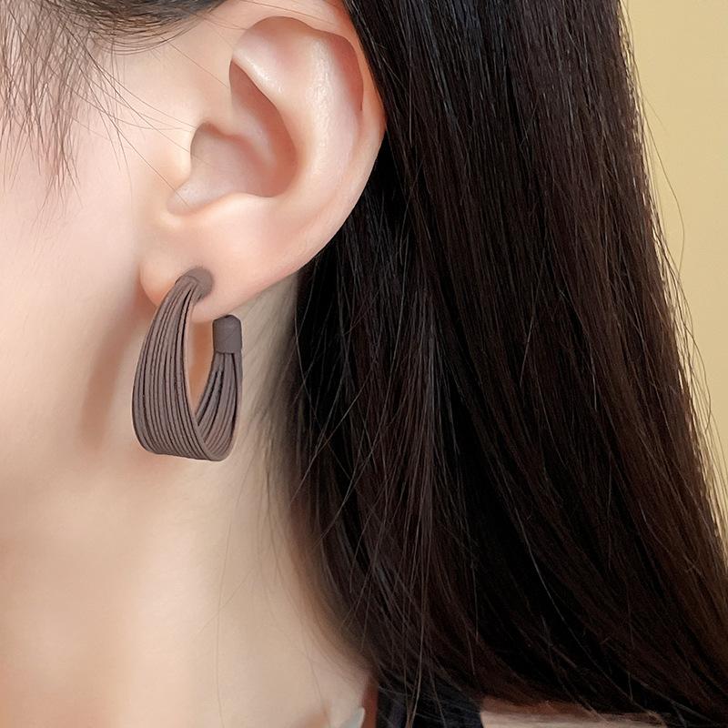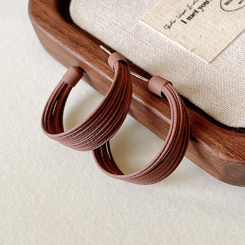 Aretes en forma de C multicapa pintados con aerosol de aguja plateada, aretes sencillos retro de alta gama, diseño de nicho para combinar con todo, aretes elegantes para mujer