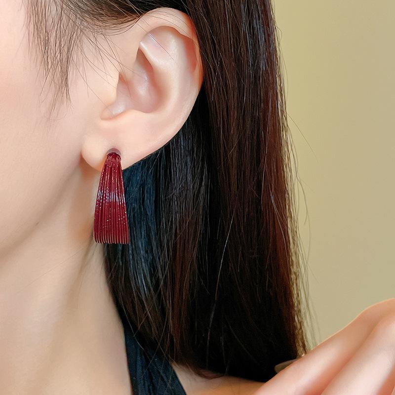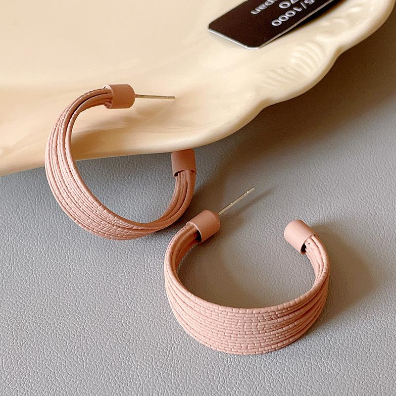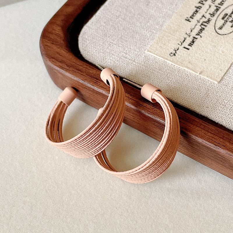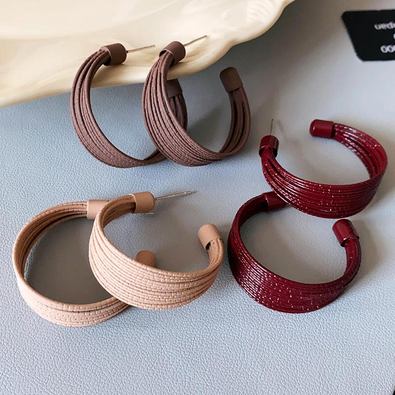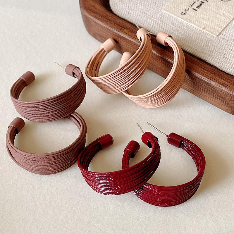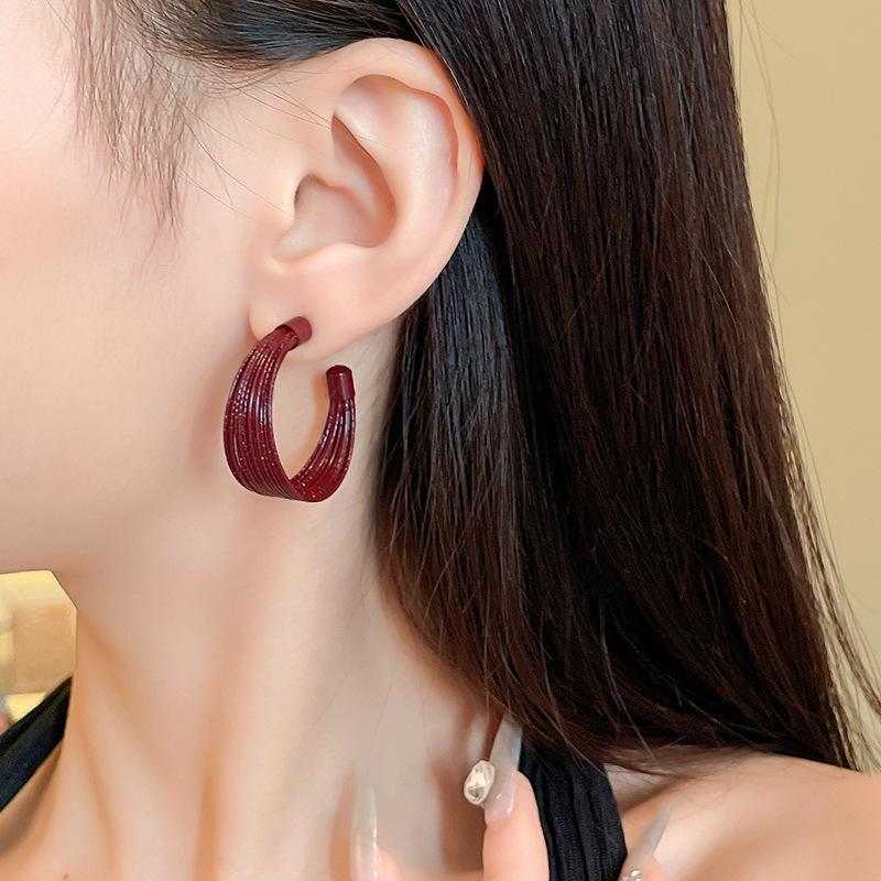 Aretes en forma de C multicapa pintados con aerosol de aguja plateada, aretes sencillos retro de alta gama, diseño de nicho para combinar con todo, aretes elegantes para mujer