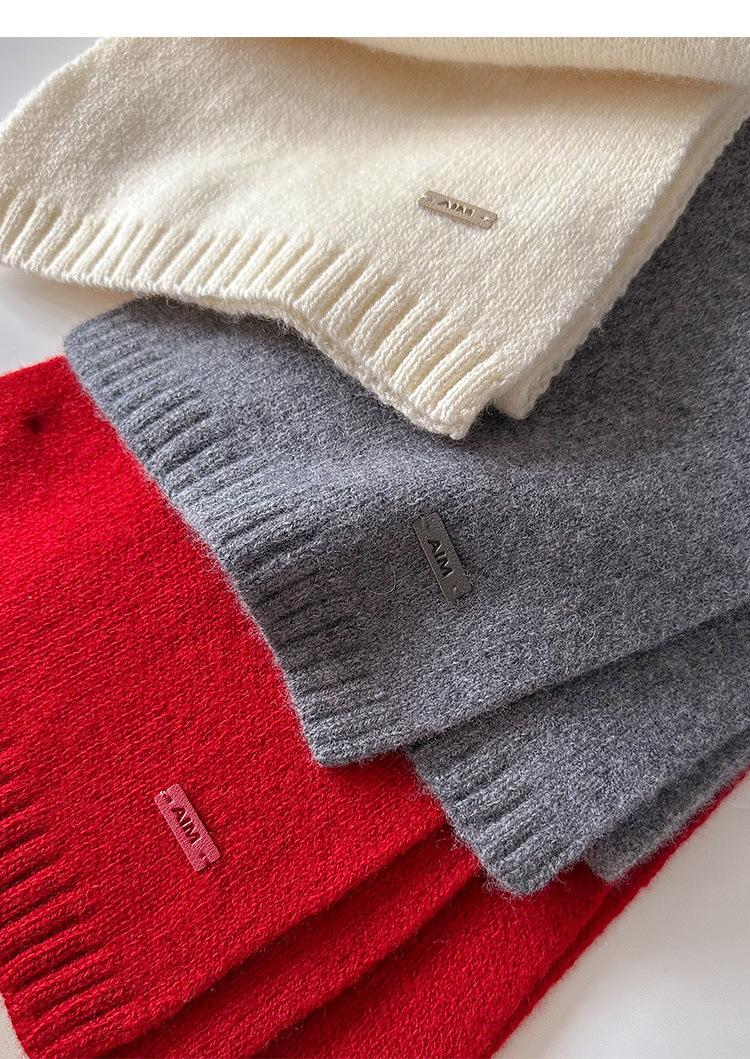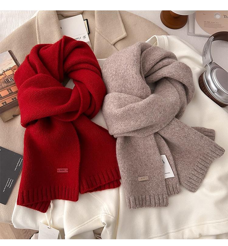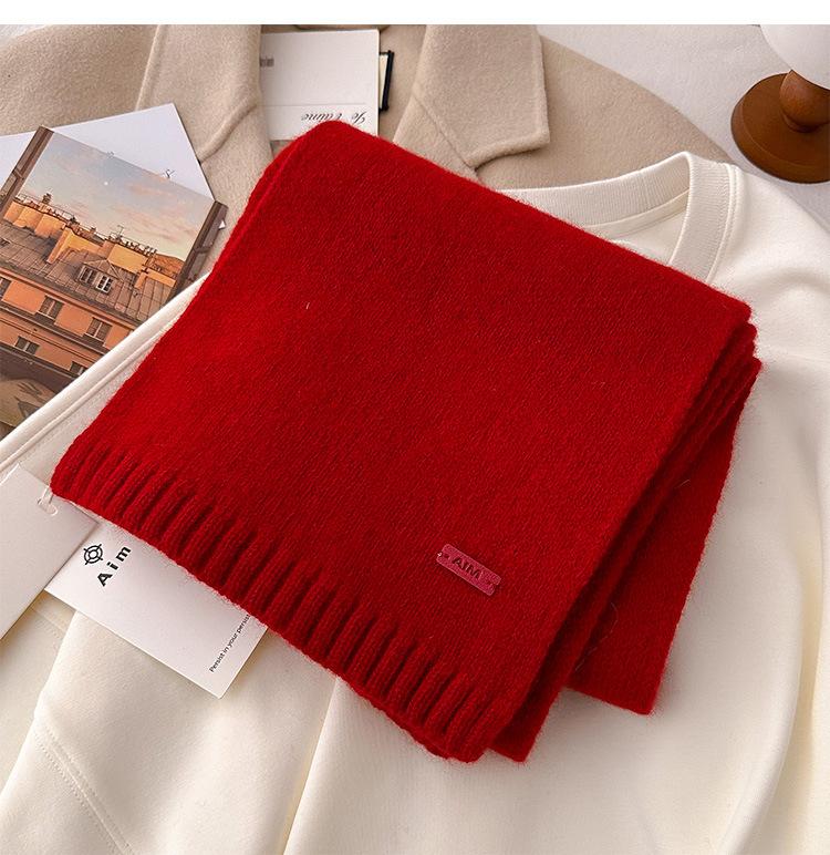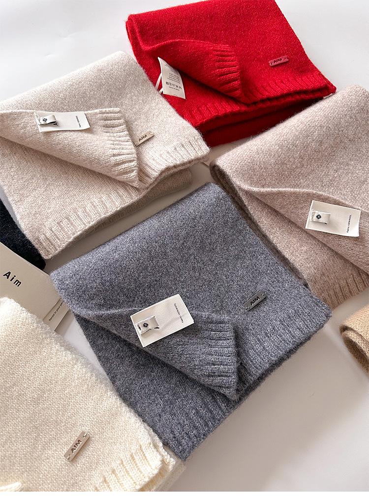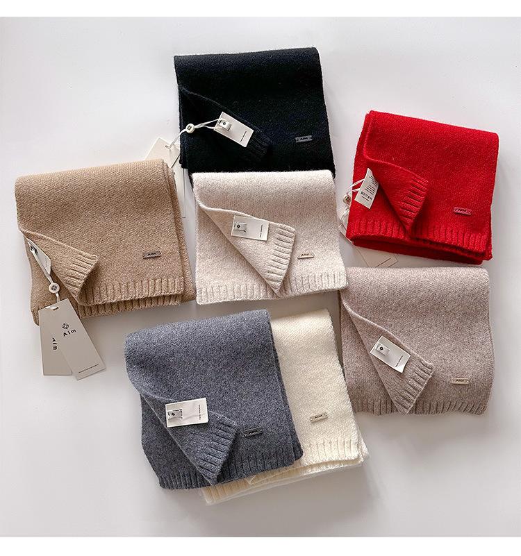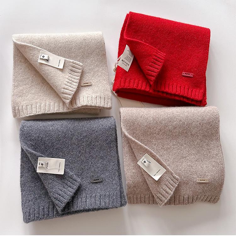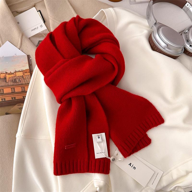 Bufanda de Lana 100% Pura para Mujer Invierno Color Sólido Combinable 2024 Nueva Llegada Corea del Sur Bufanda Pequeña para Hombre Pareja Rojo