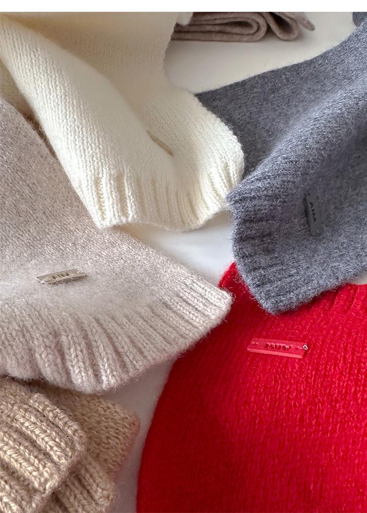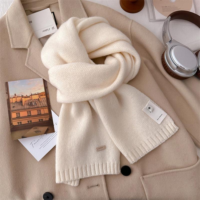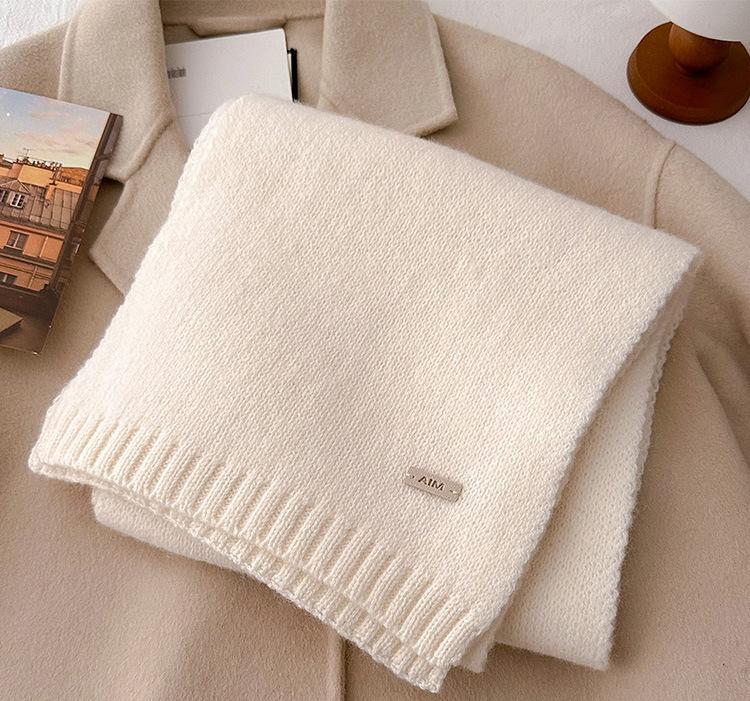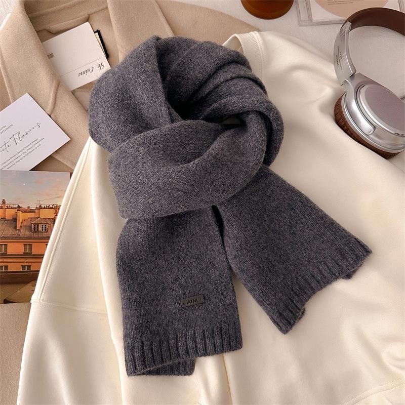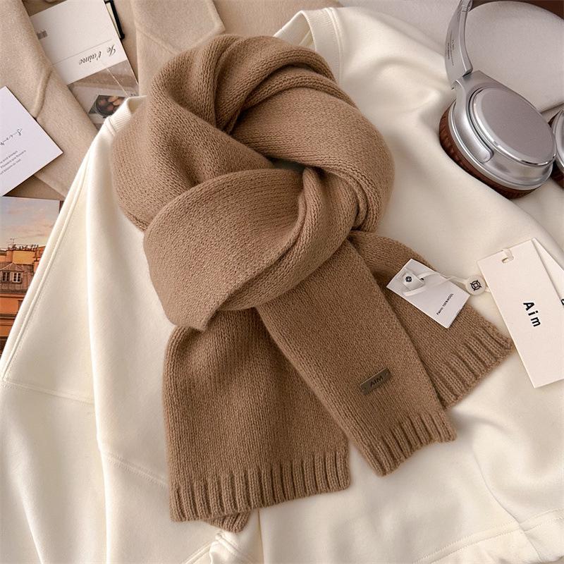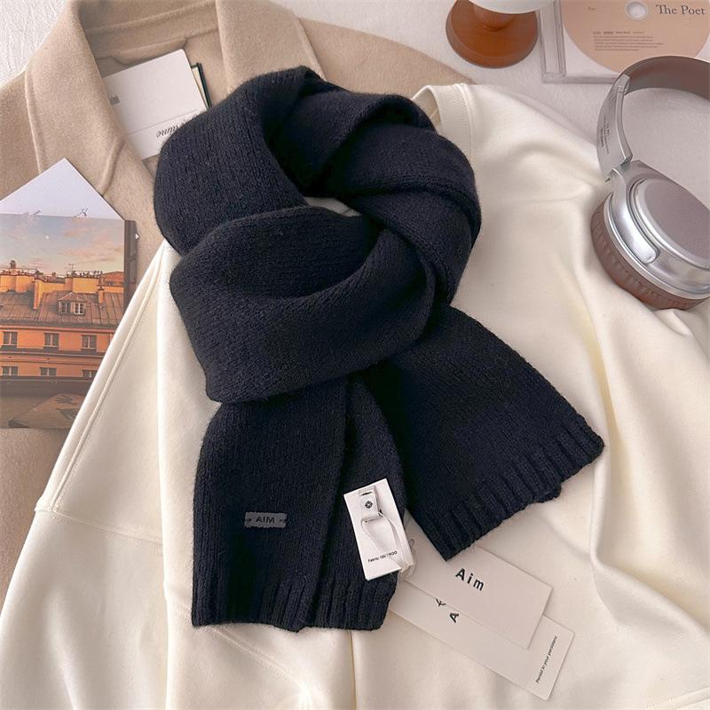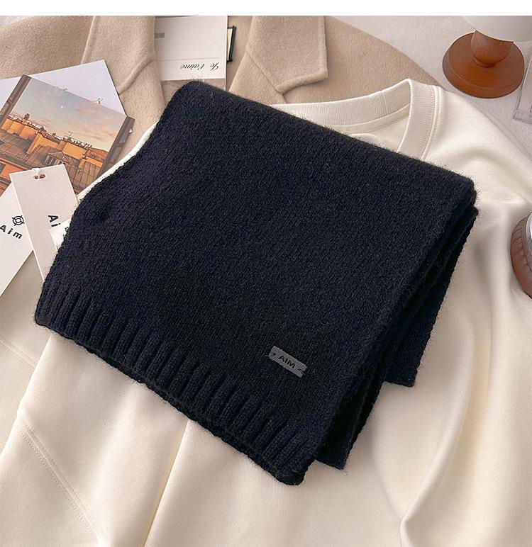 Bufanda de Lana 100% Pura para Mujer Invierno Color Sólido Combinable 2024 Nueva Llegada Corea del Sur Bufanda Pequeña para Hombre Pareja Rojo