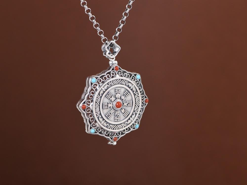 Colgante de plata de ley 925 con diseño retro de ciervo dorado, estilo Tai Chi antiguo, con forma de Kankun, estrella abierta, para hombre.