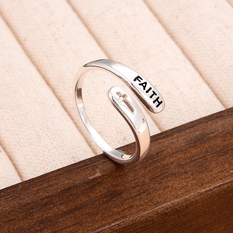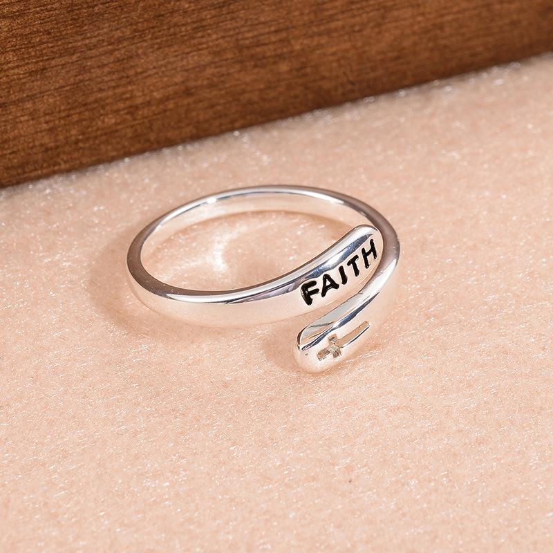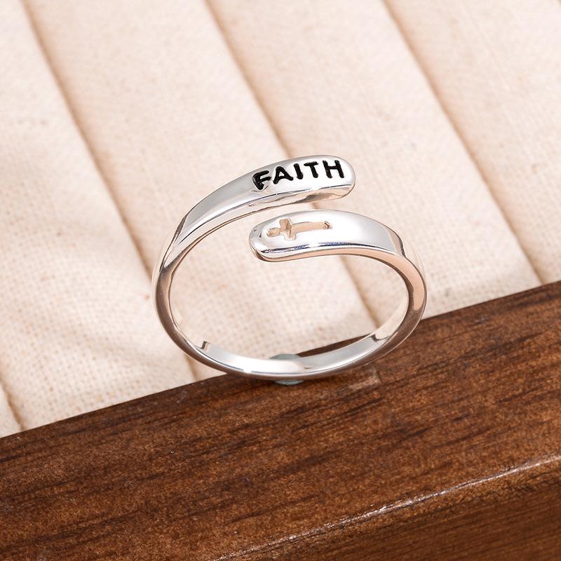 Anillo Ajustable de Moda para Mujer con Letra de Fe Retro Nicho Luz Lujo Simple Alto Sentido Personalidad Joyería al por Mayor