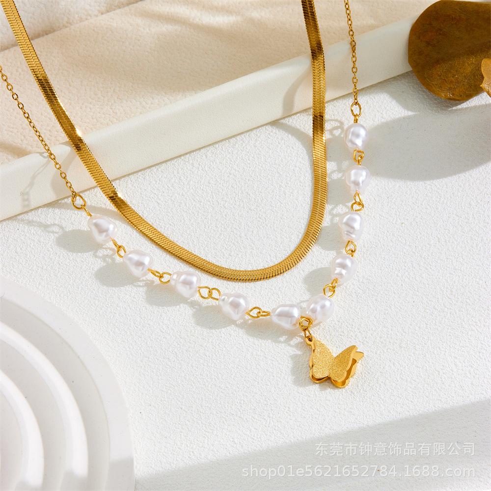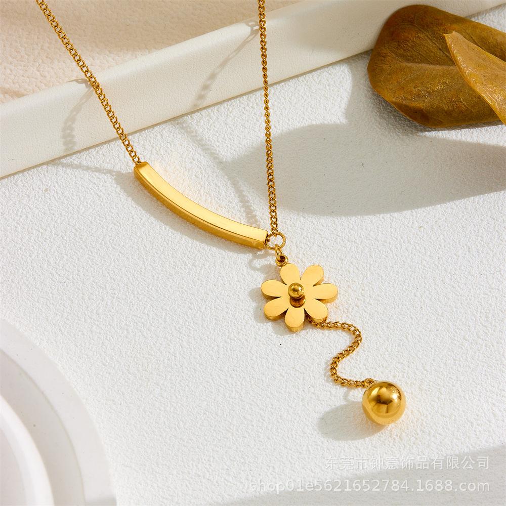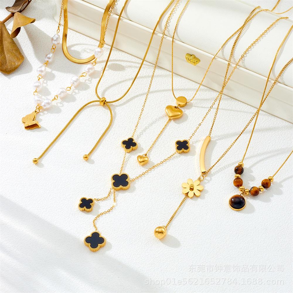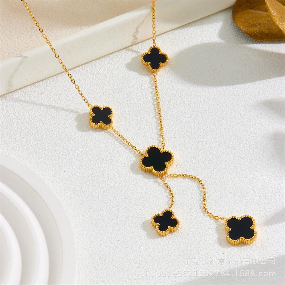 Collar de acero de titanio de estilo europeo y americano que no se decolora, chapado en oro de 18 quilates, collar de flores de cuatro hojas de moda, elegante y a la moda que combina con todo.
