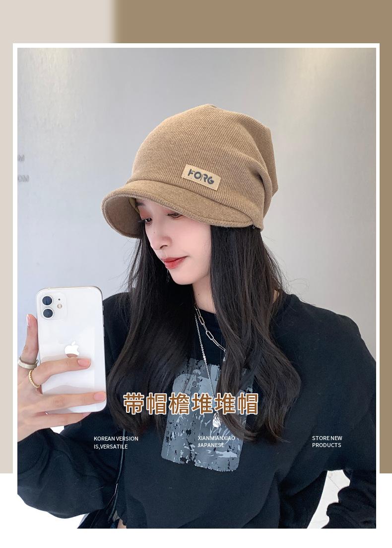 Gorro de Montón para Mujer Otoño e Invierno Nuevo Gorro Pulóver Cálido para Exterior con Visera Muestra la Cara Pequeño Gorro Cubreorejas Moda Combinable