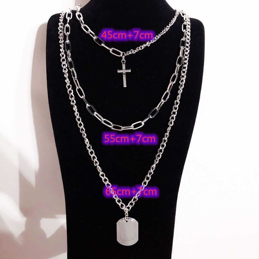 Collar de hip-hop multicapa estilo europeo y americano de estilo frío con personalidad de celebridades de Internet, cadena de lana cruzada de tres capas para hombres y mujeres.