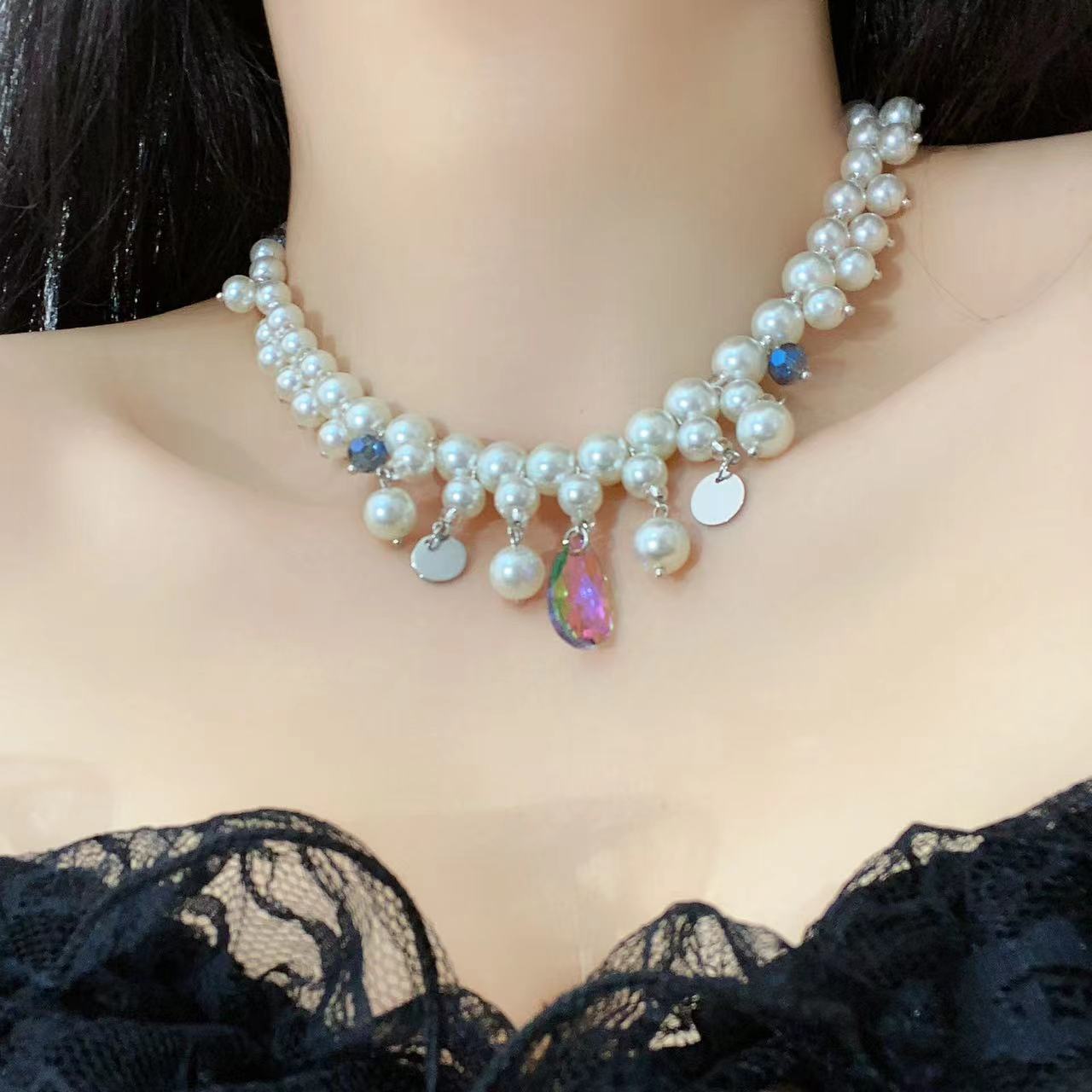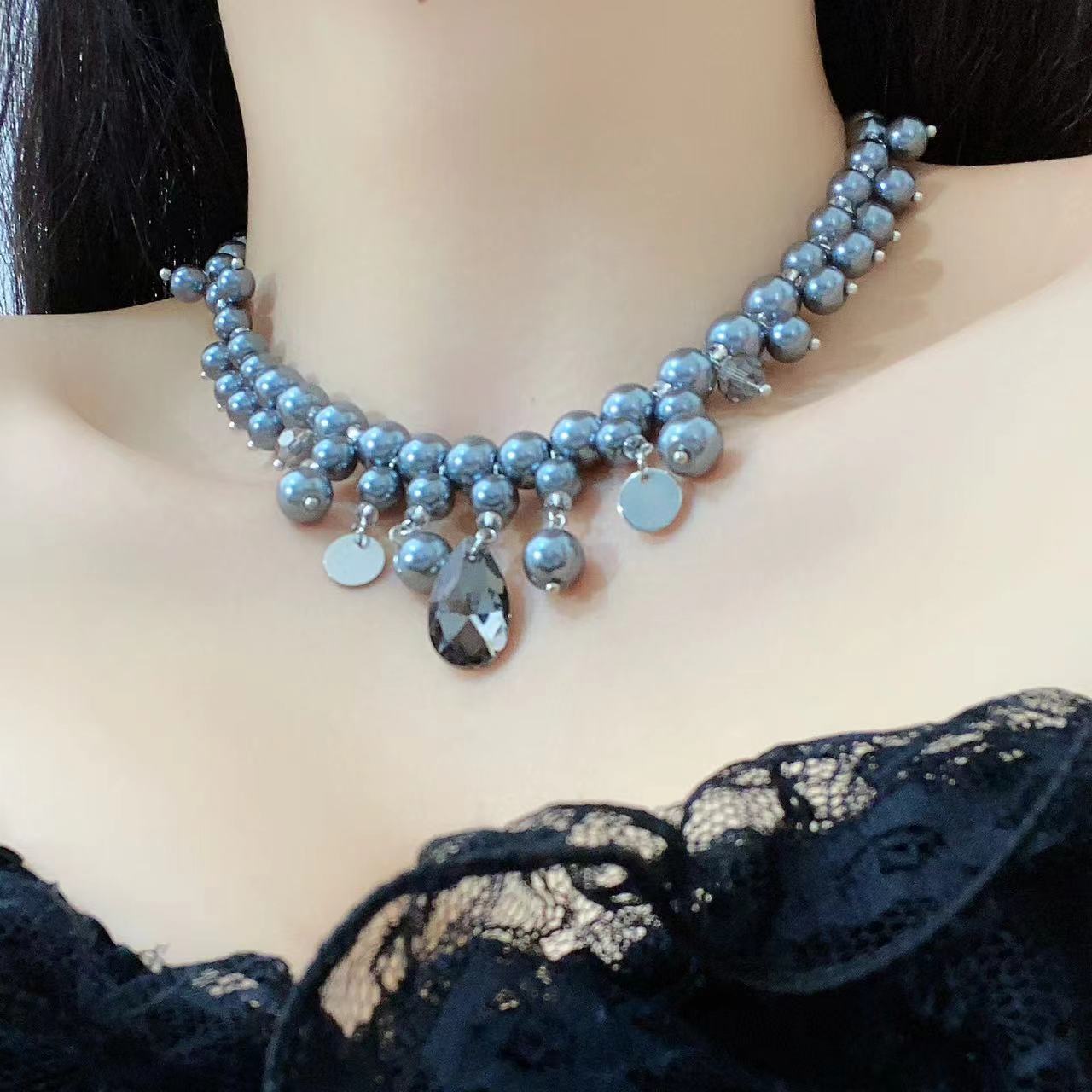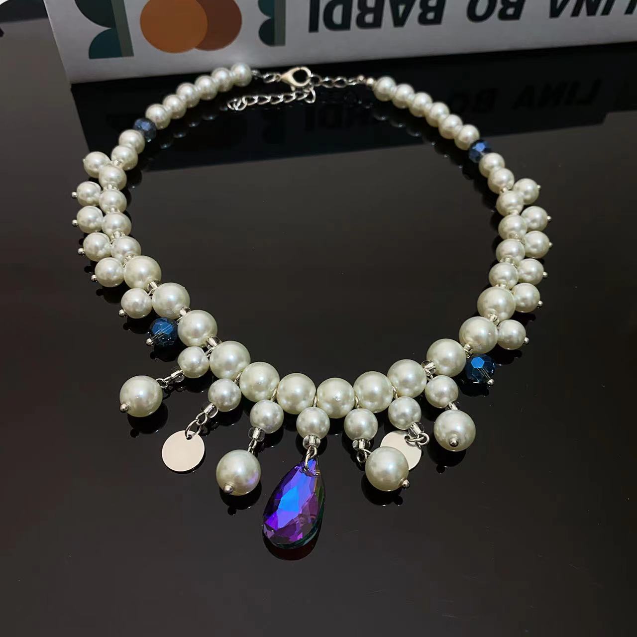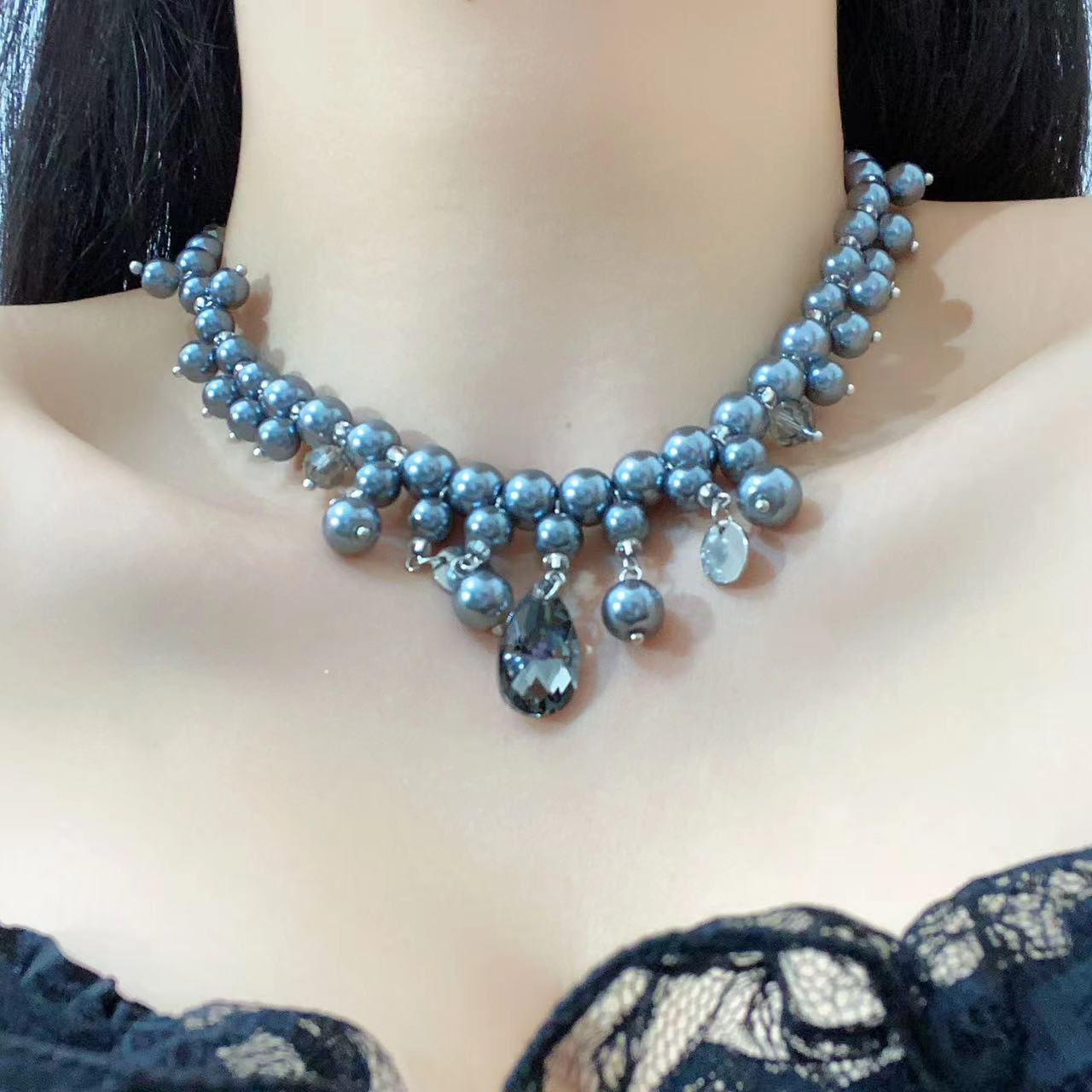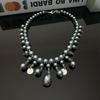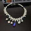 Collar con borlas de perlas y circonitas azules con incrustaciones de diamantes para mujer, cadena de clavícula con forma de gota de agua, cadena de suéter de lujo de estilo palacio vintage de alta calidad