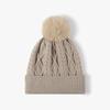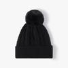 Gorro de punto grueso con forro polar y bola de pelo transfronteriza para mujer, gorro de lana transpirable y ligero con jacquard a la moda.