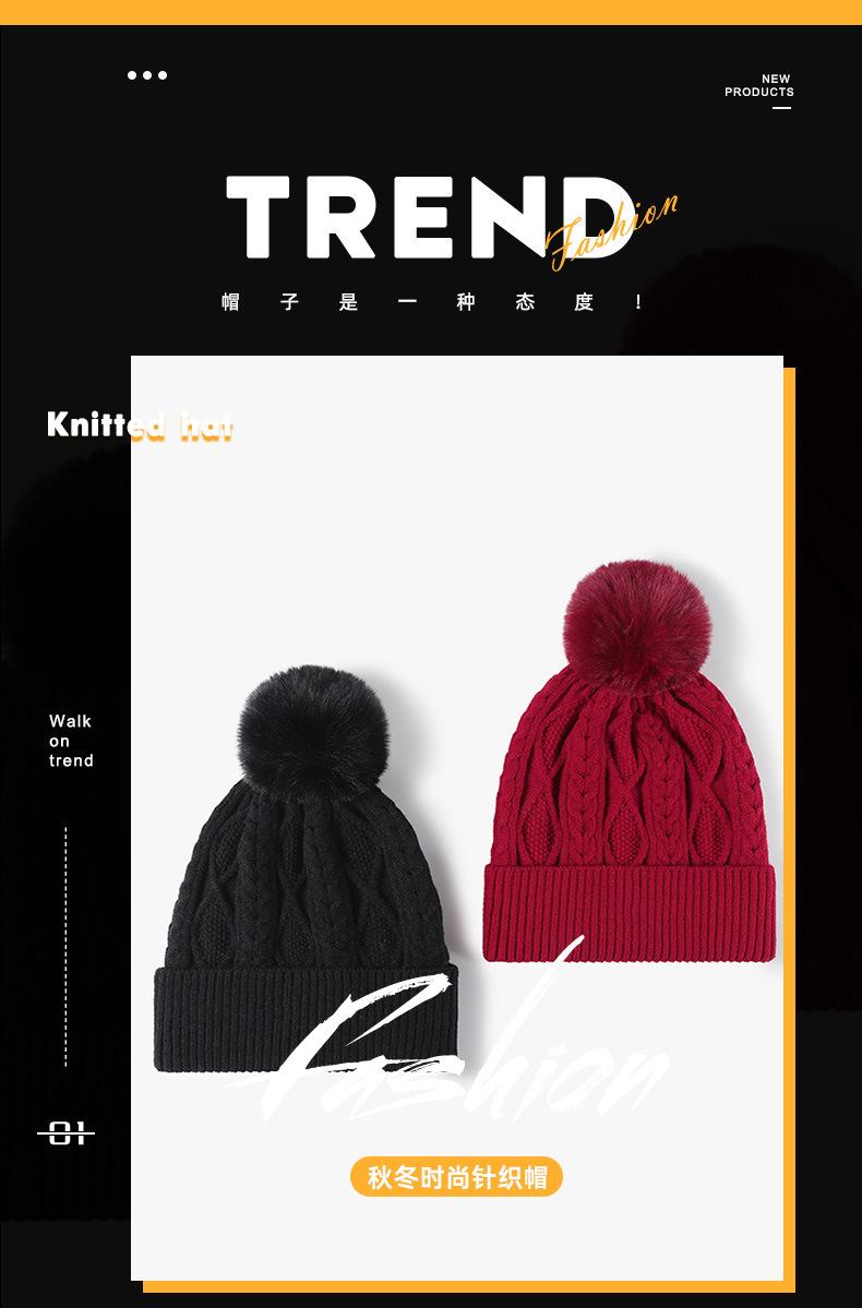 Compra Gorro de punto grueso con forro polar y bola de pelo transfronteriza para mujer, gorro de lana transpirable y ligero con jacquard a la moda. al por mayor en Joom.pro