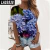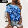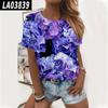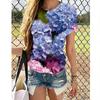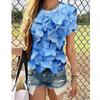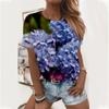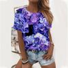 Nueva camiseta de verano de manga corta con estampado floral digital y cuello redondo para mujer de Amazon Cross-border Trade