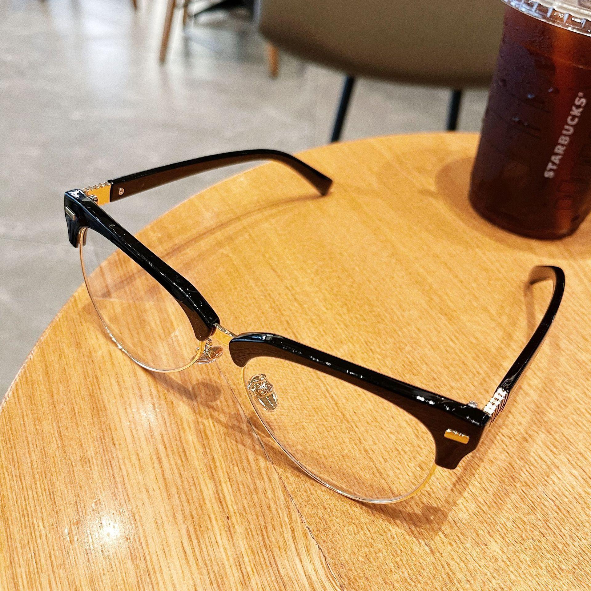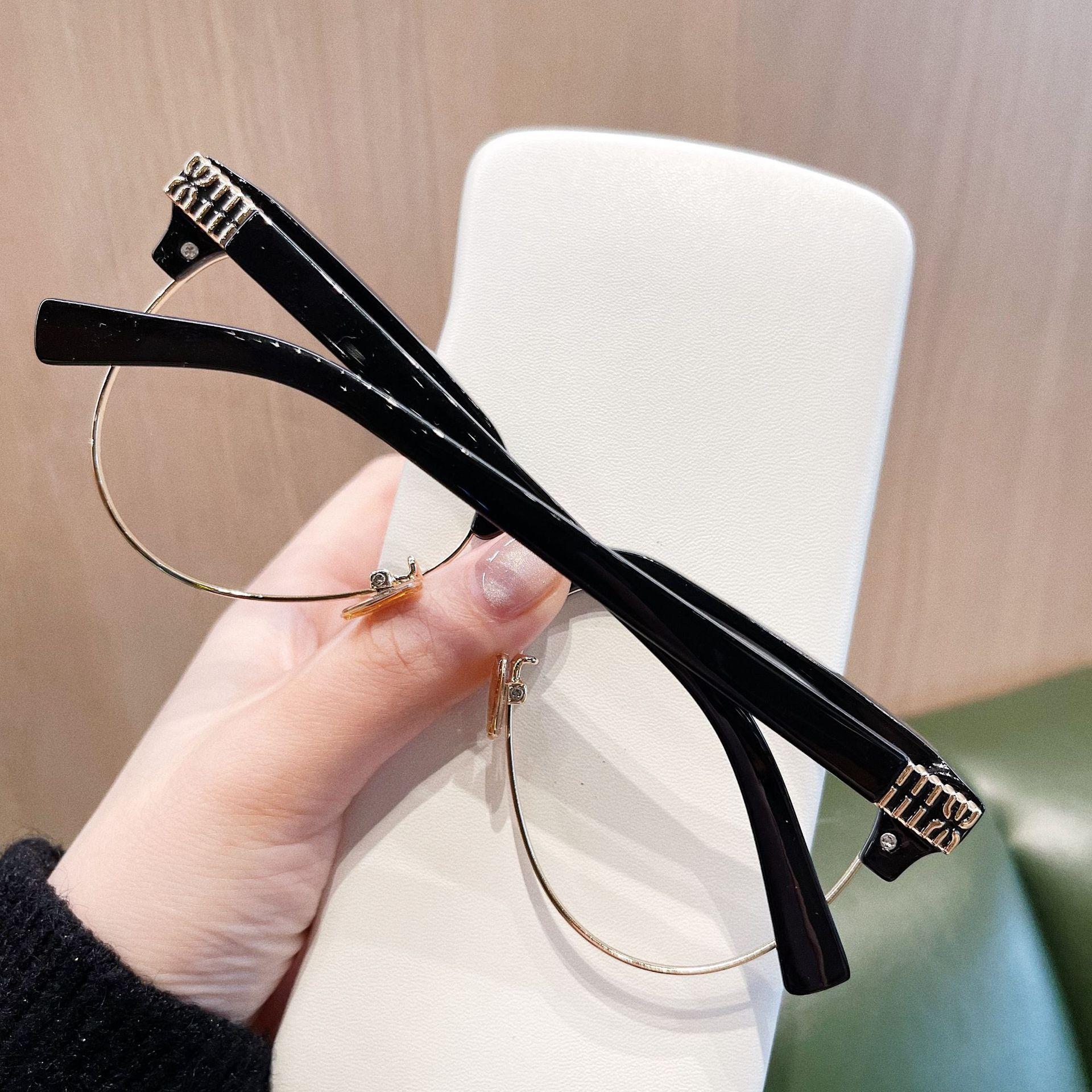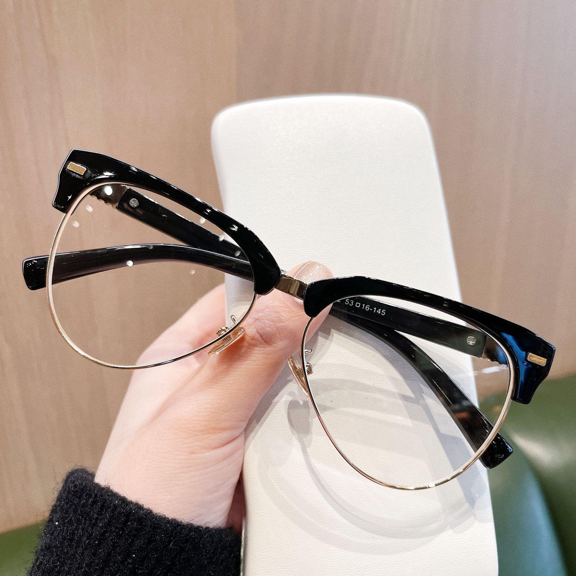 Lentes de Medio Aro Retro Estilo Japonés del Mismo Estilo de Zhang Yuanying para Mujer, Montura de Ceja Moderna, Espejo Plano, Artefacto Sin Maquillaje Lentes para Miopía para Hombre