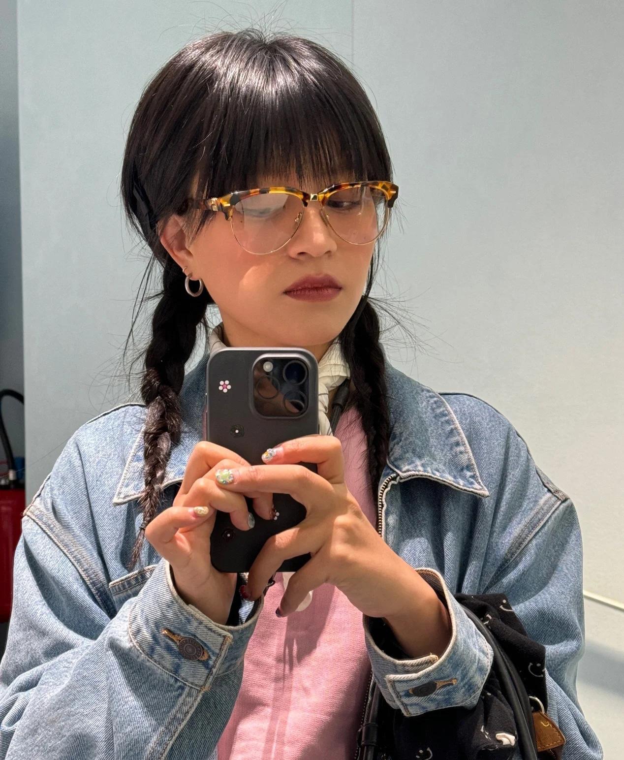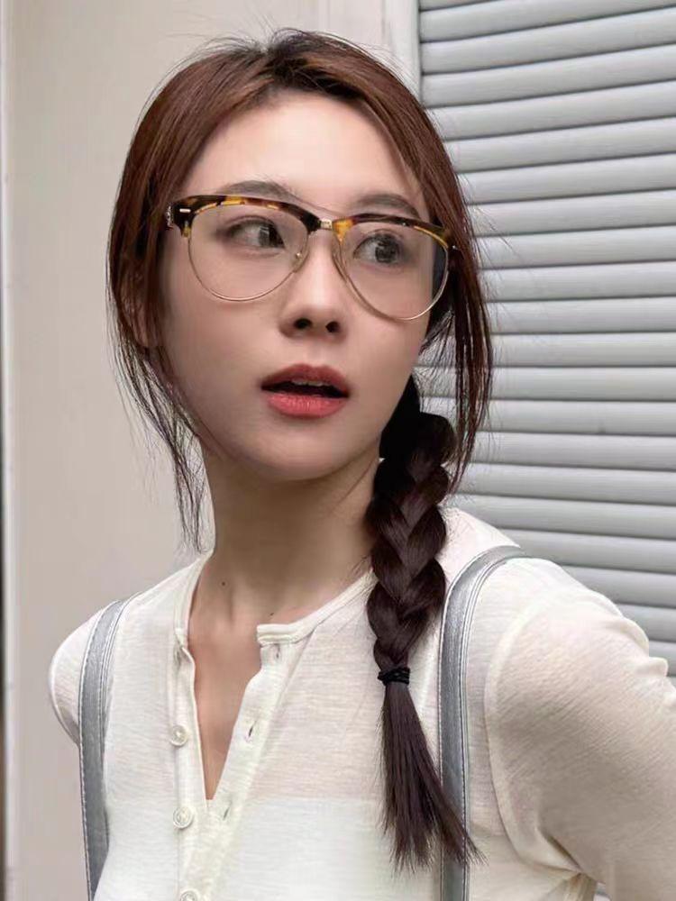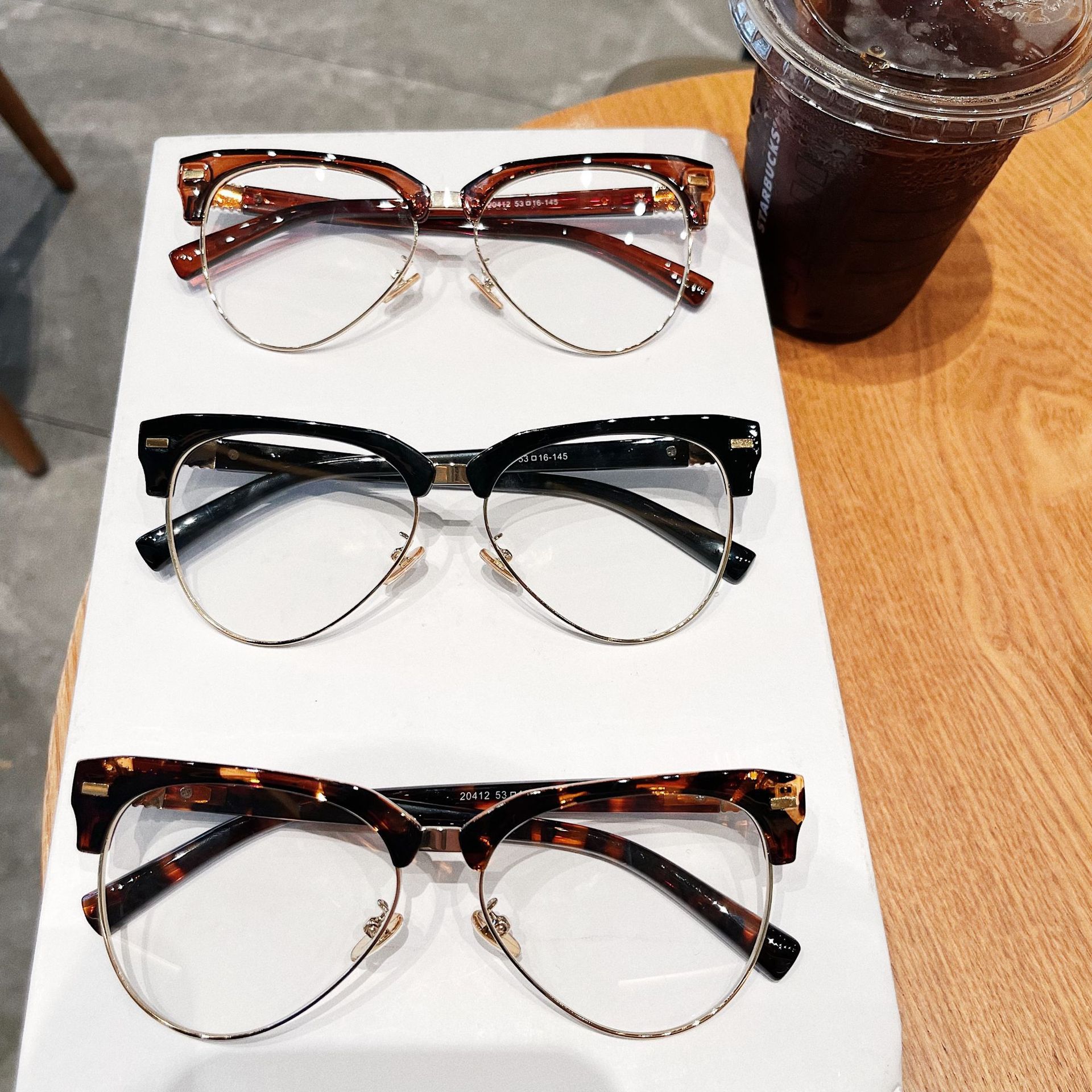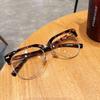 Lentes de Medio Aro Retro Estilo Japonés del Mismo Estilo de Zhang Yuanying para Mujer, Montura de Ceja Moderna, Espejo Plano, Artefacto Sin Maquillaje Lentes para Miopía para Hombre