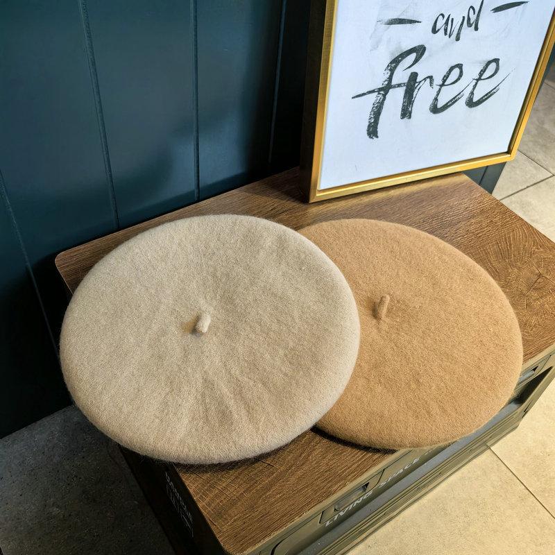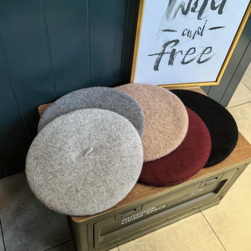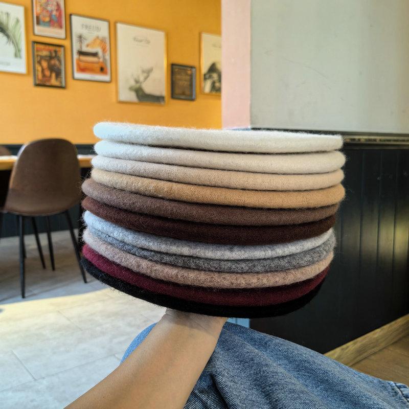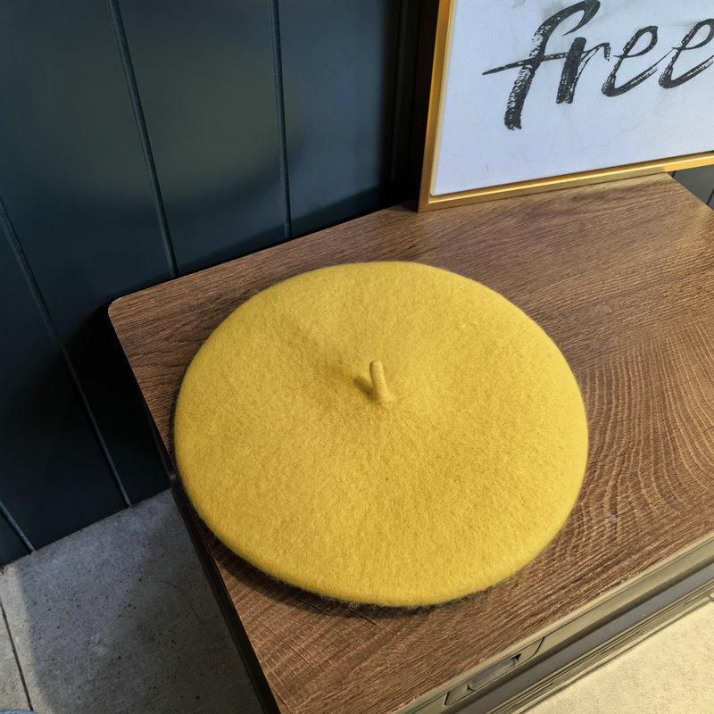 Boina de lana de otoño e invierno para mujer, boina de punto retro de grosor medio, gorro de pintor, boina de lana para estudiante, gorro de calabaza