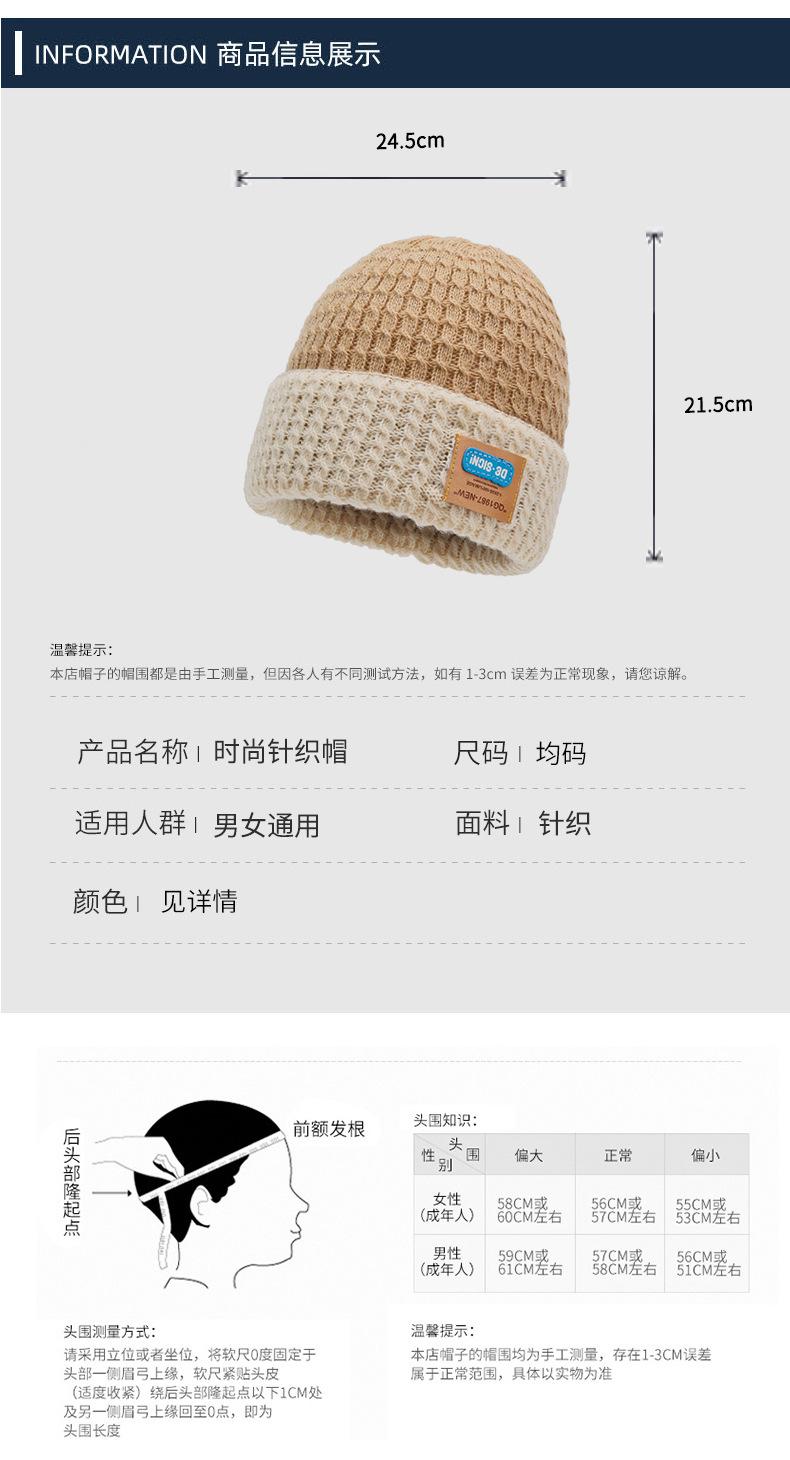 Gorro de Punto Otoño e Invierno Gorro para Mujer Circunferencia de Cabeza Grande Espesado Cálido Baotou Gorro Frío Gorro de Lana para Hombre Jersey Versátil Gorro Heap