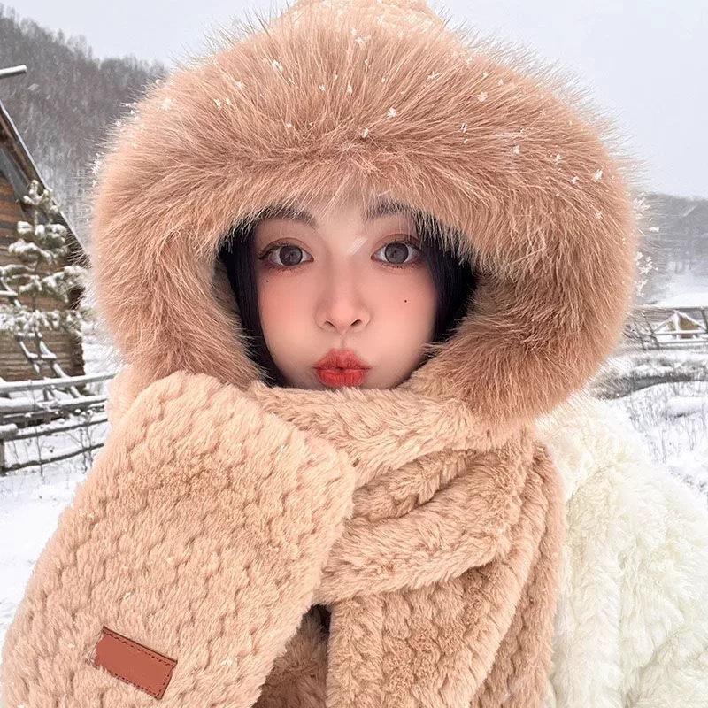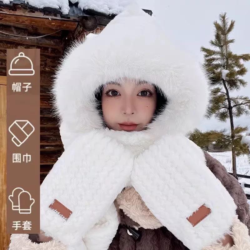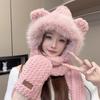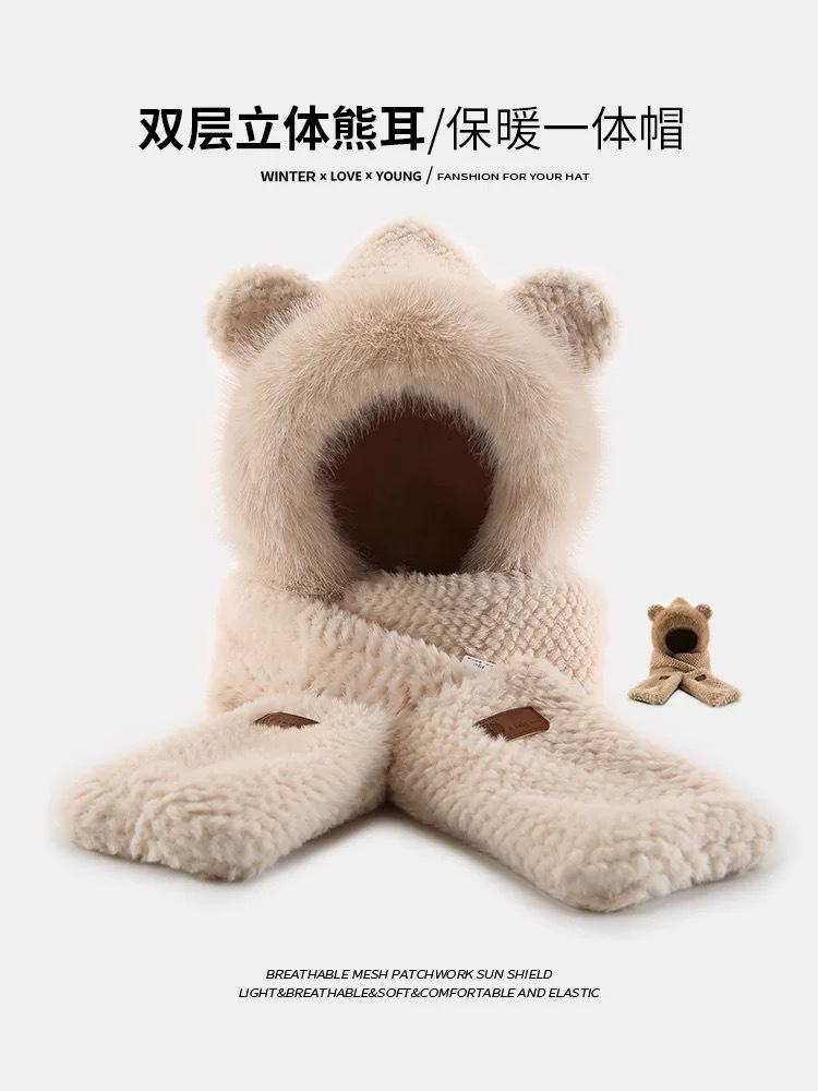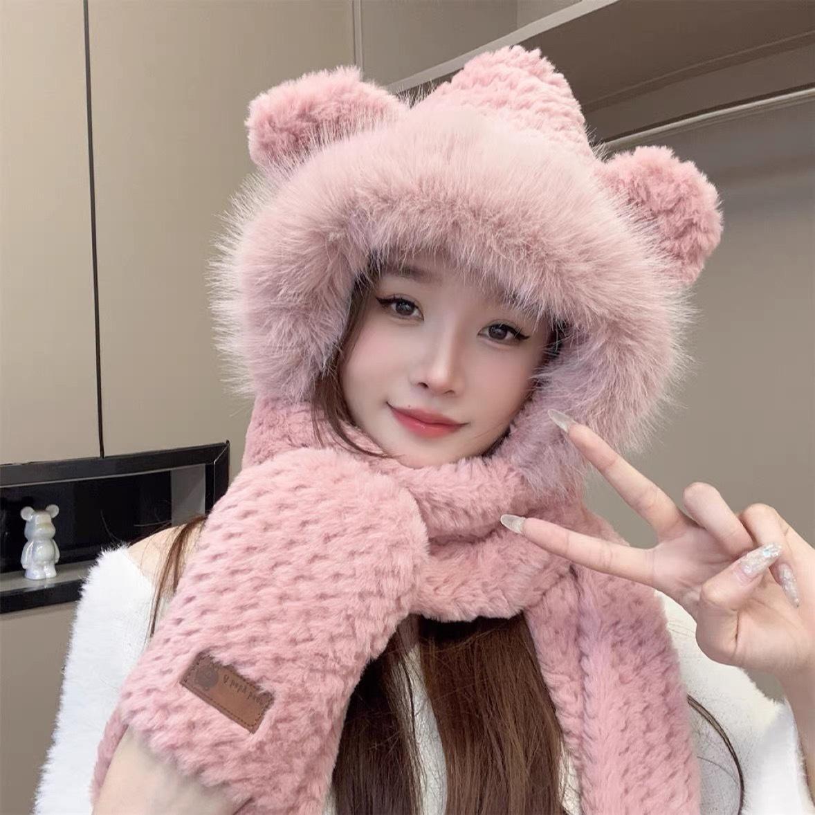 Gorro de Peluche de Oso Bufanda Guantes de Invierno para Mujer Lindo Otoño e Invierno Conjunto de Tres Piezas Cálido 2024 Nuevo