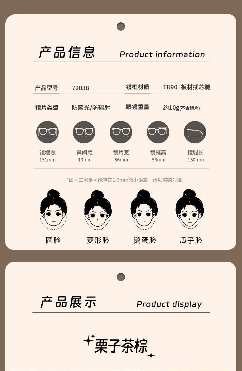 Glossy black, Cold brown, Olive green, Transparent color, Transparent gray, Leopard print, Glasses bag + cloth