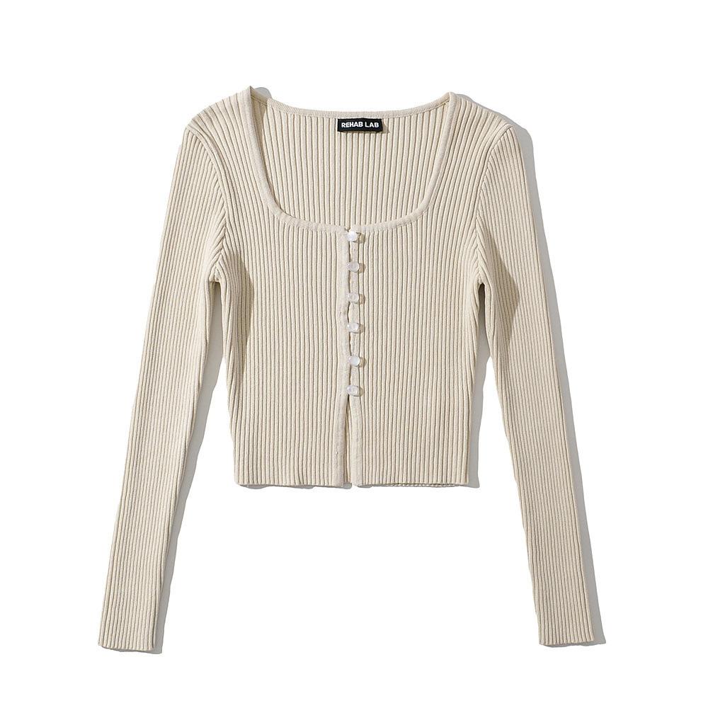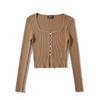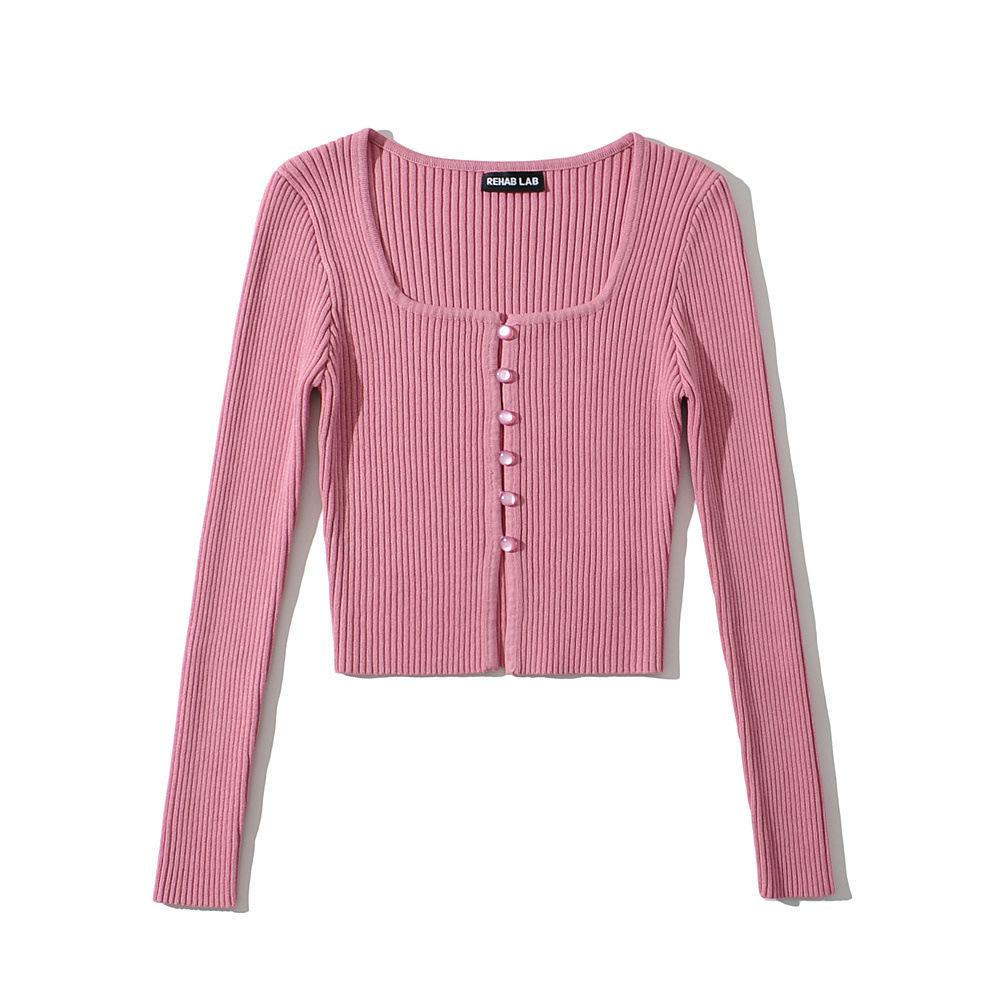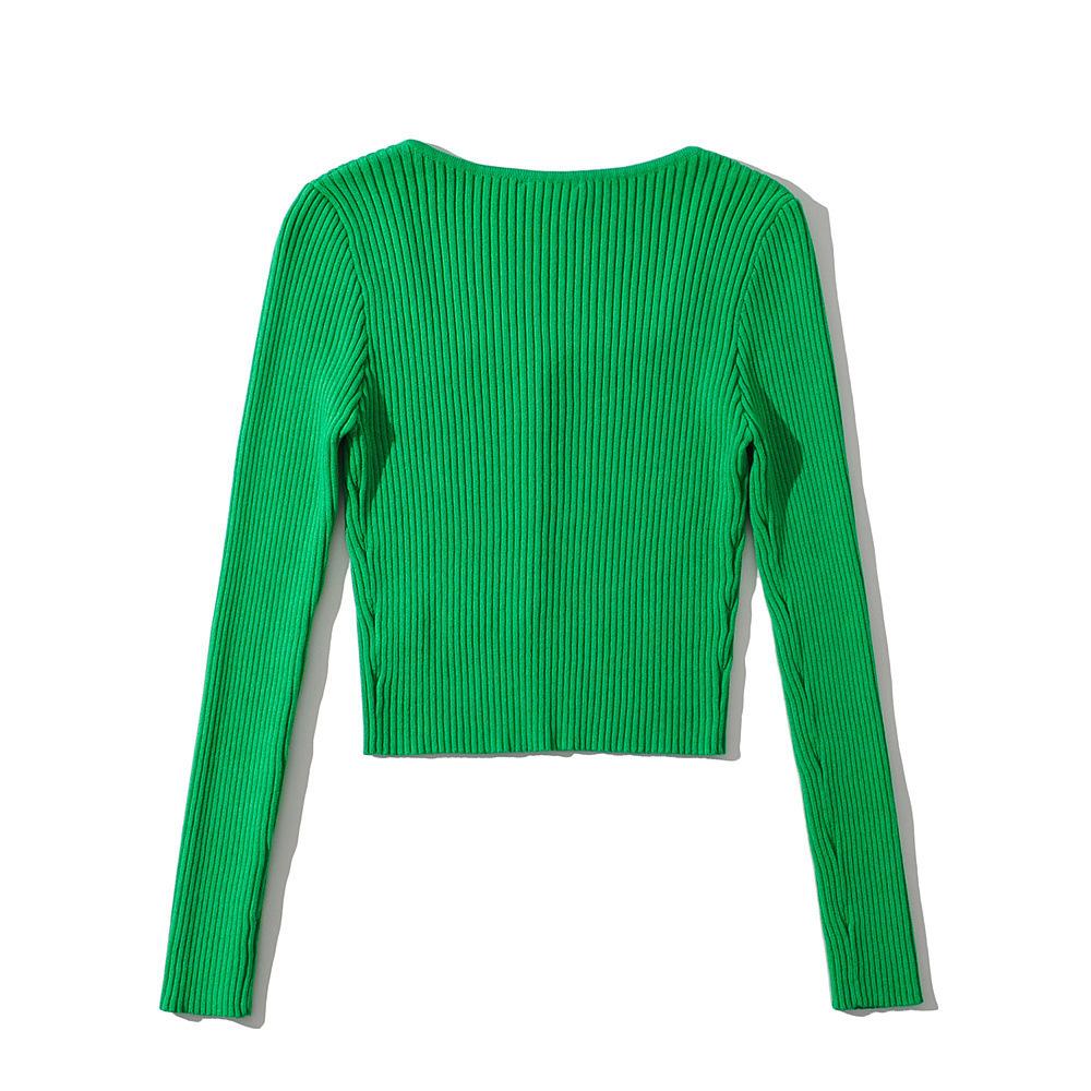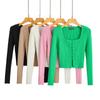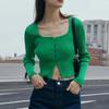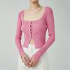 Cárdigan de punto de manga larga y corte entallado para mujer, camisa sexy con cuello cuadrado y base de hilo ajustado, primavera 2024