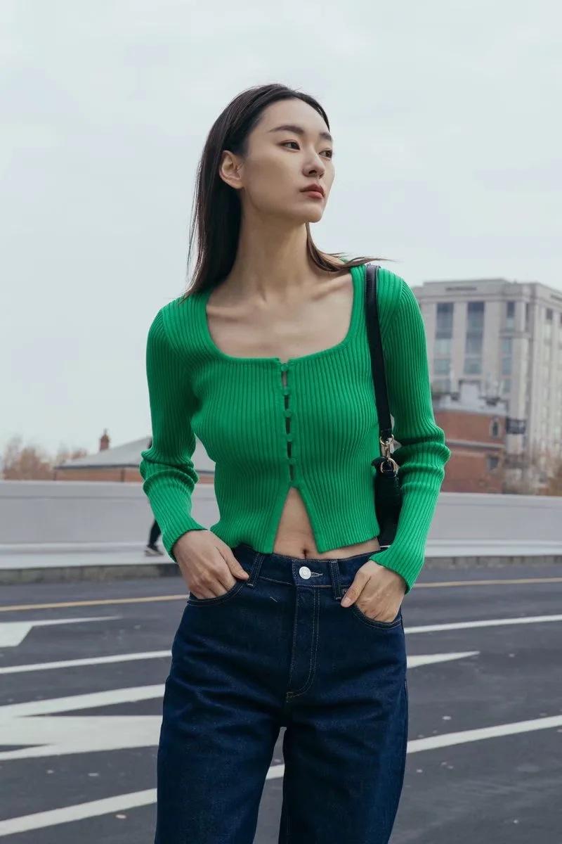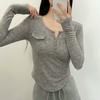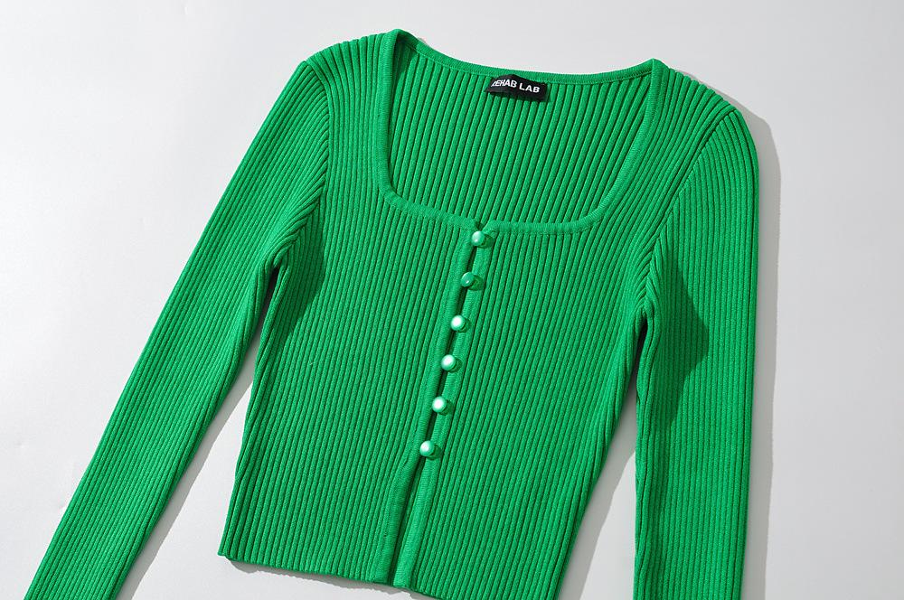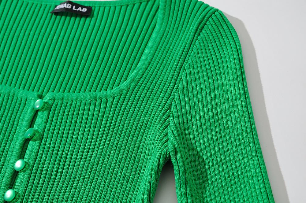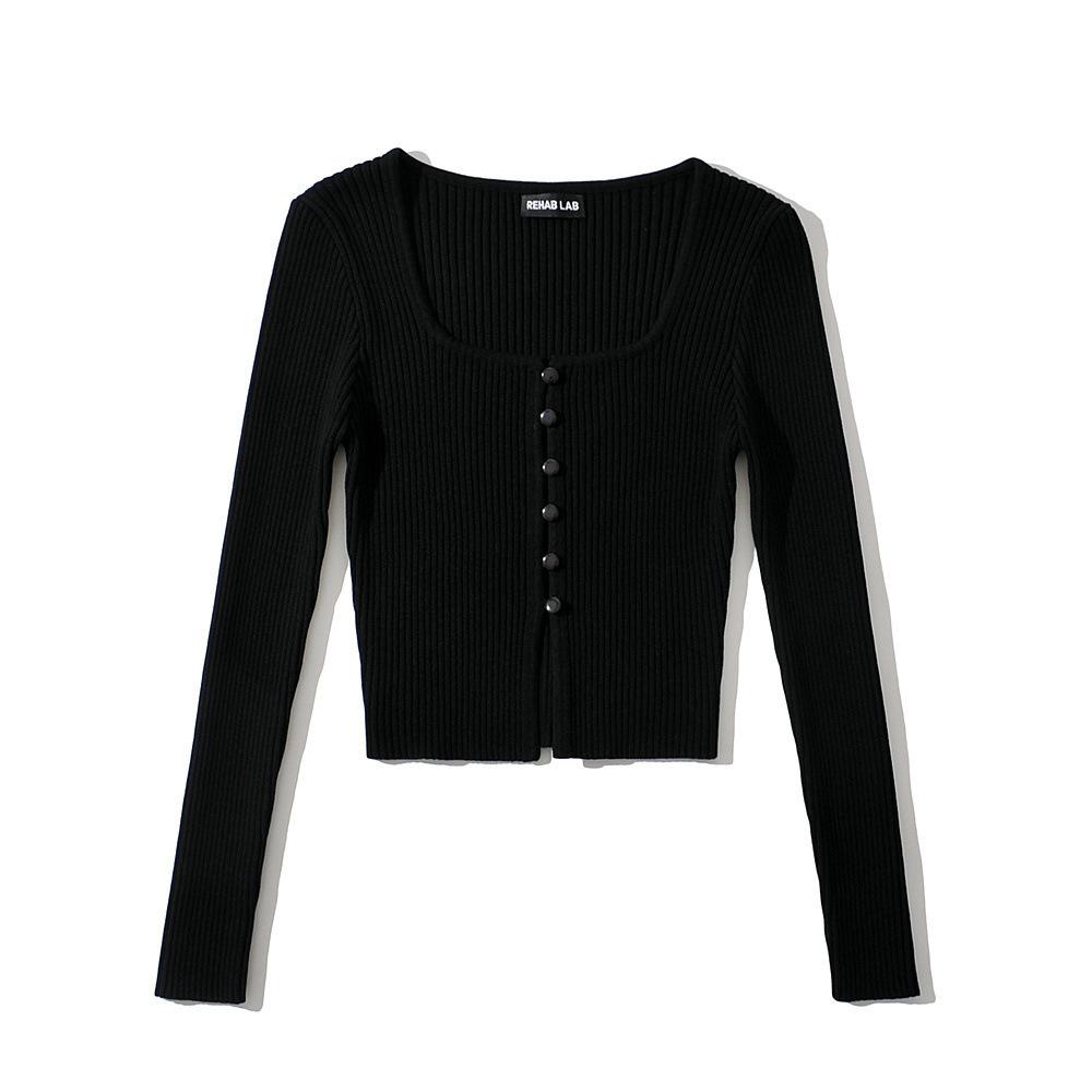 Cárdigan de punto de manga larga y corte entallado para mujer, camisa sexy con cuello cuadrado y base de hilo ajustado, primavera 2024