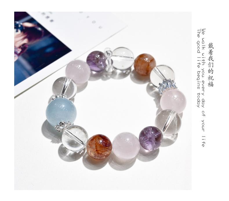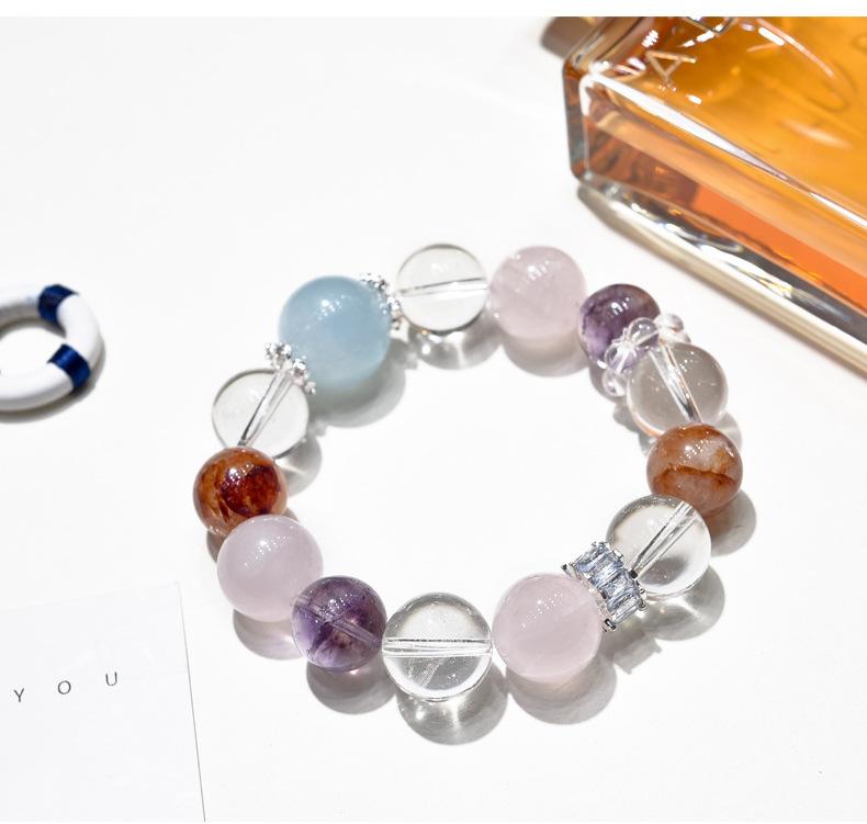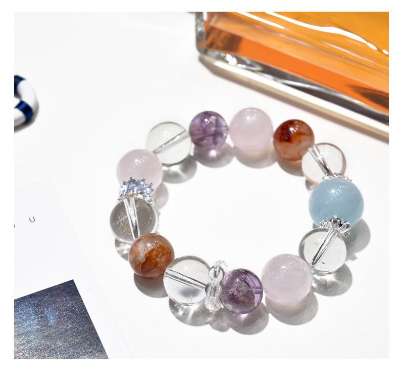 | Pulsera de cristal rosa estrellado de hielo natural Feng Chengxiang, pulsera de cristal rosa estrellado de seis puntas de Mozambique con un solo círculo |