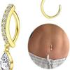 Anillo de ombligo con forma de gota de agua y incrustaciones de cobre y circonita, joya con hebilla de arco para piercing en el ombligo.