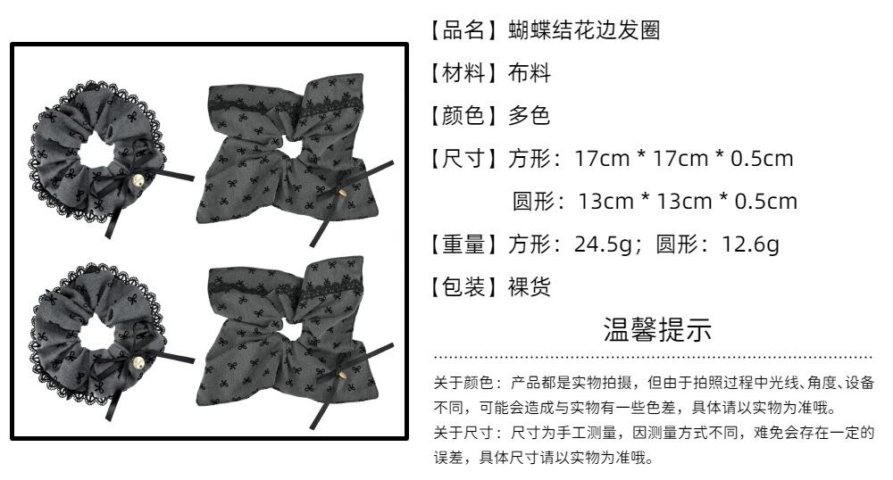 1#Bow lace large intestine hair tie, 2#Bow square hair tie