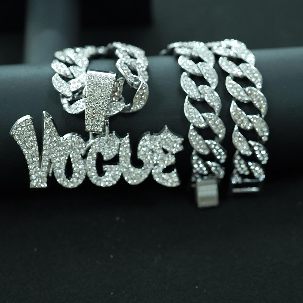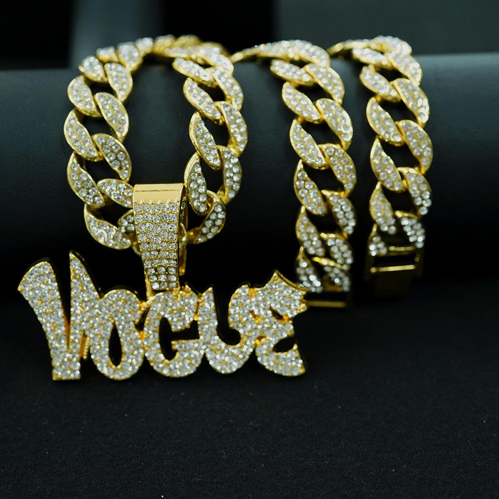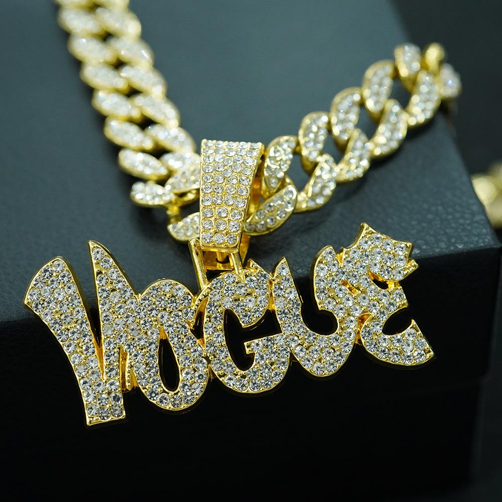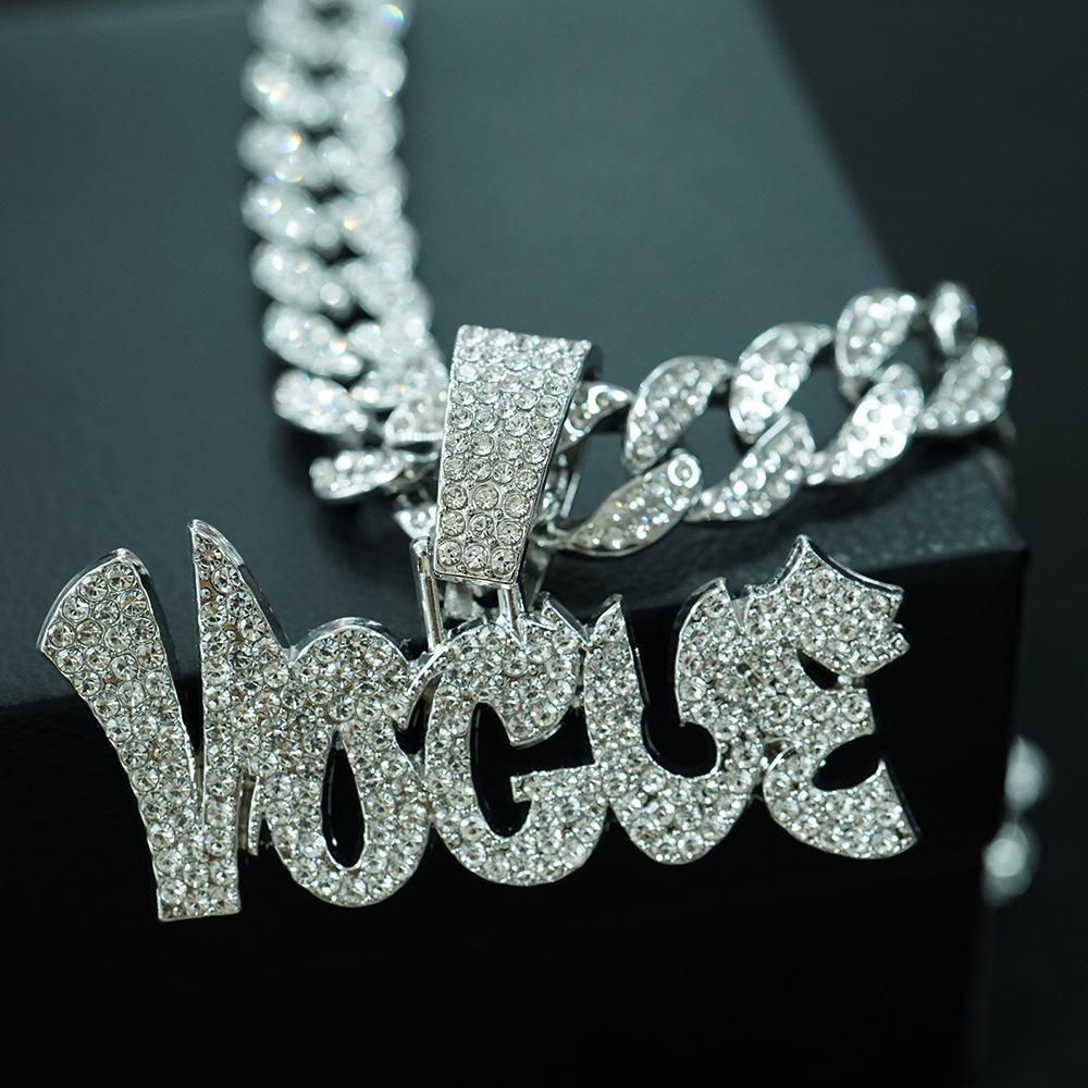 Colgante de aleación YOGVE con letras de diamantes de hip-hop para hombre, collar de hip-hop con personalidad y logotipo, decoración moderna.