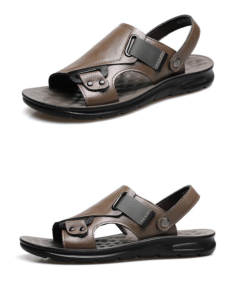 Sandalias de piel de vaca de primera capa para hombre, nuevas sandalias de verano para hombre, zapatos casuales de playa para exteriores, sandalias para hombre, sandalias de cuero de estilo británico coreano.