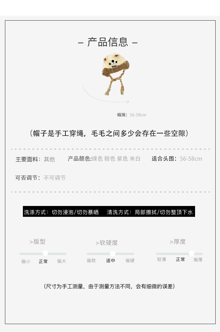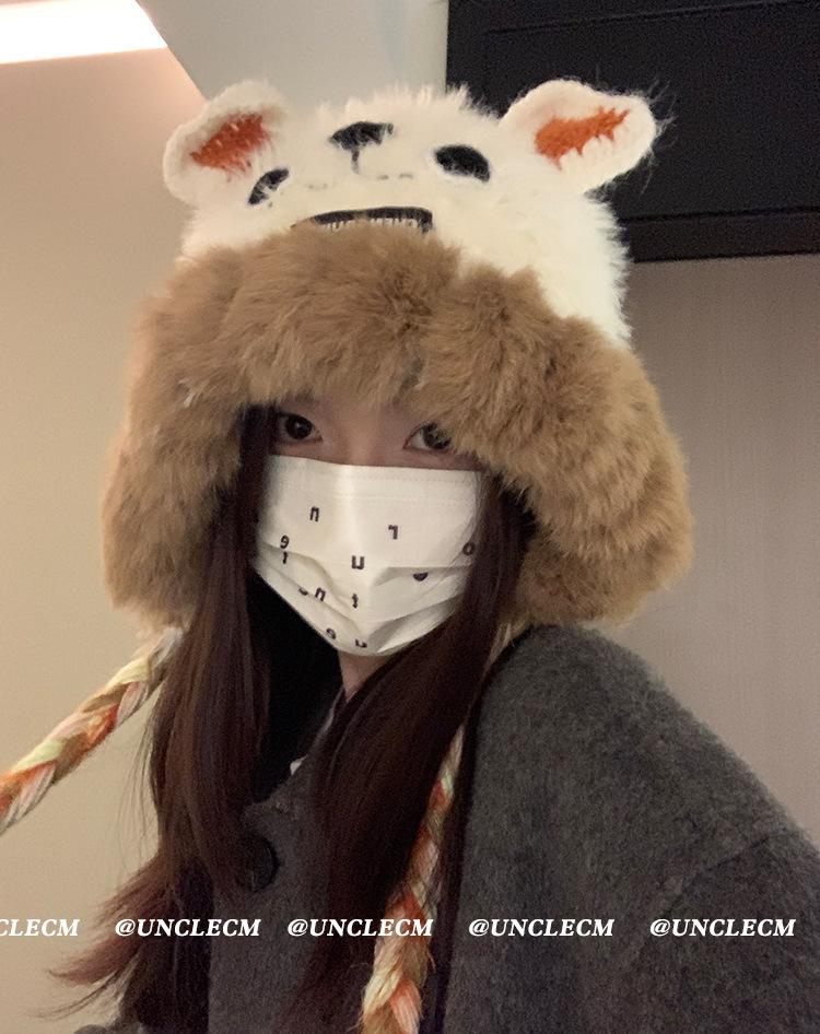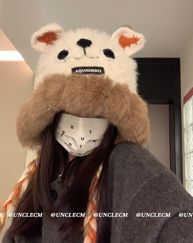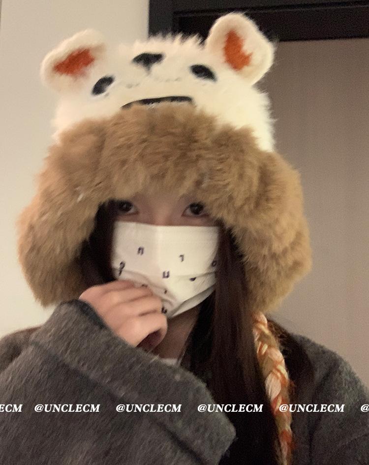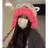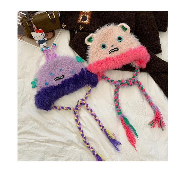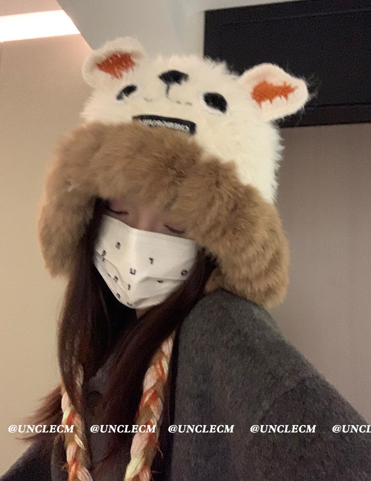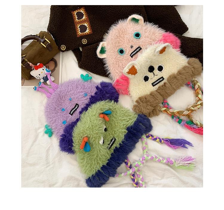 Gorro de oso de peluche monstruo para mujer, otoño e invierno, nuevo, dulce, lindo, pequeño gorro de lana con protección para las orejas, gorro Lei Feng blanco