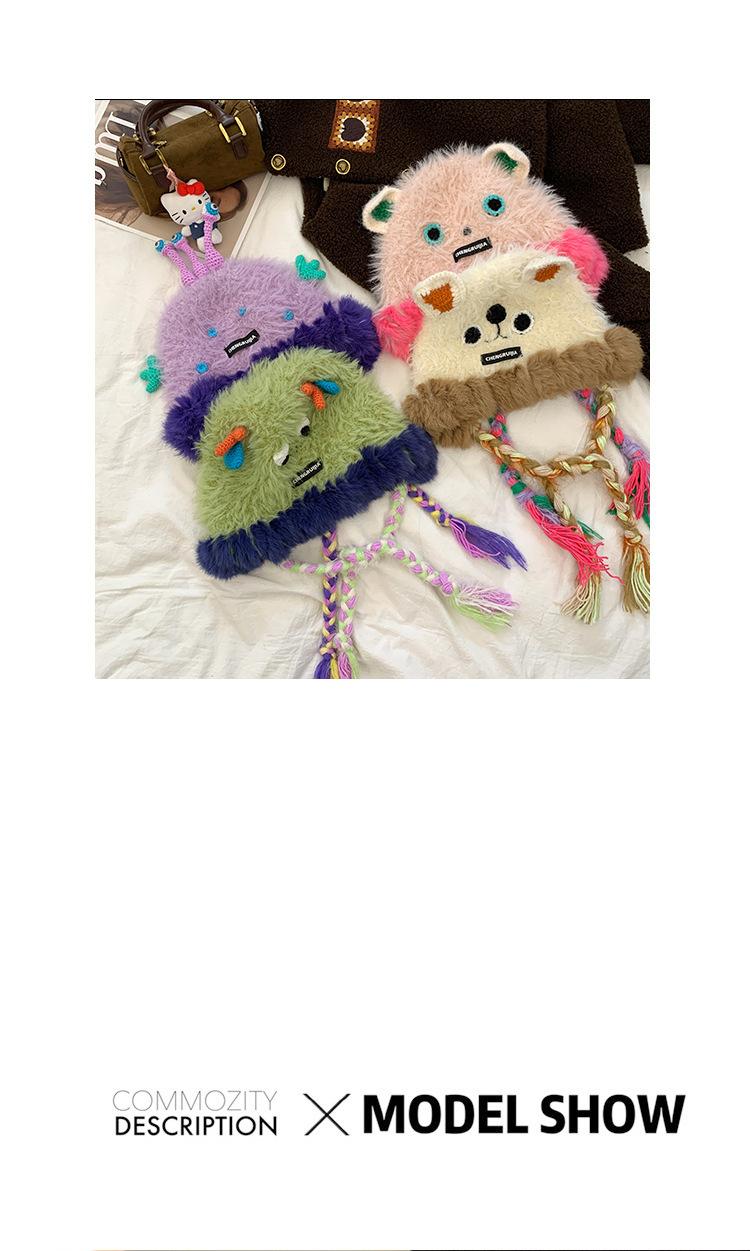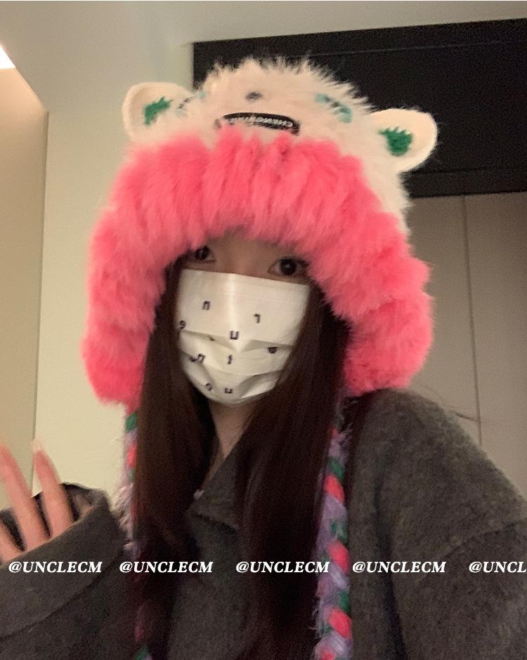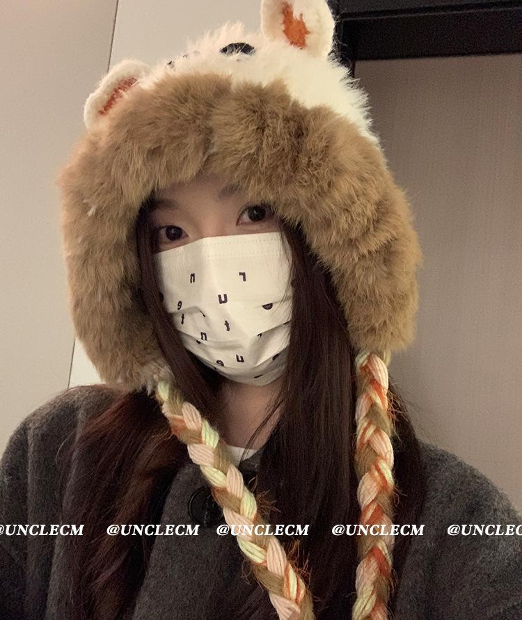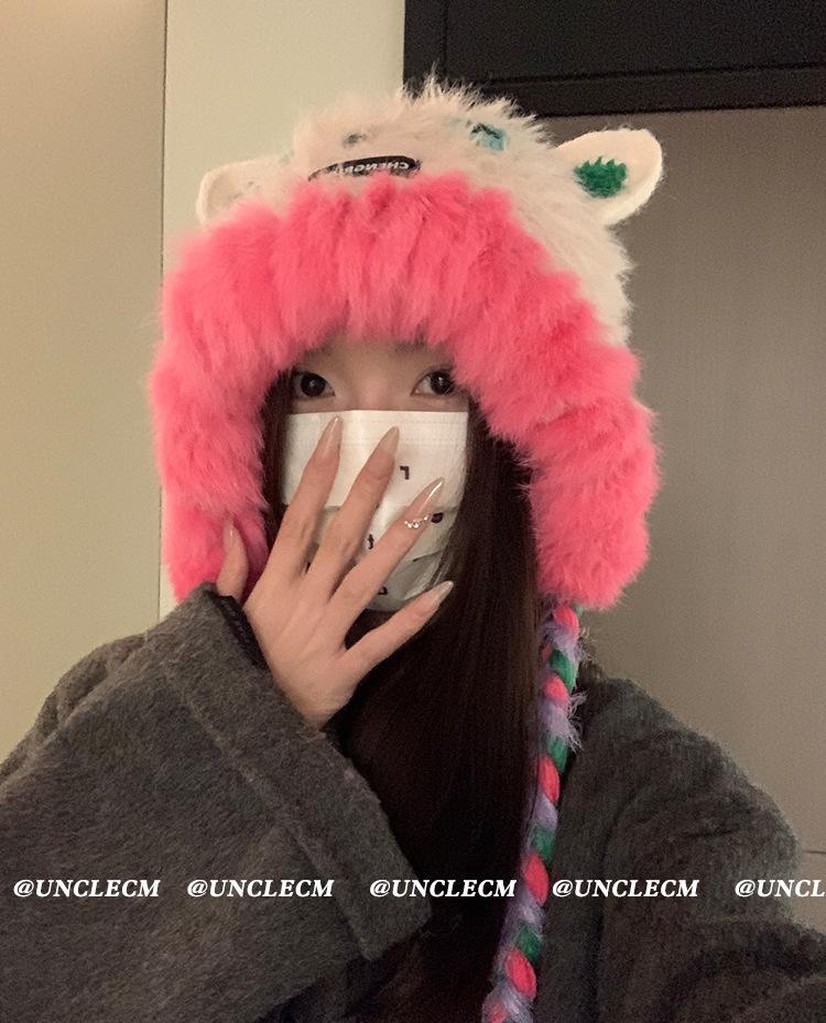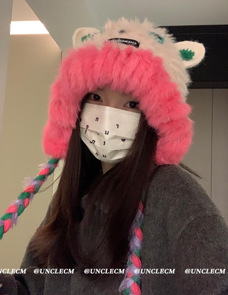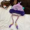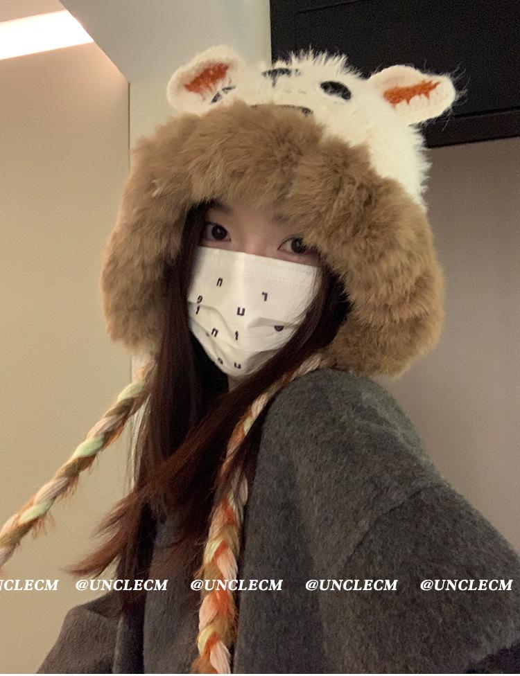 Gorro de oso de peluche monstruo para mujer, otoño e invierno, nuevo, dulce, lindo, pequeño gorro de lana con protección para las orejas, gorro Lei Feng blanco