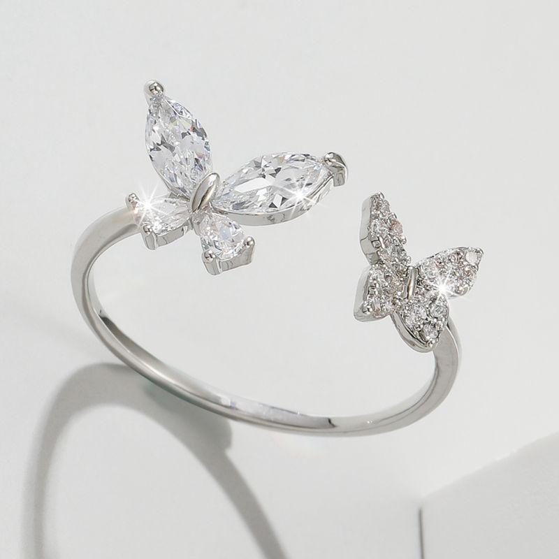 Anillo de Circonita de Mariposa de Alta Gama para Mujer, Diseño Nicho, Anillo de Dedo Índice de Estilo Ins de Moda, Anillo Abierto de Moda de Personalidad Minimalista