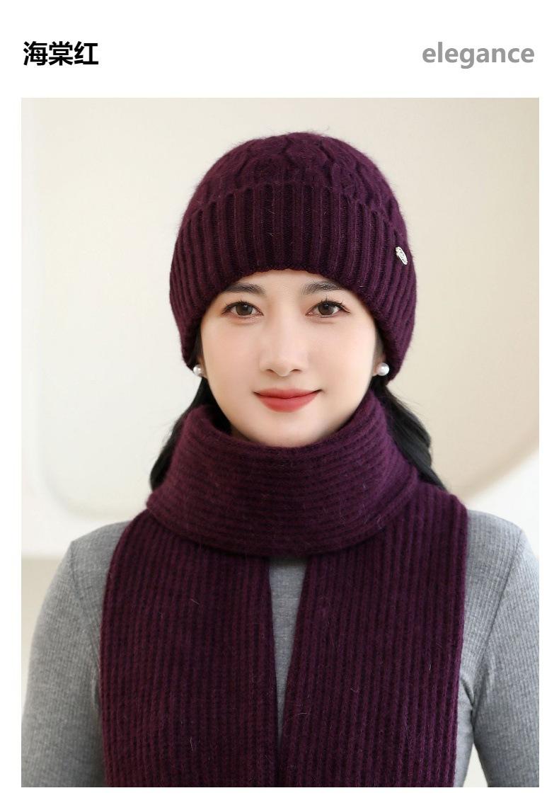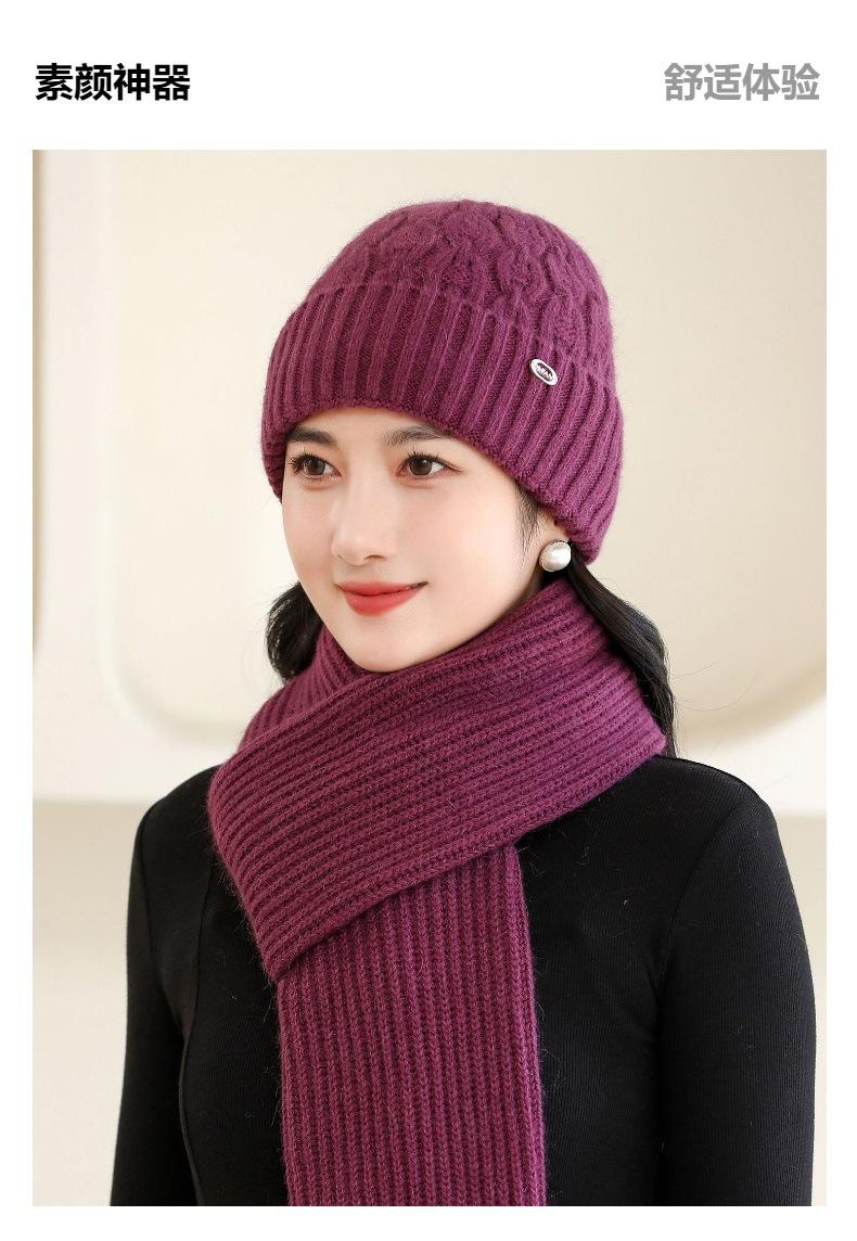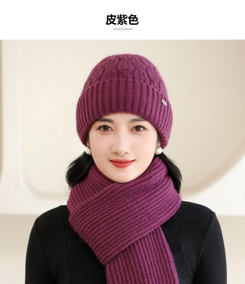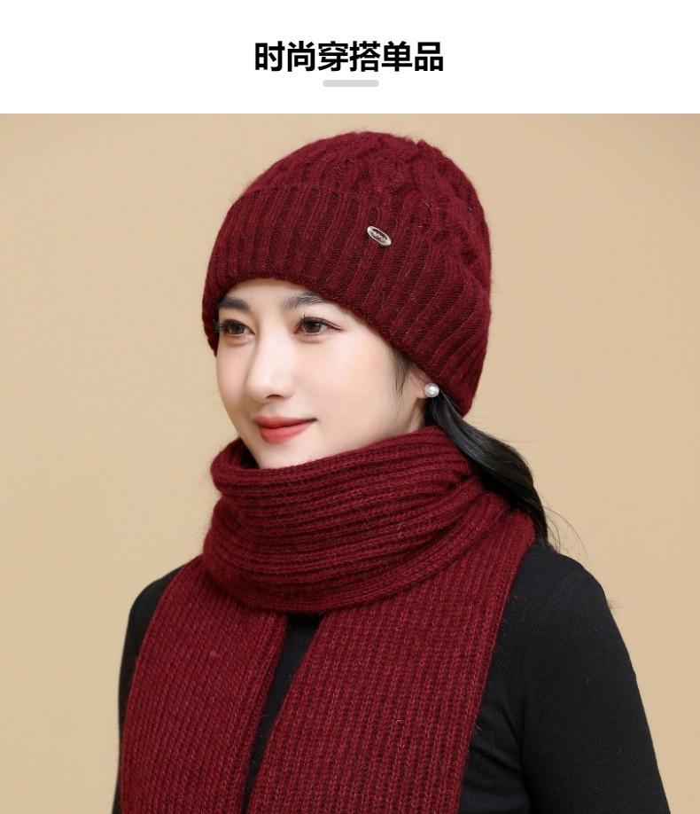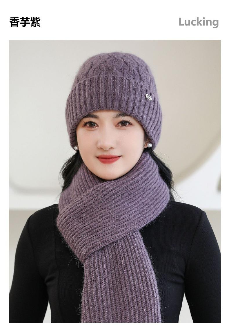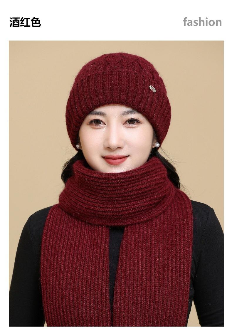 Gorro de punto de pelo de conejo, gorro cálido para madre, gorro de invierno nuevo, grueso, con protección para las orejas, gorro cálido para la cabeza, bufanda, conjunto de dos piezas