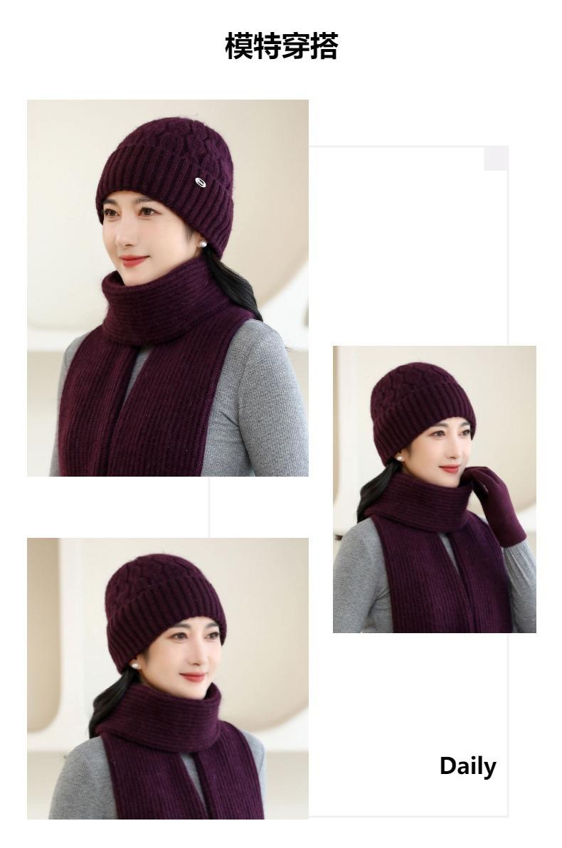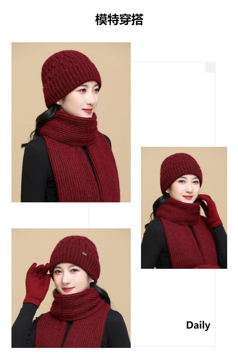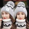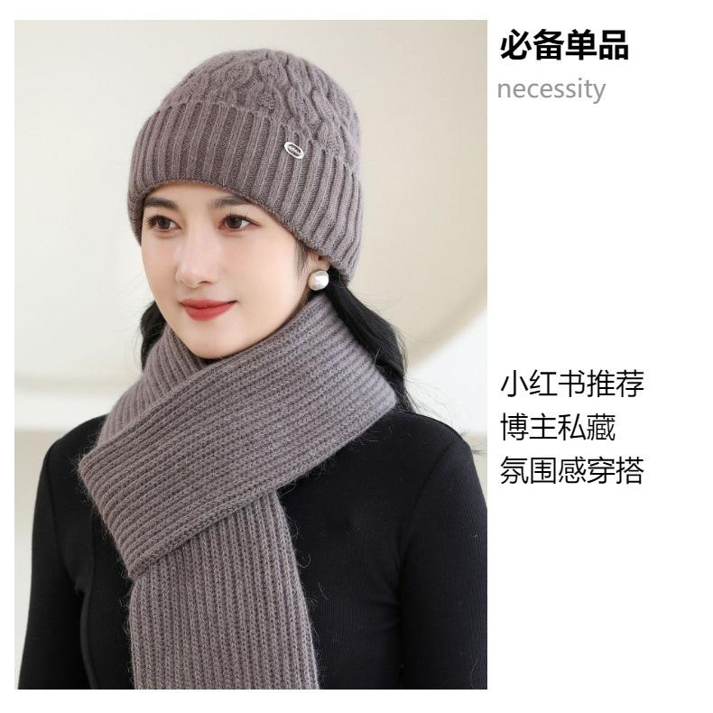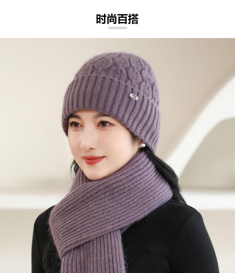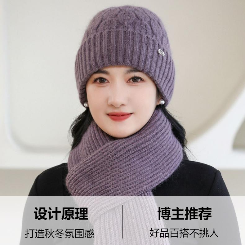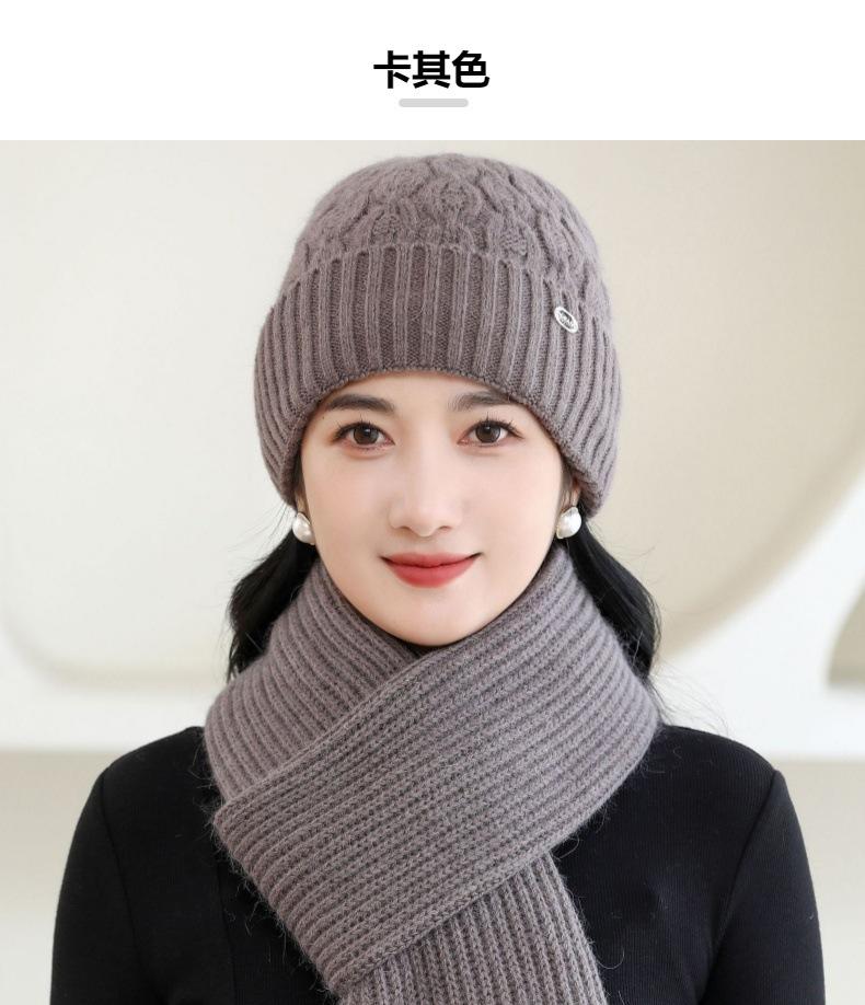 Gorro de punto de pelo de conejo, gorro cálido para madre, gorro de invierno nuevo, grueso, con protección para las orejas, gorro cálido para la cabeza, bufanda, conjunto de dos piezas