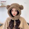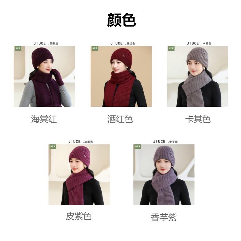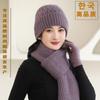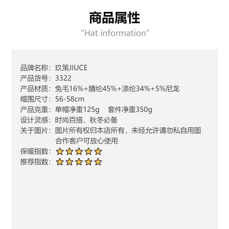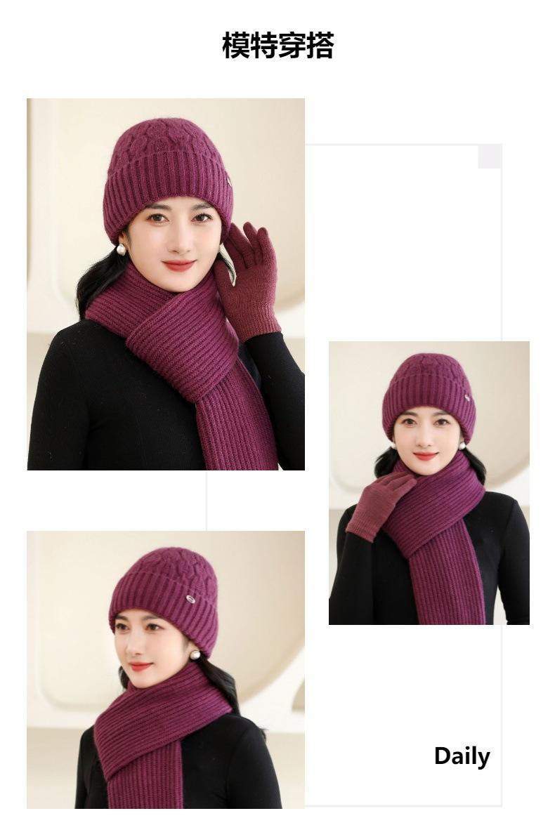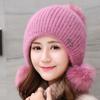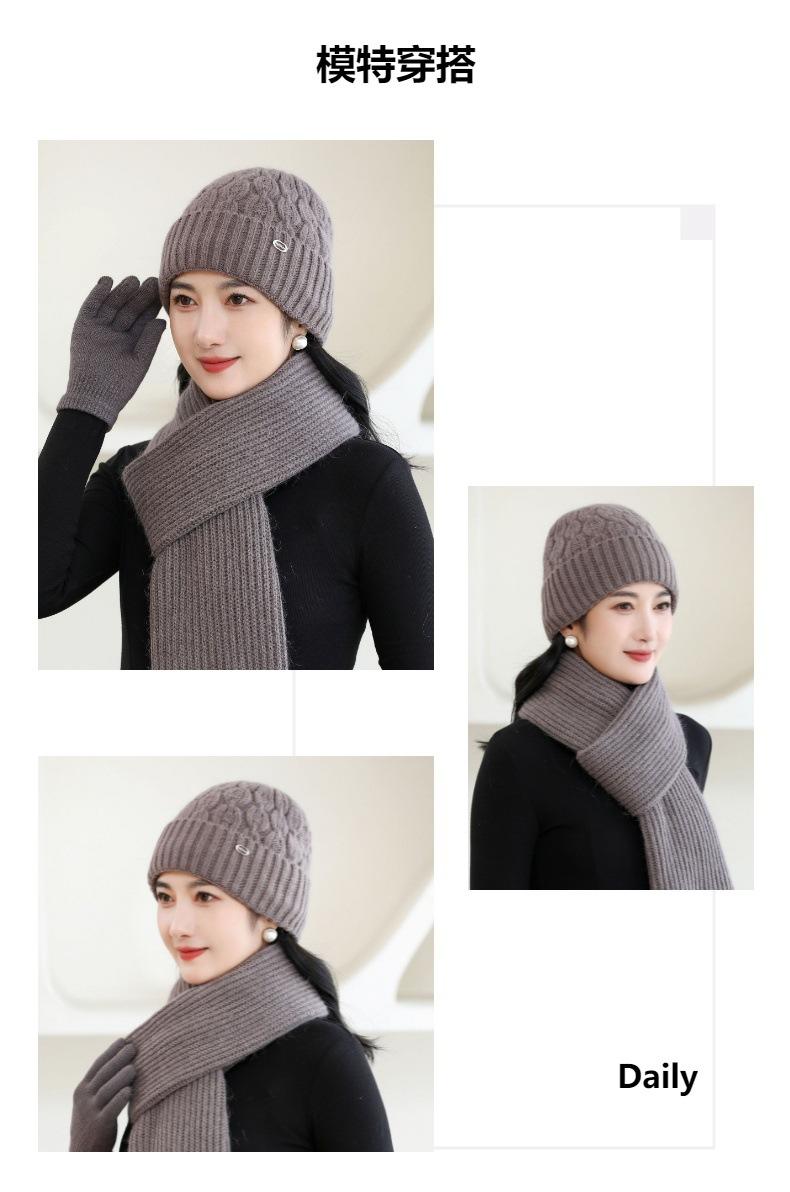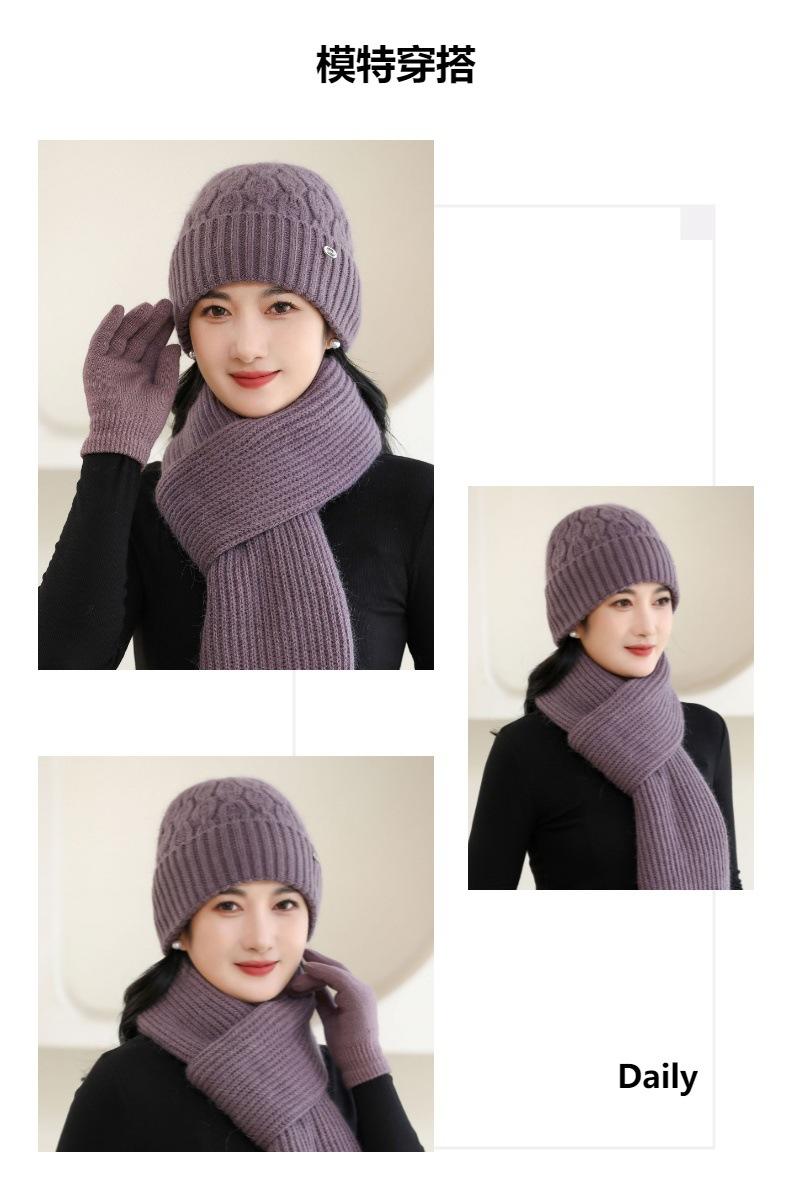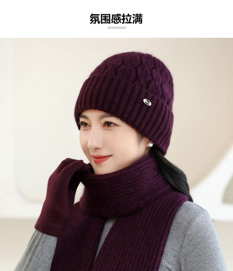 Gorro de punto de pelo de conejo, gorro cálido para madre, gorro de invierno nuevo, grueso, con protección para las orejas, gorro cálido para la cabeza, bufanda, conjunto de dos piezas