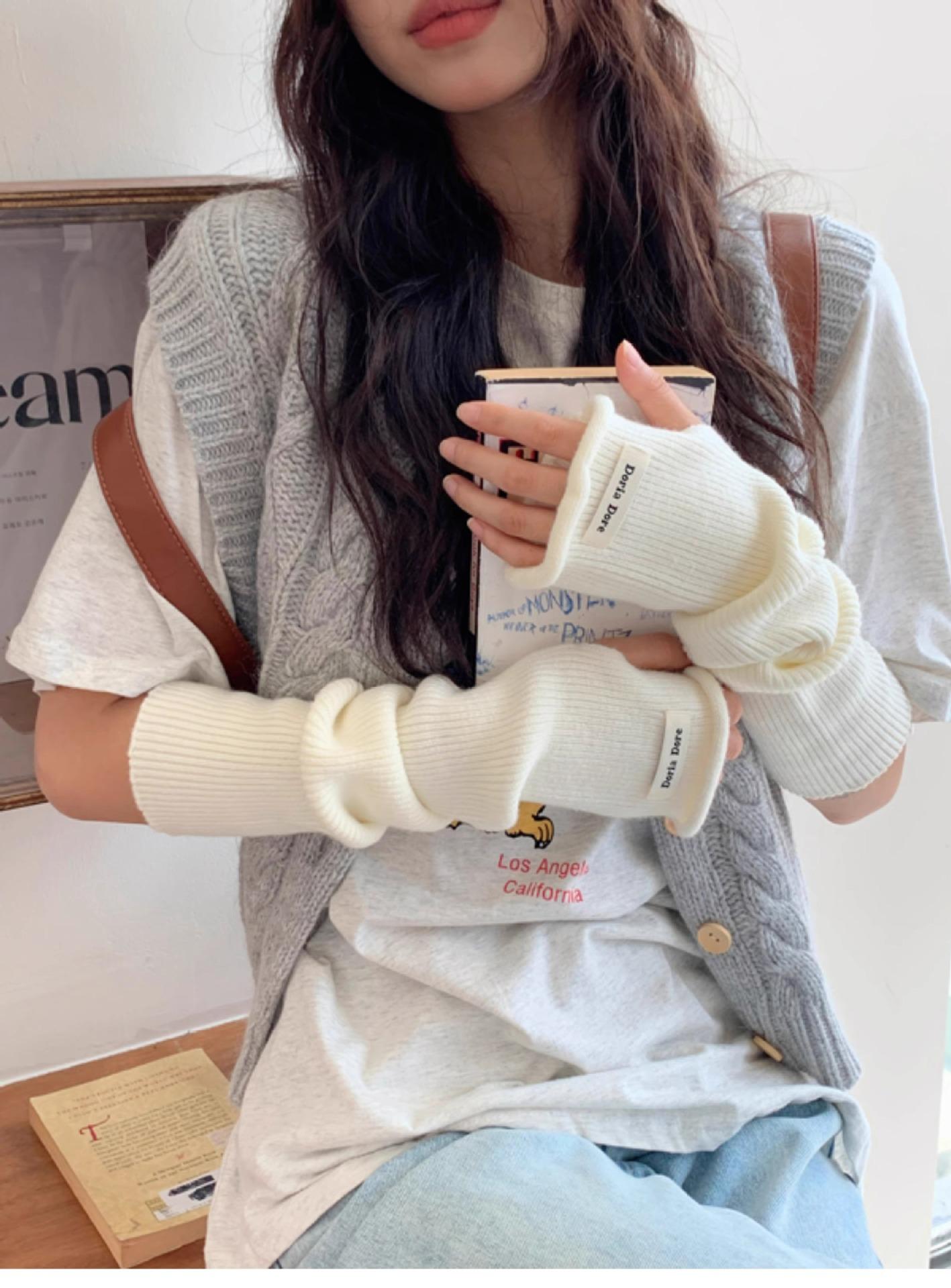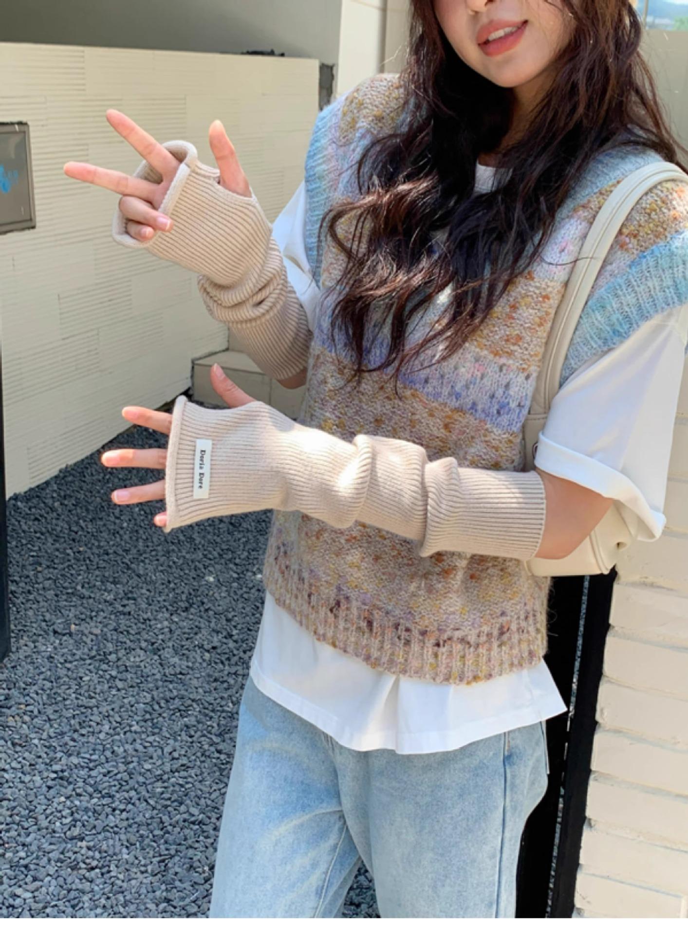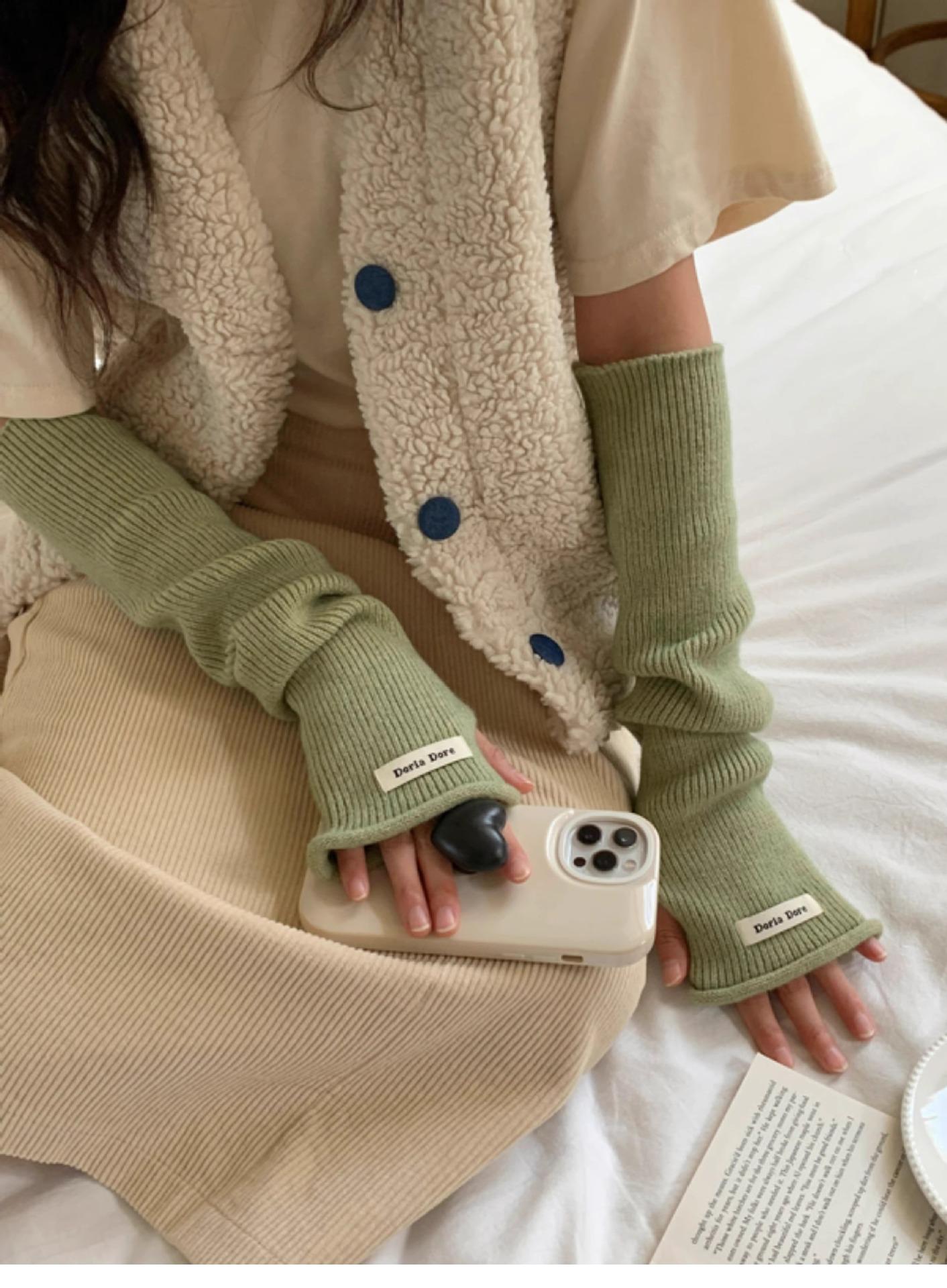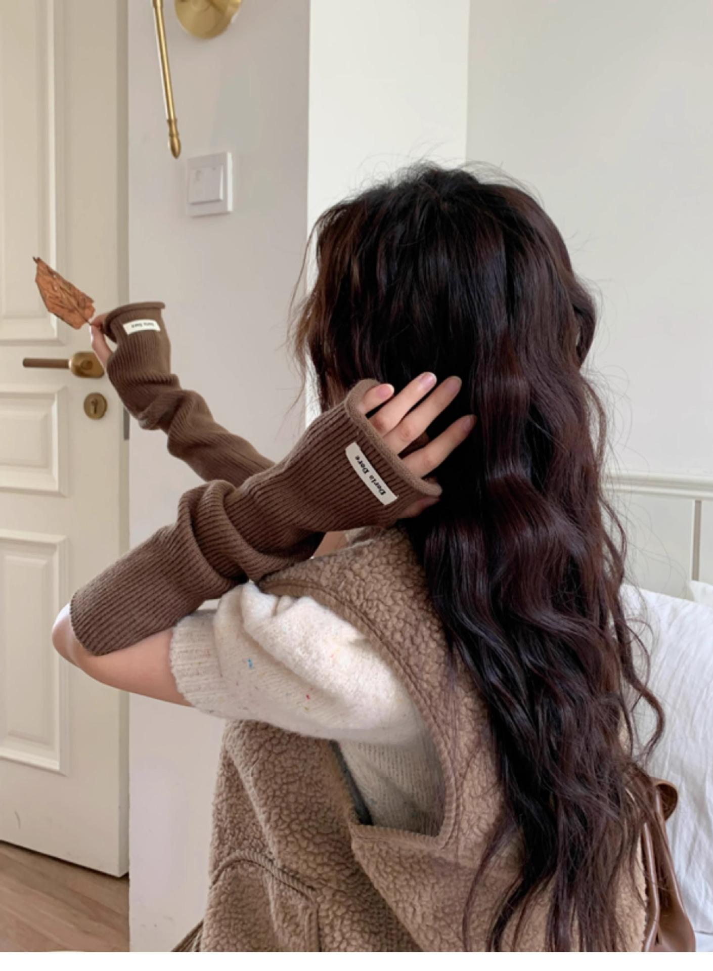 Guantes de invierno de punto para mujer, largos, cálidos y combinables, con protección para los brazos, mangas falsas, mangas sueltas