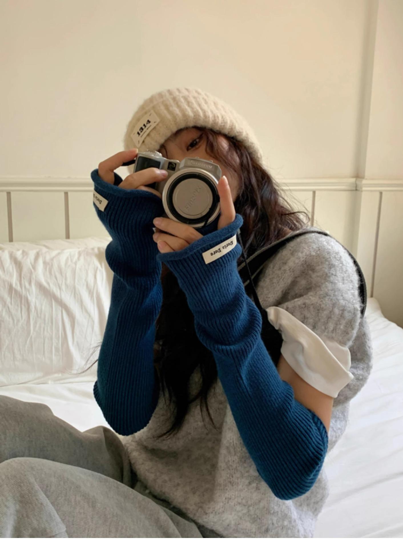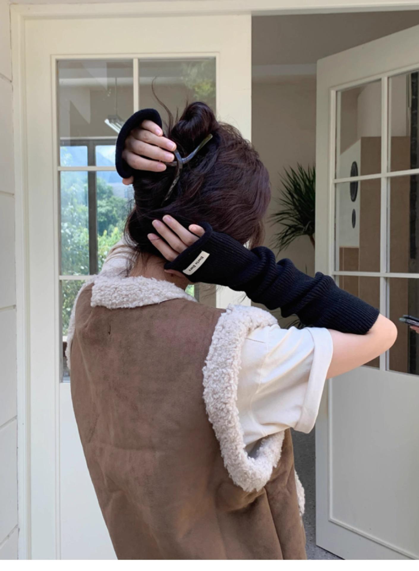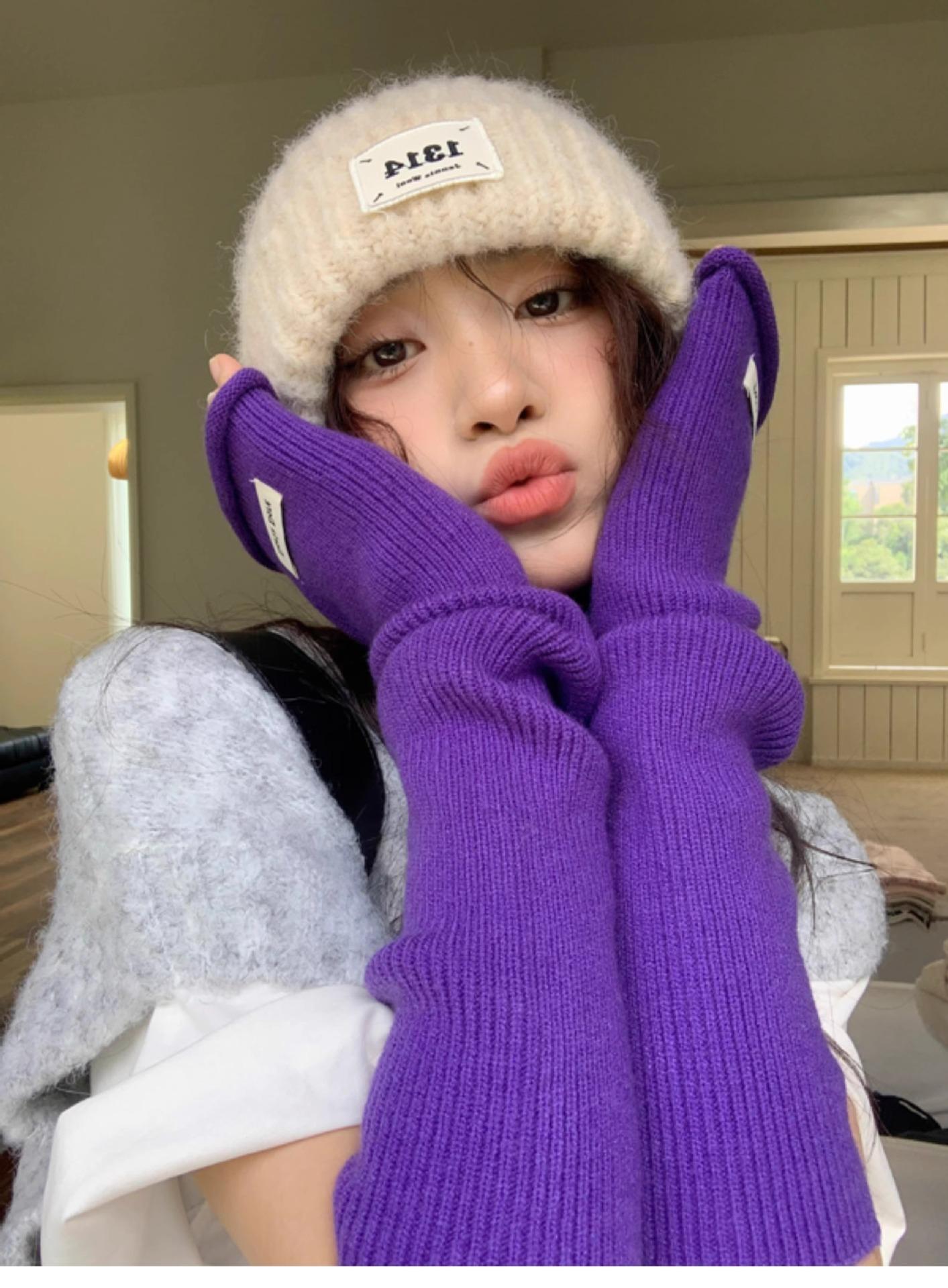 Guantes de invierno de punto para mujer, largos, cálidos y combinables, con protección para los brazos, mangas falsas, mangas sueltas