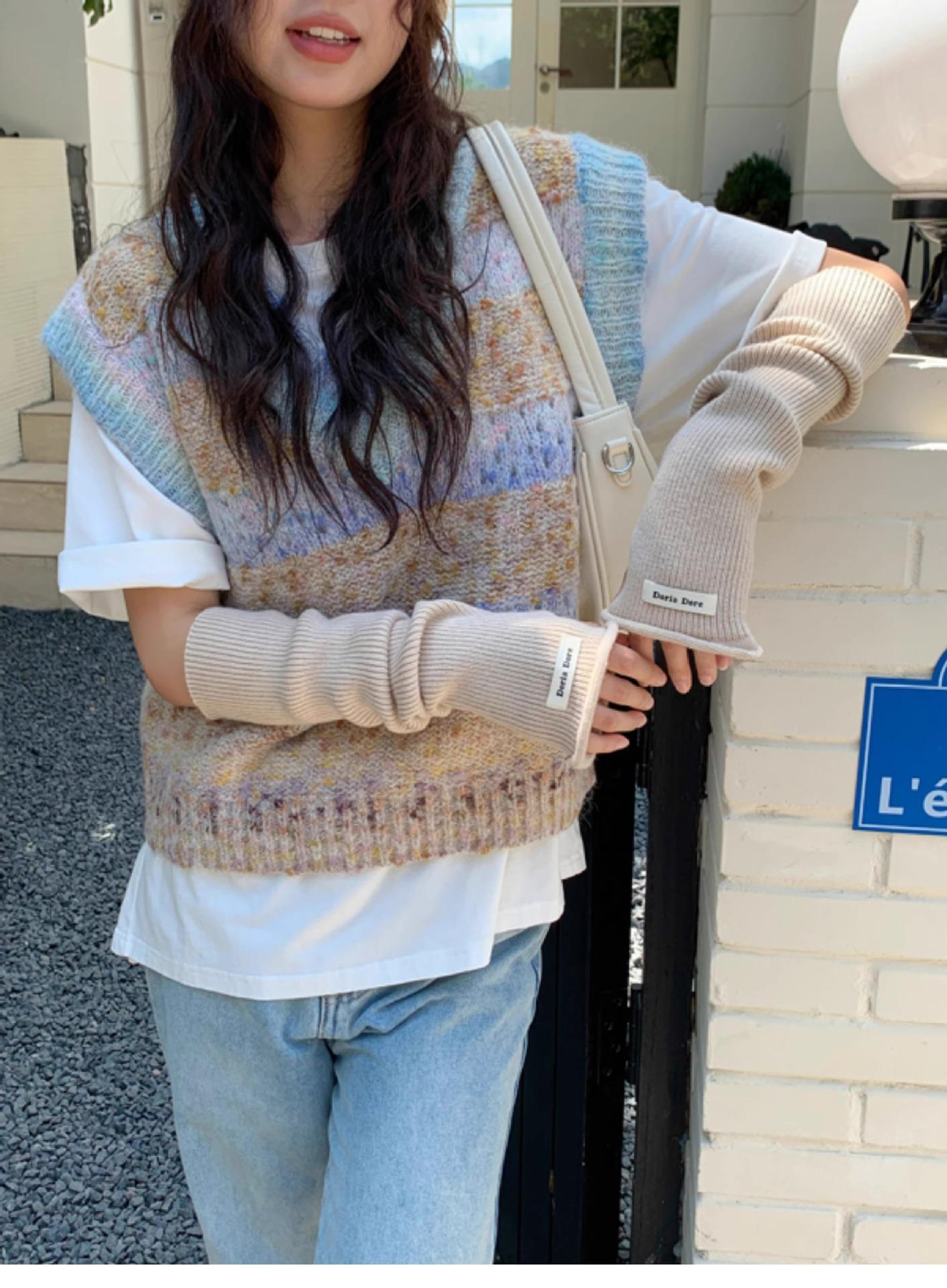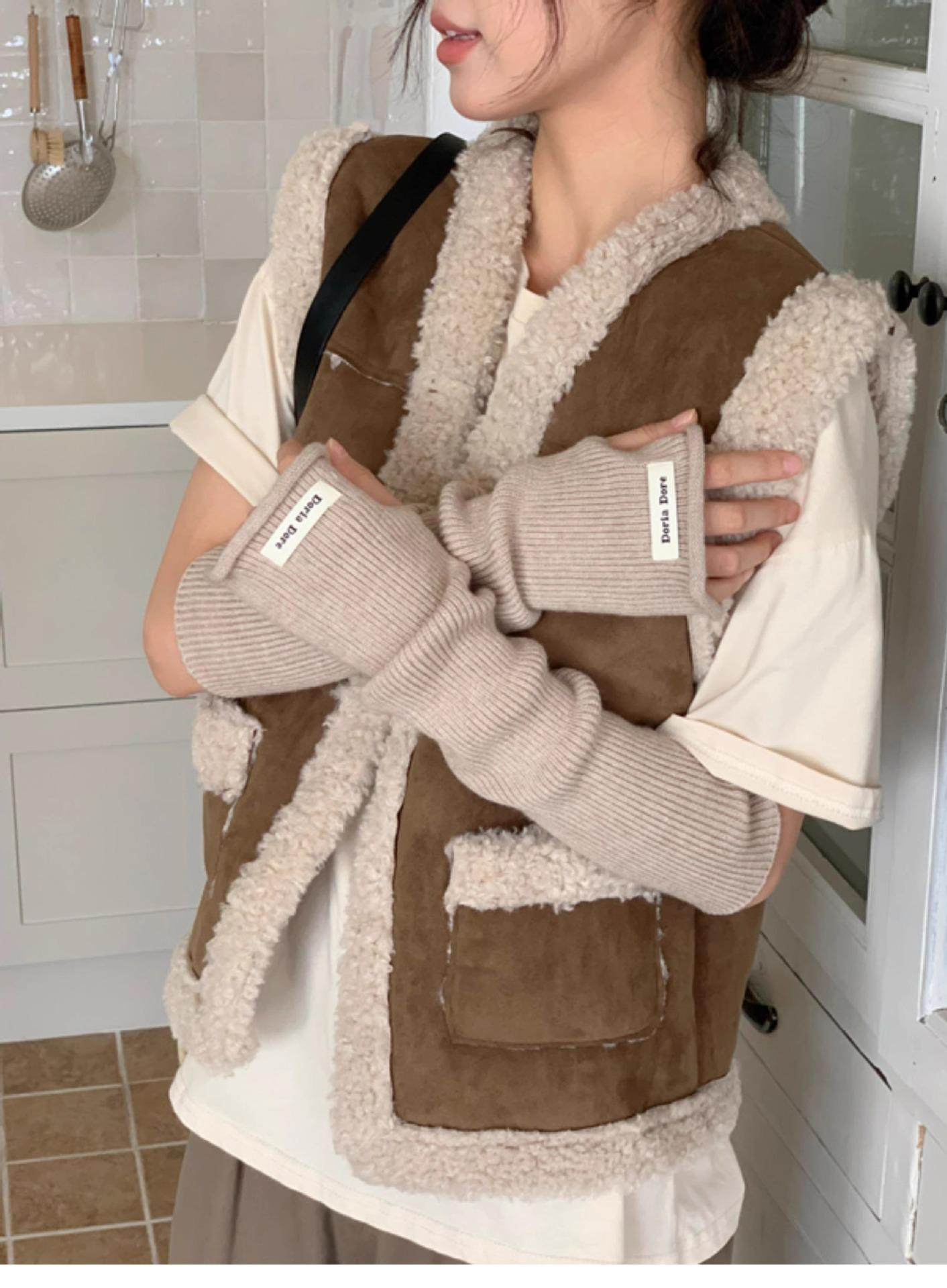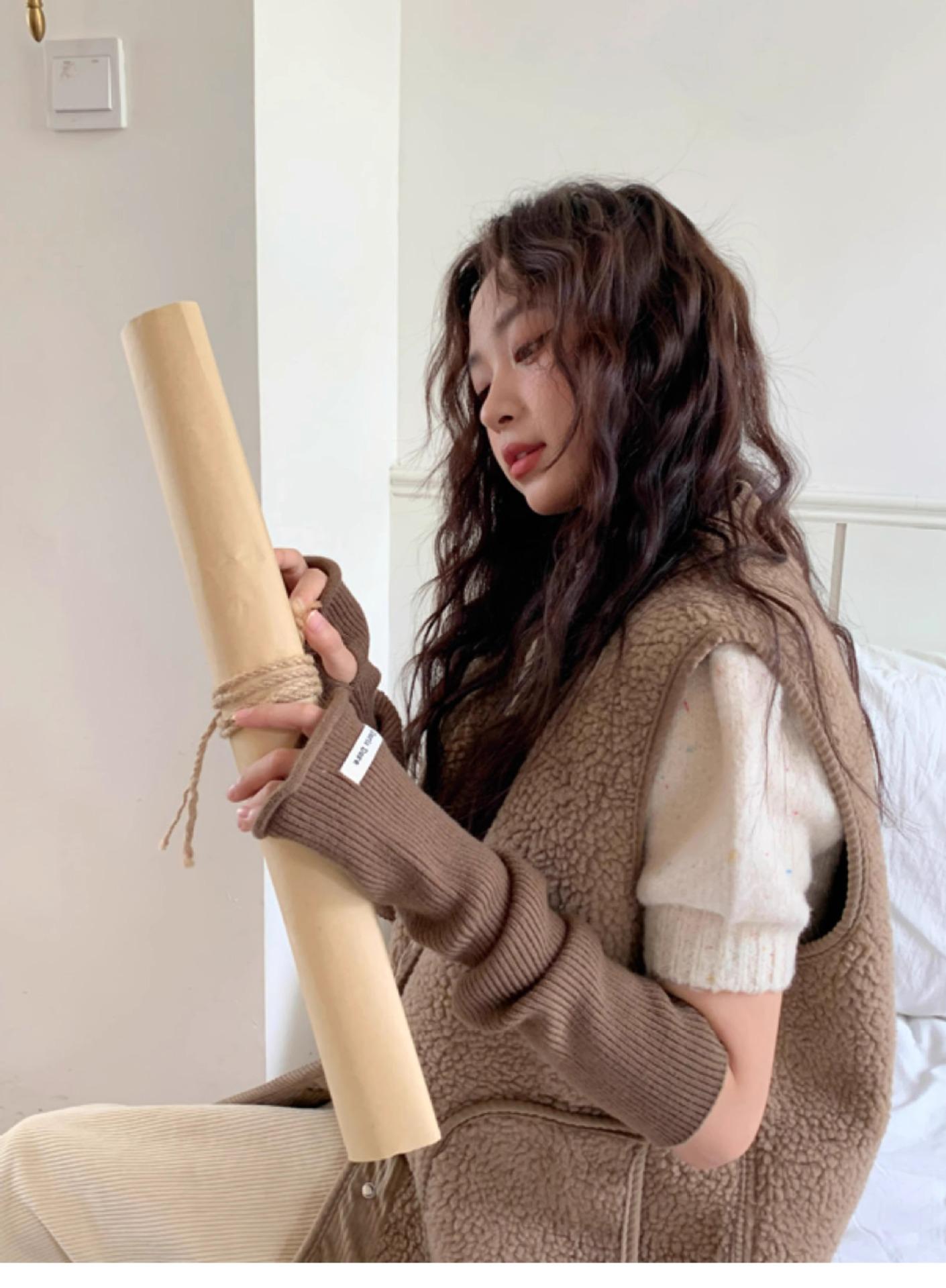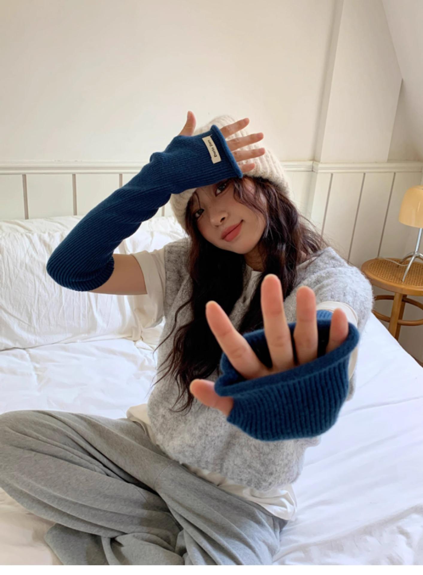 Guantes de invierno de punto para mujer, largos, cálidos y combinables, con protección para los brazos, mangas falsas, mangas sueltas