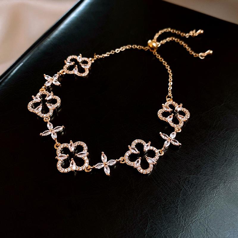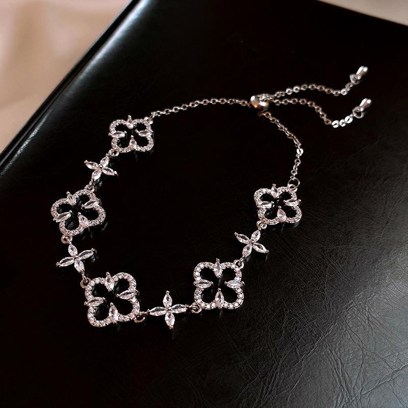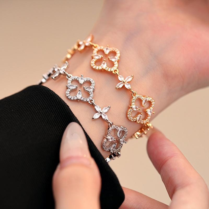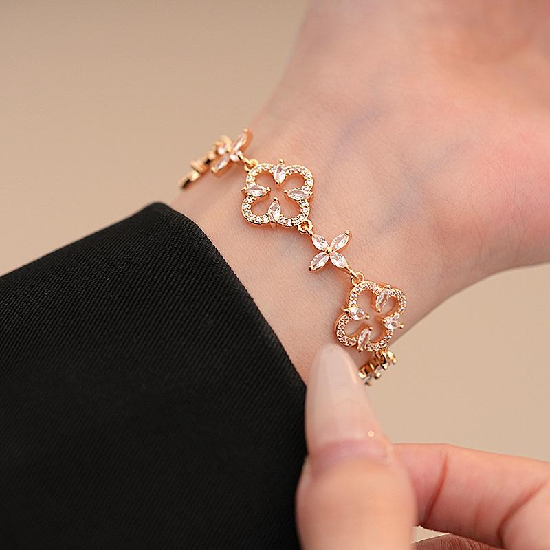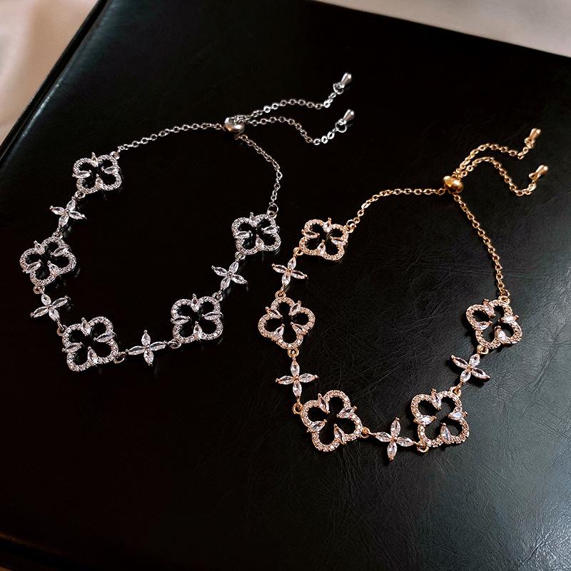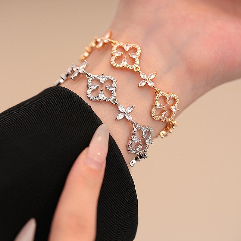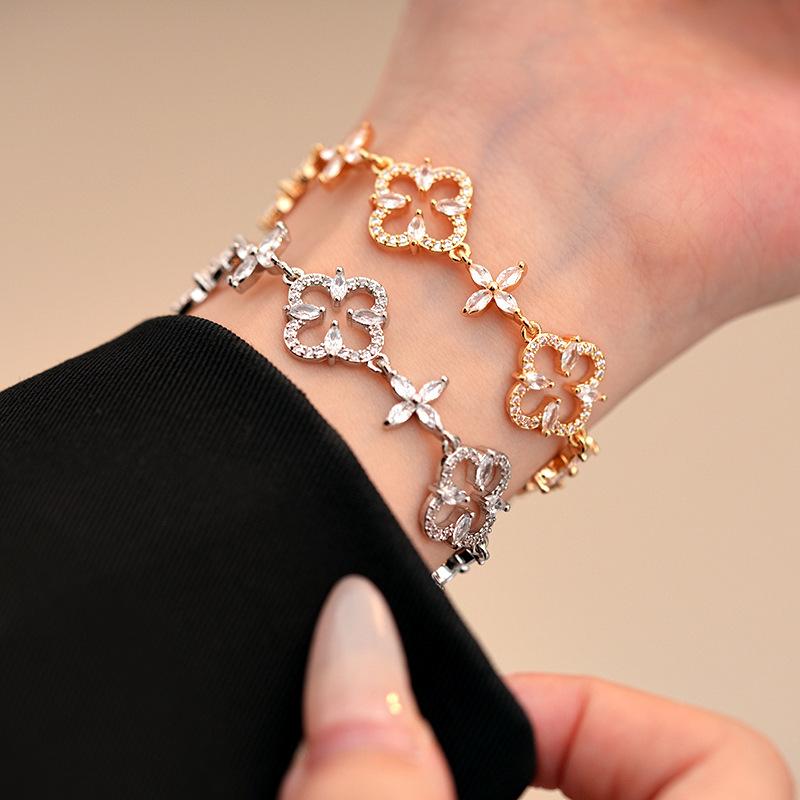 Pulsera Ajustable de Circonita con Flor Hueca de Lujo Ligero Pulsera Simple de Sentido de Alta Gama Exquisita Elegante para Viajeros Pulsera Versátil