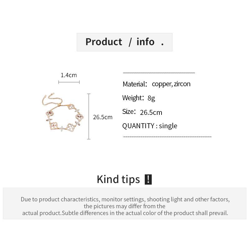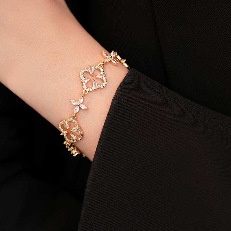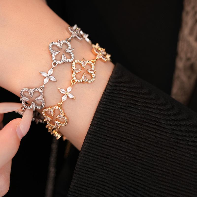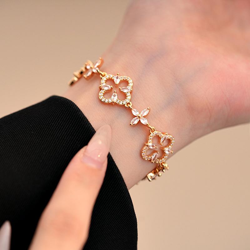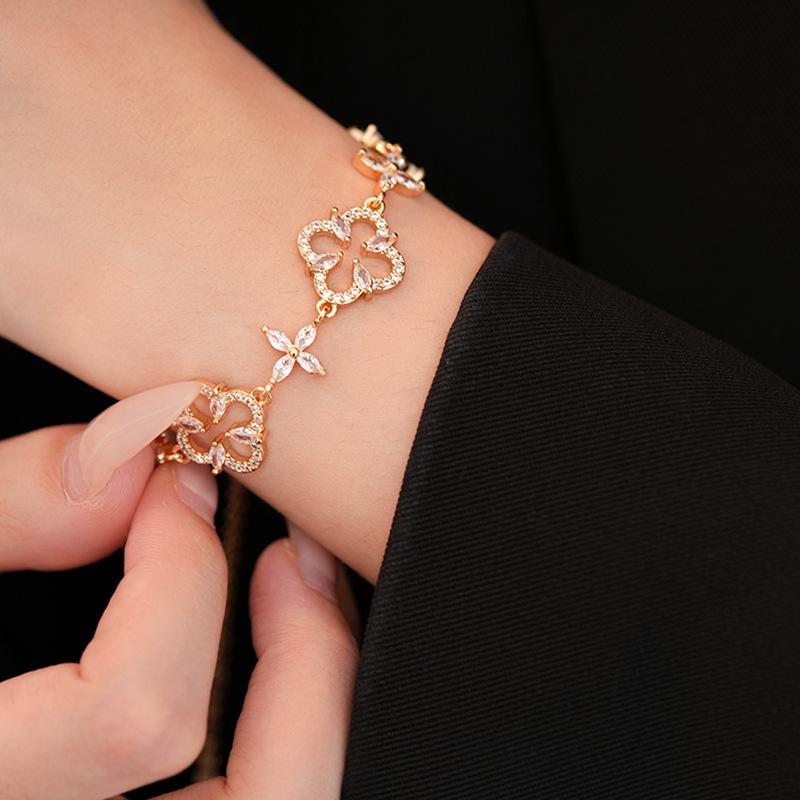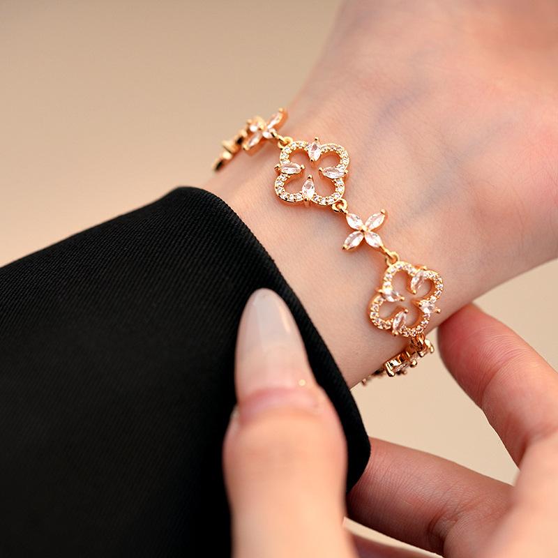 Pulsera Ajustable de Circonita con Flor Hueca de Lujo Ligero Pulsera Simple de Sentido de Alta Gama Exquisita Elegante para Viajeros Pulsera Versátil