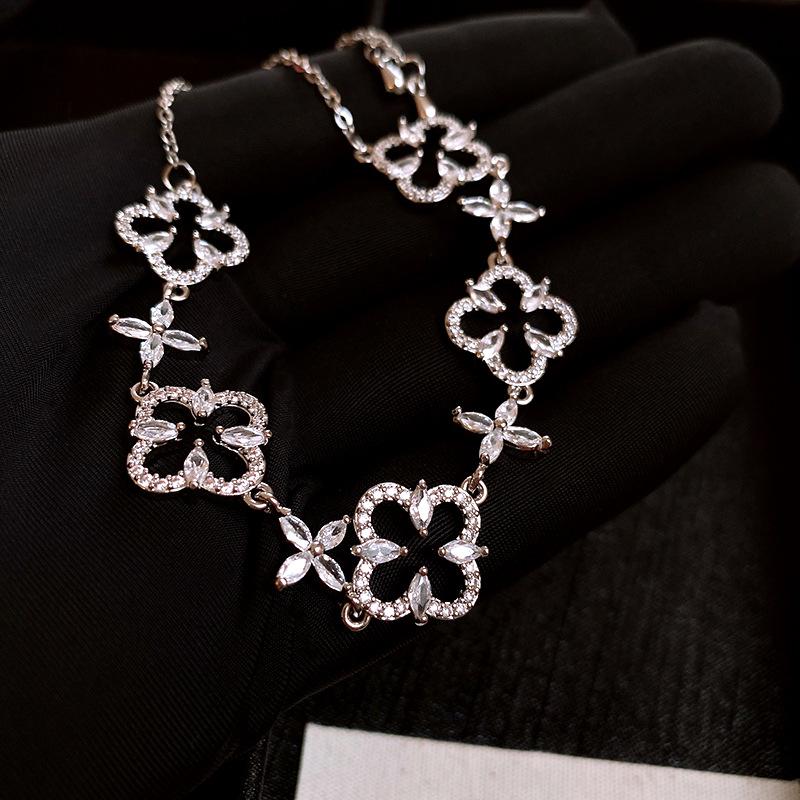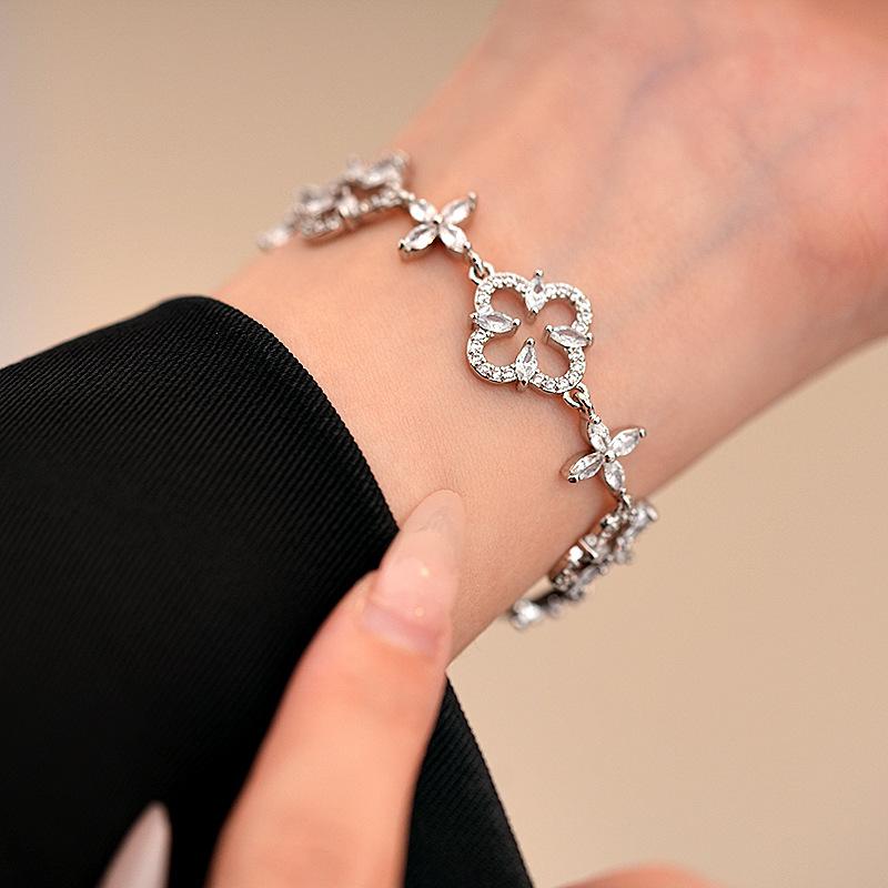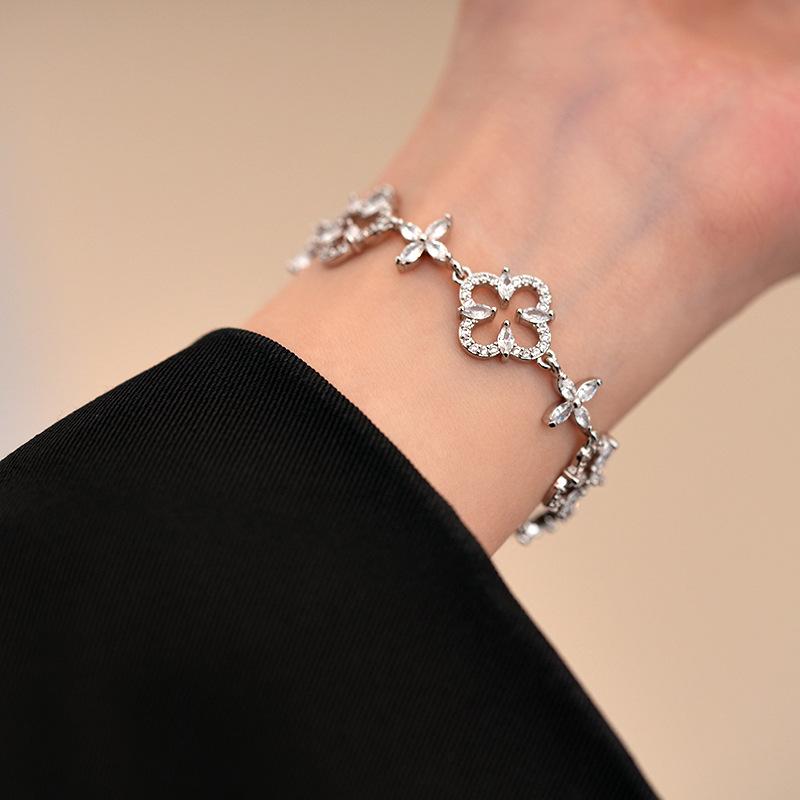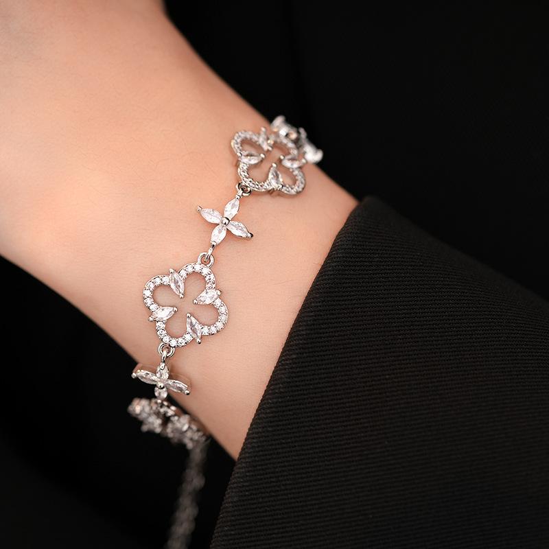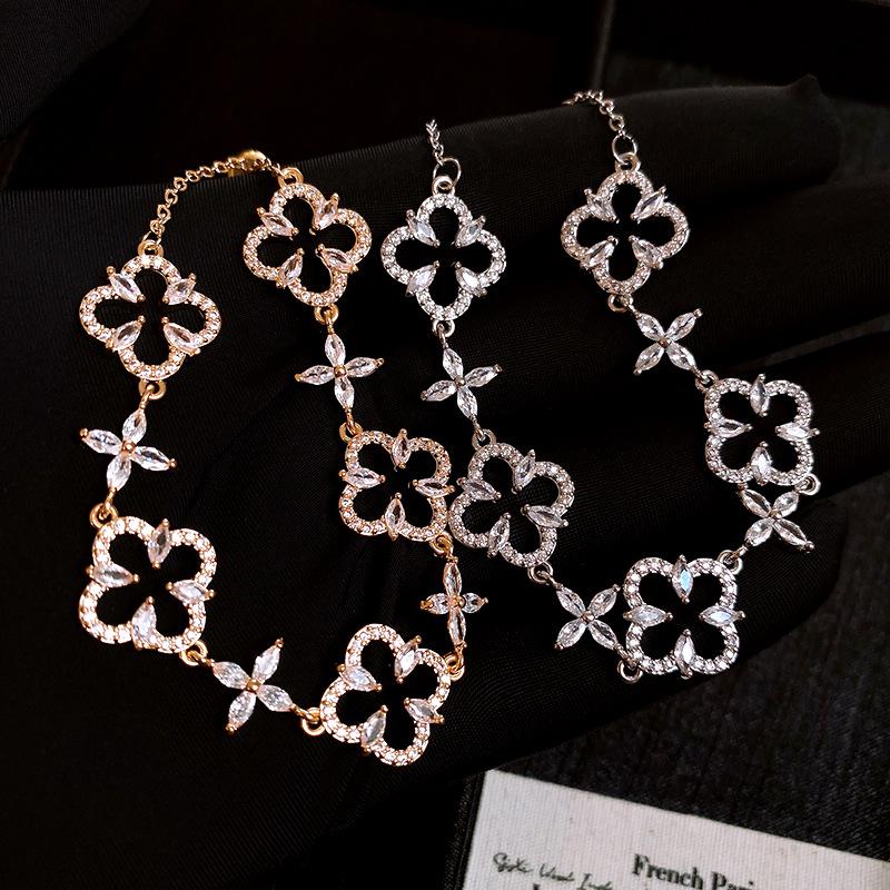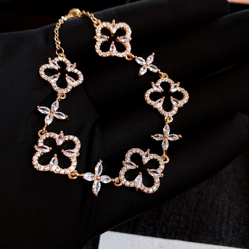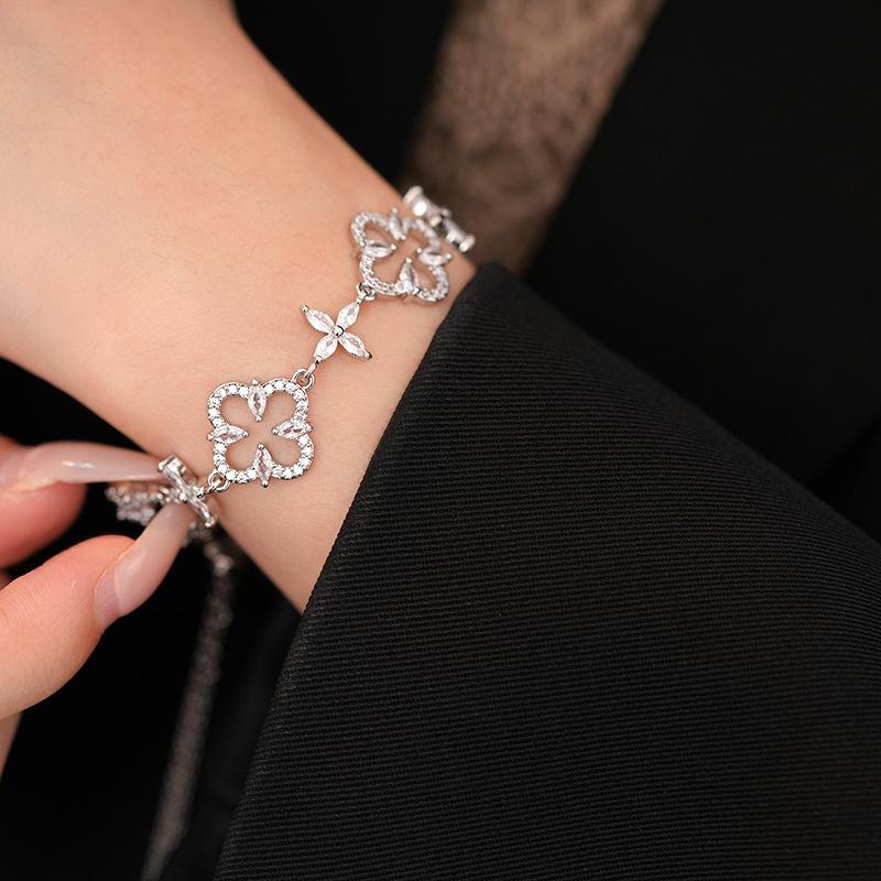 Pulsera Ajustable de Circonita con Flor Hueca de Lujo Ligero Pulsera Simple de Sentido de Alta Gama Exquisita Elegante para Viajeros Pulsera Versátil