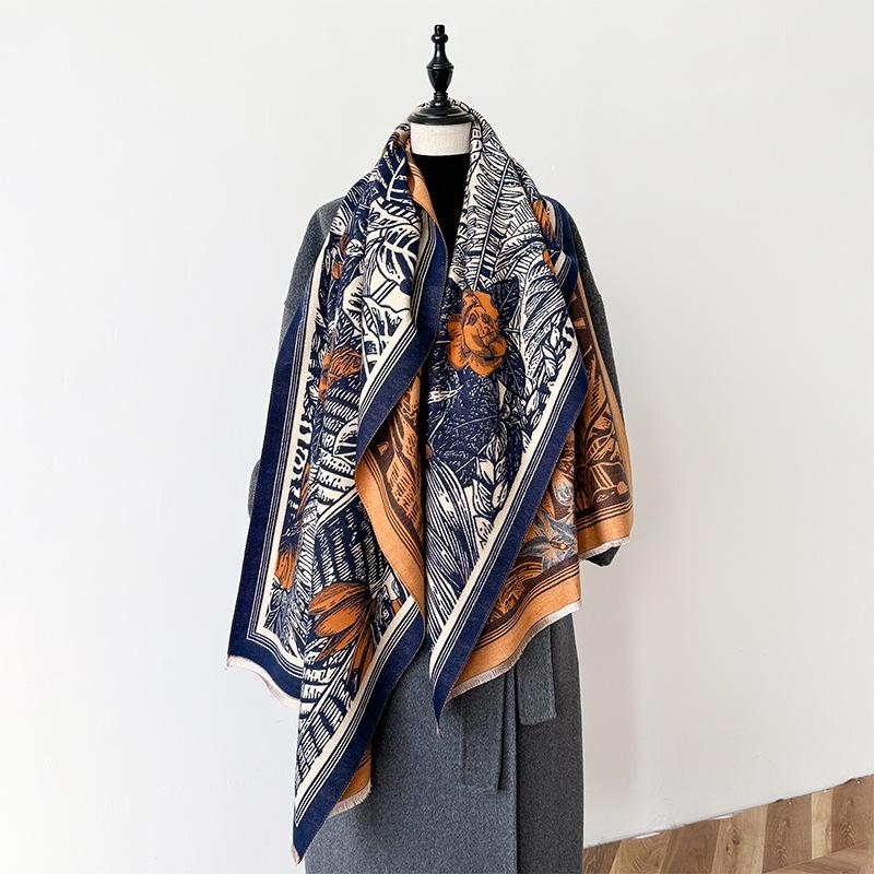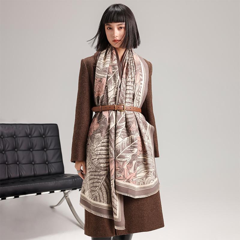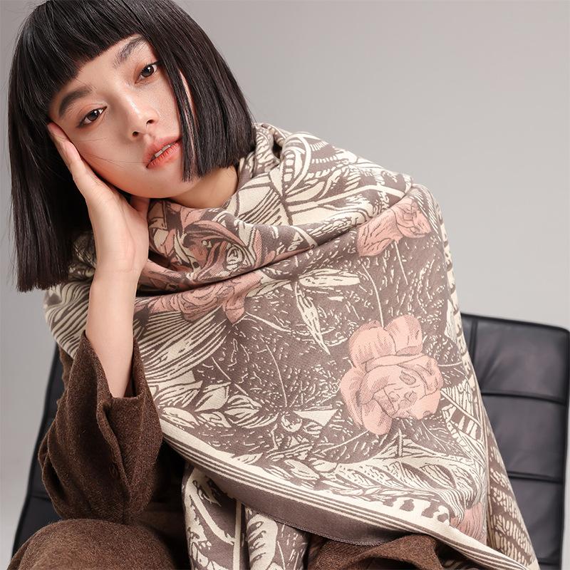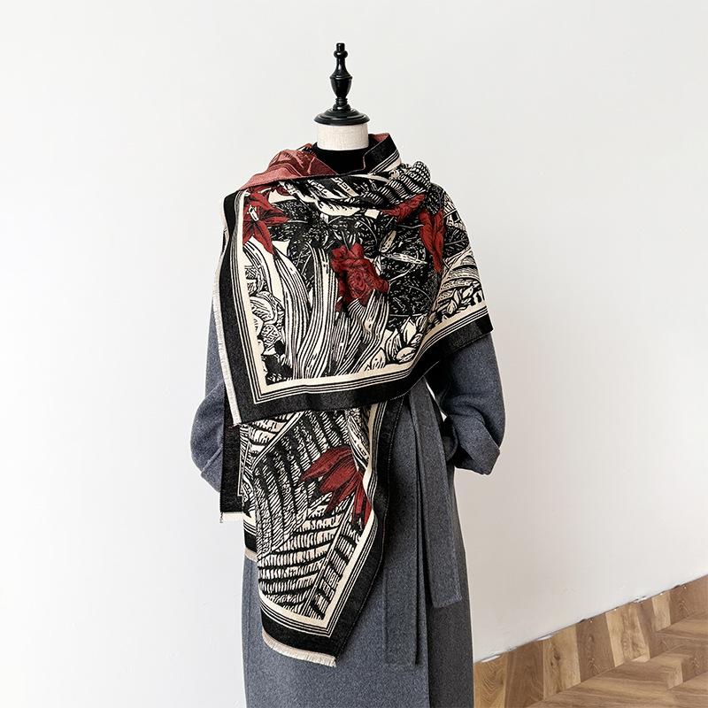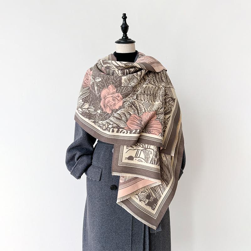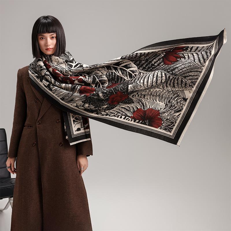 Bufanda Cálida de Cachemira Imitada de Doble Cara con Estampado de Moda con Textura de Líneas Florales de Estilo Europeo y Americano para Otoño e Invierno Chal Exterior para Mujer