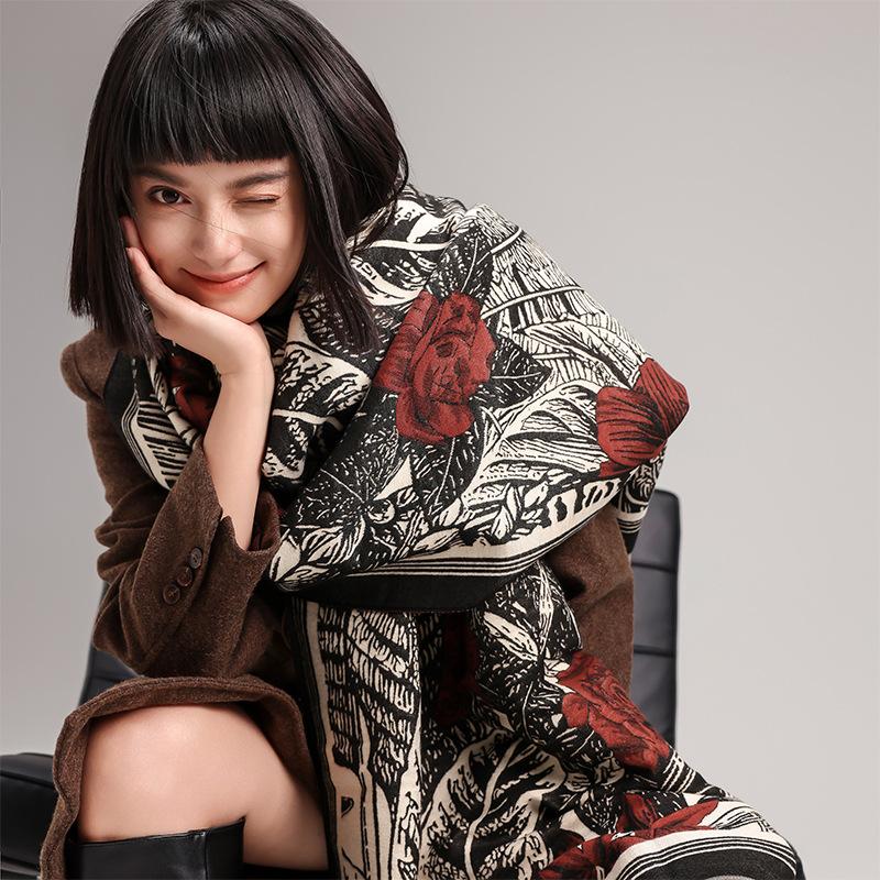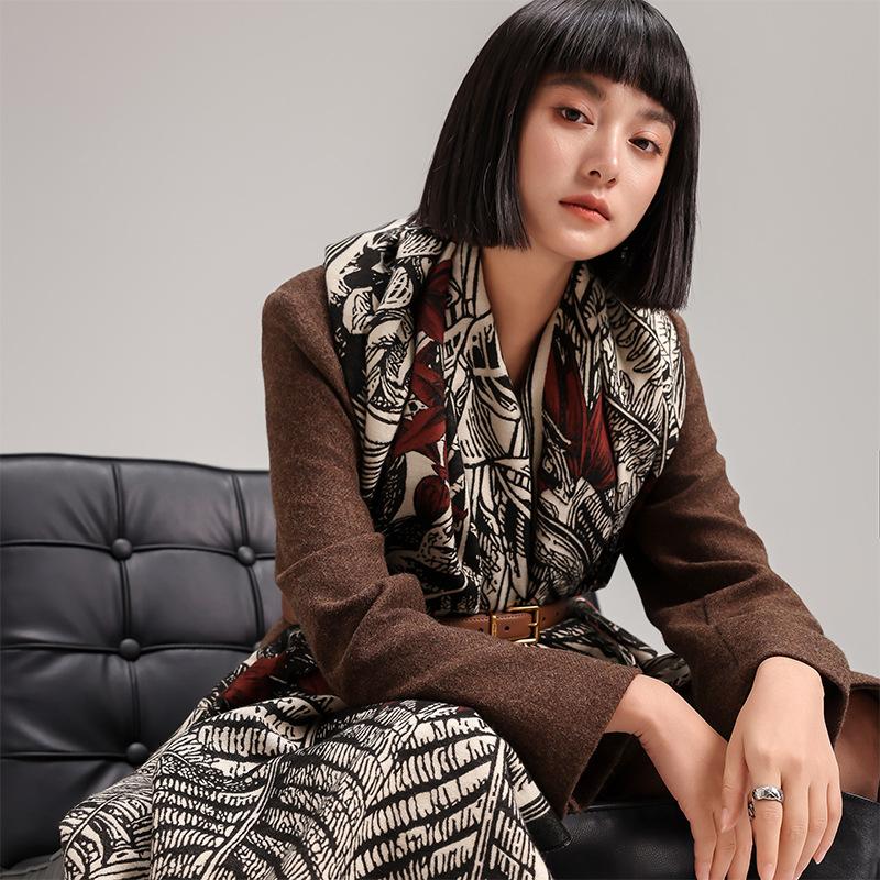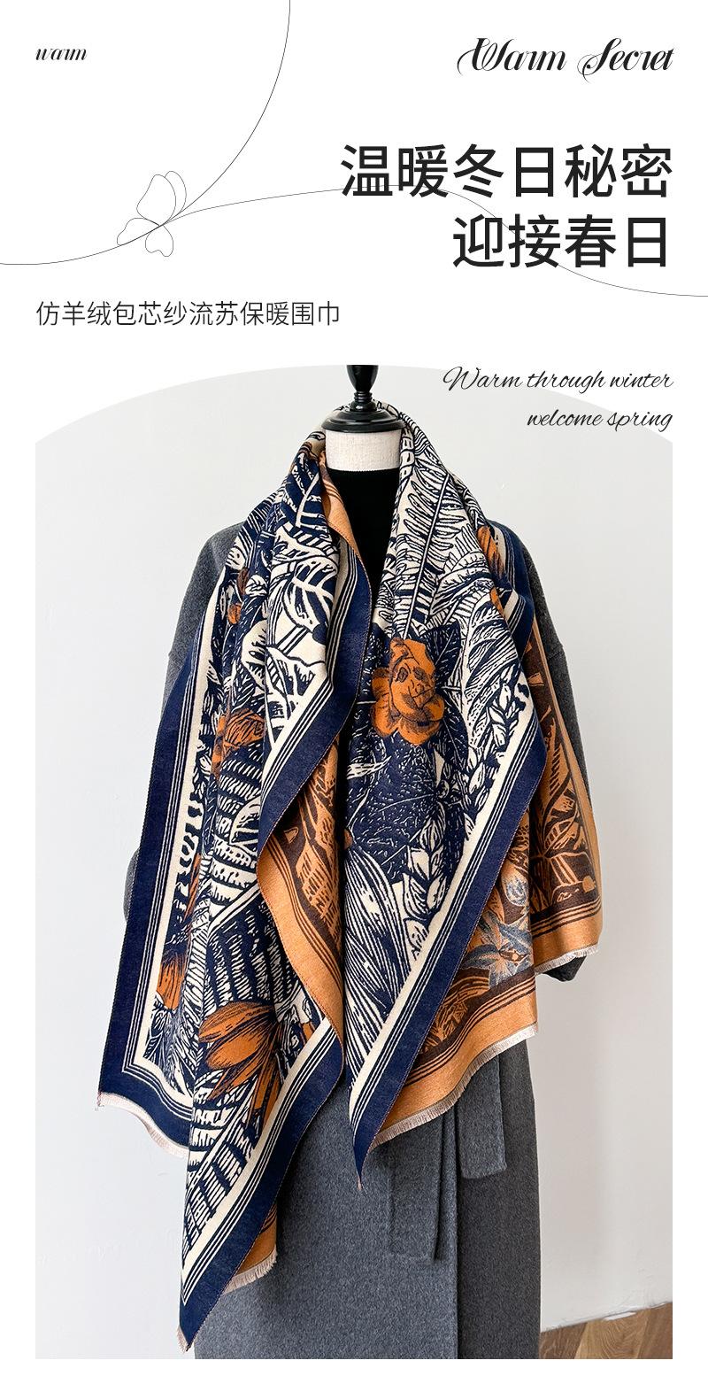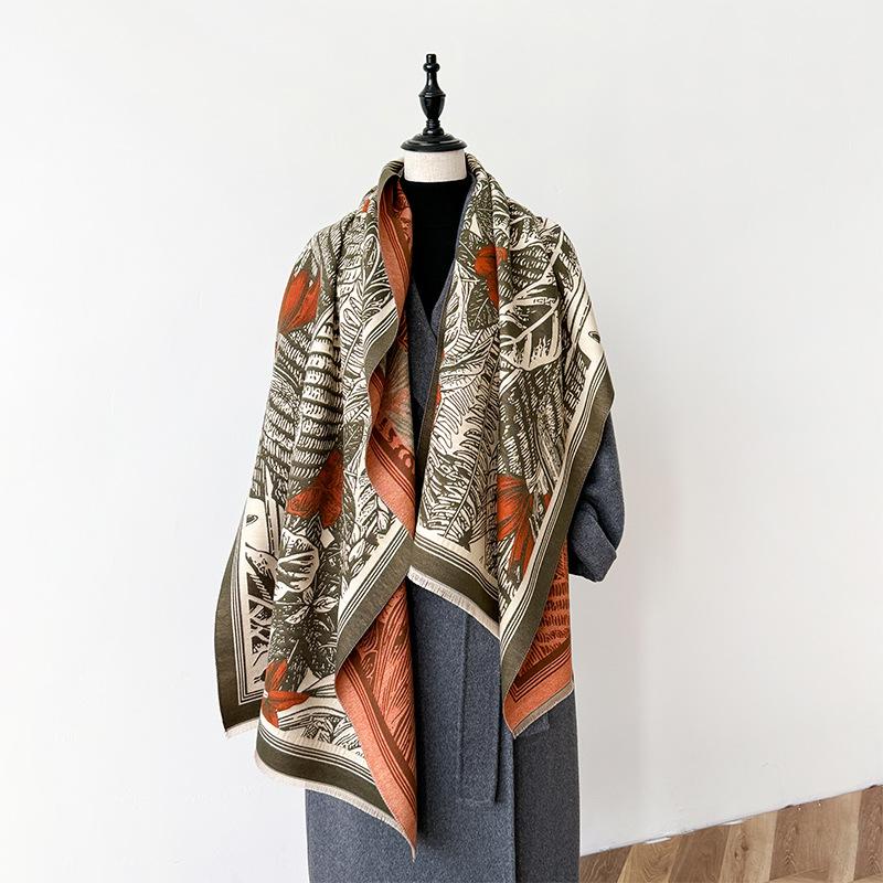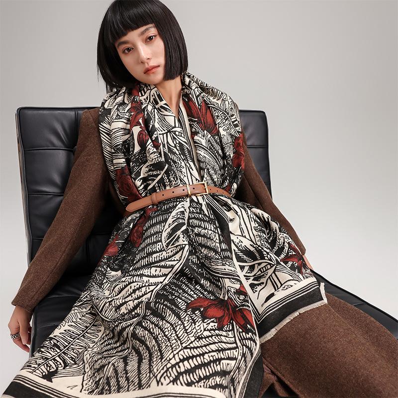 Bufanda Cálida de Cachemira Imitada de Doble Cara con Estampado de Moda con Textura de Líneas Florales de Estilo Europeo y Americano para Otoño e Invierno Chal Exterior para Mujer