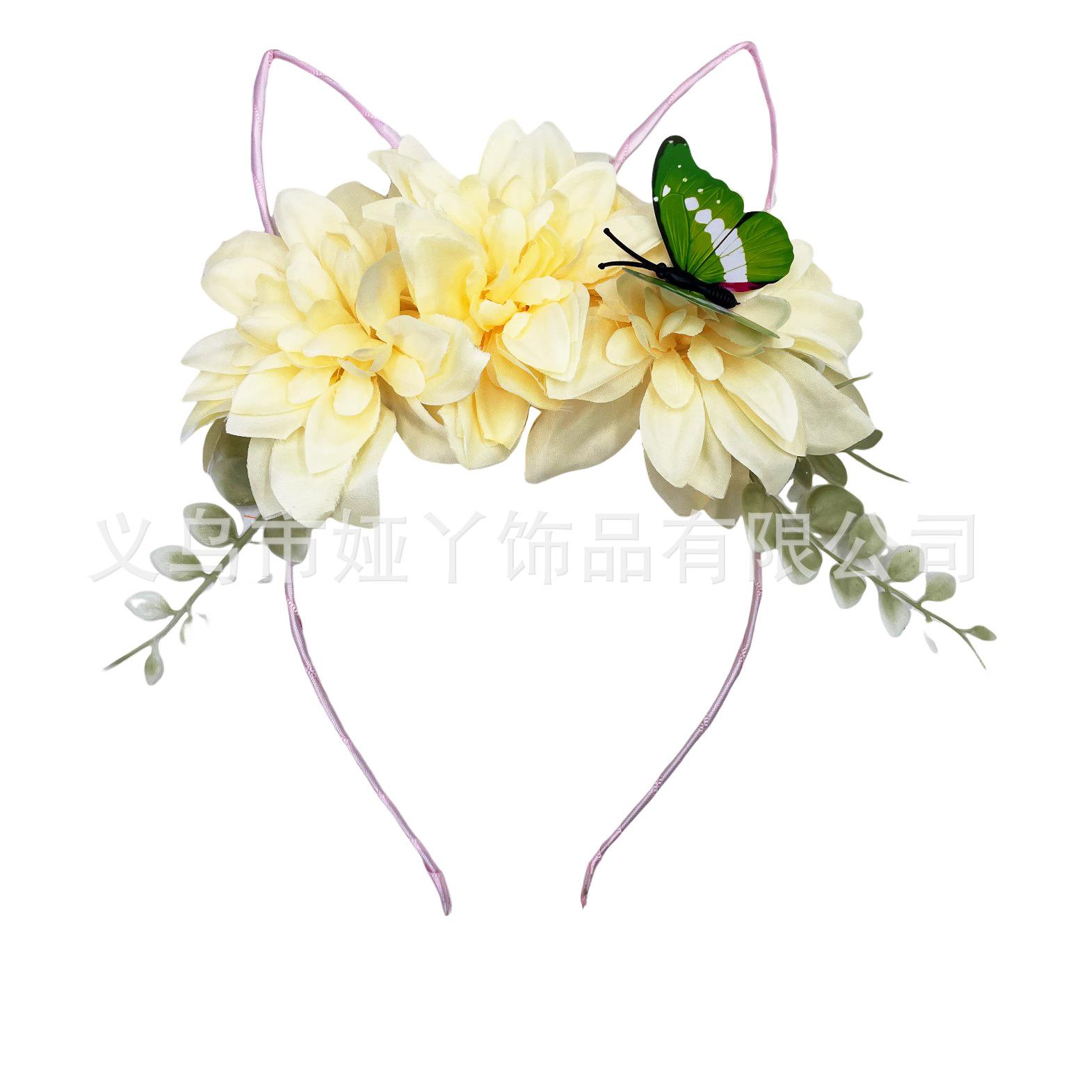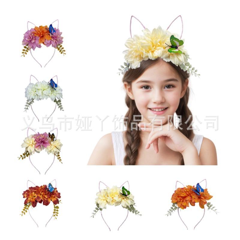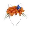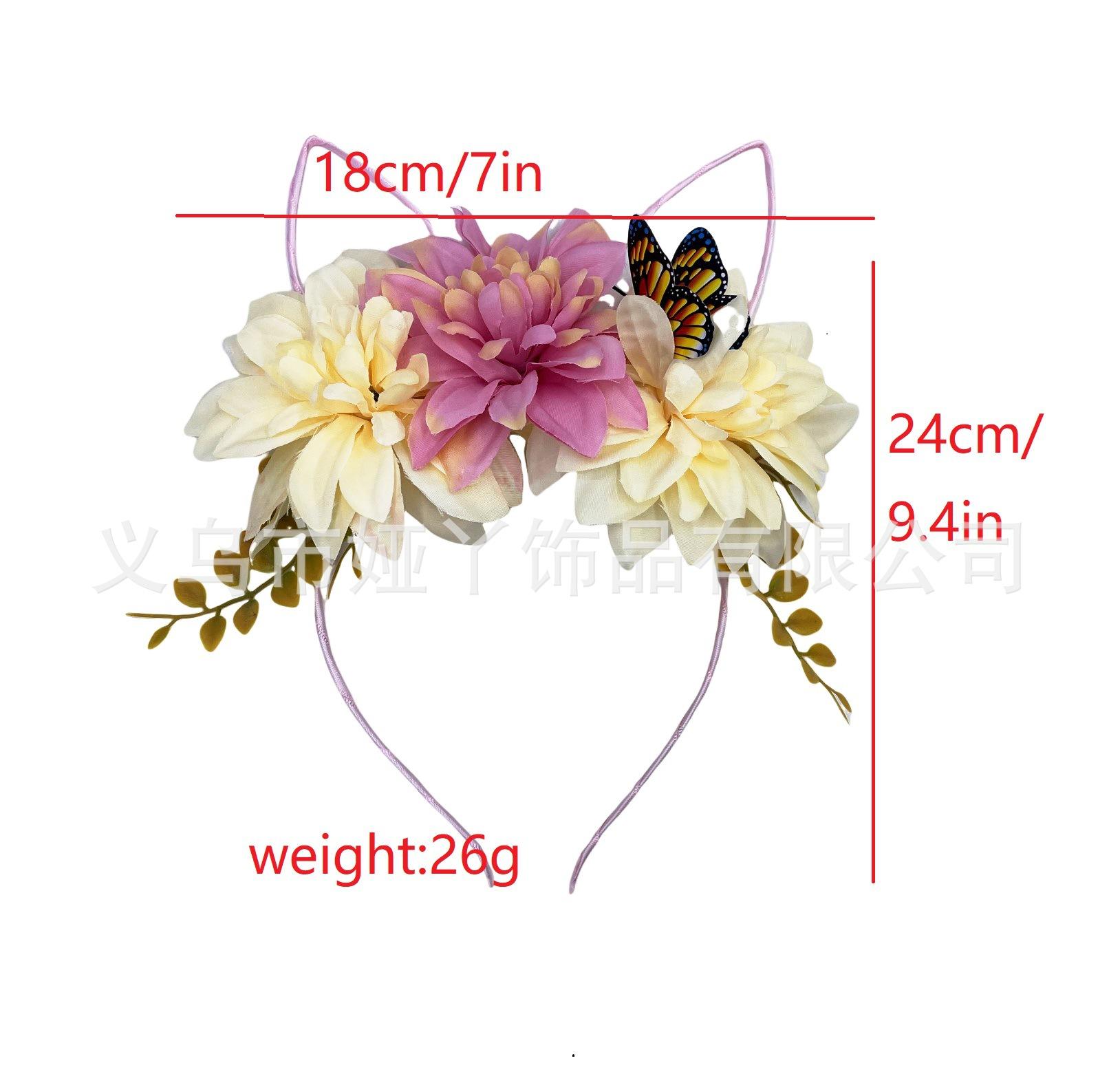 Diadema con orejas de gato para el Día del Niño, para actuaciones escénicas, Pascua, con flores artificiales y orejas de conejo.