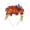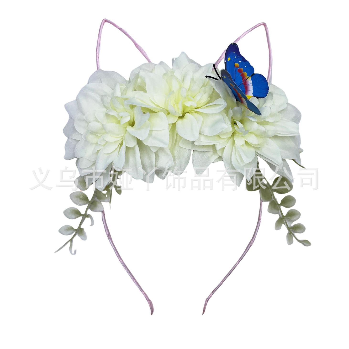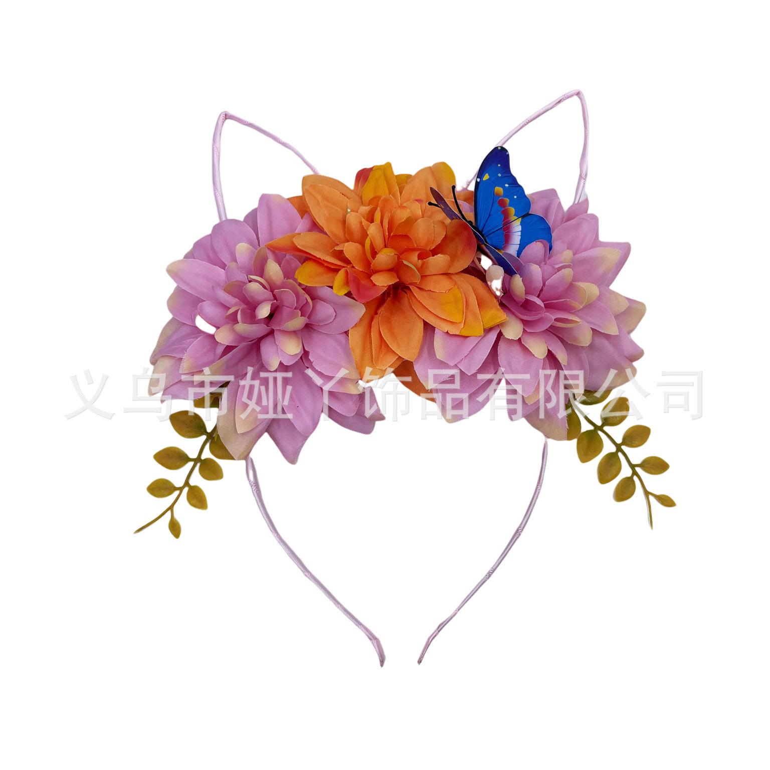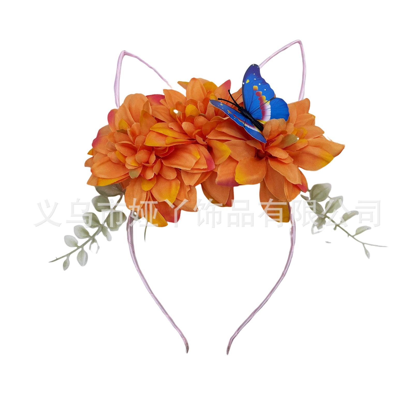 Diadema con orejas de gato para el Día del Niño, para actuaciones escénicas, Pascua, con flores artificiales y orejas de conejo.