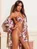 Nuevo conjunto de pijama sexy con tirantes divididos, encaje sexy con almohadillas para el pecho, ropa de casa de cuatro piezas