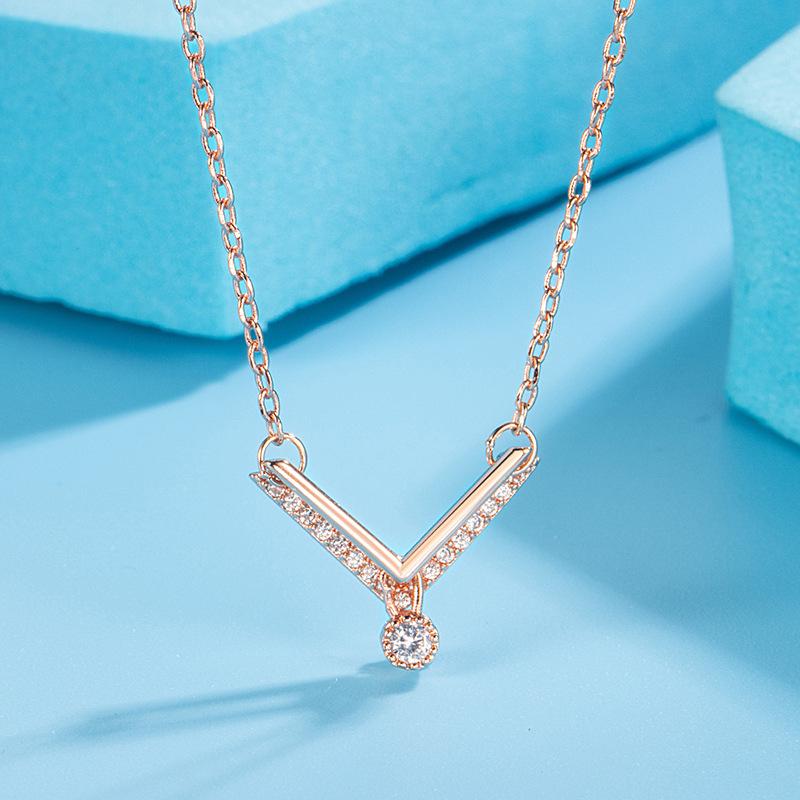 Nuevo estilo de collar simple en V con diamantes para mujer, diseño de nicho de lujo ligero, moda coreana, cadena de clavícula elegante que combina con todo para uso diario.