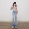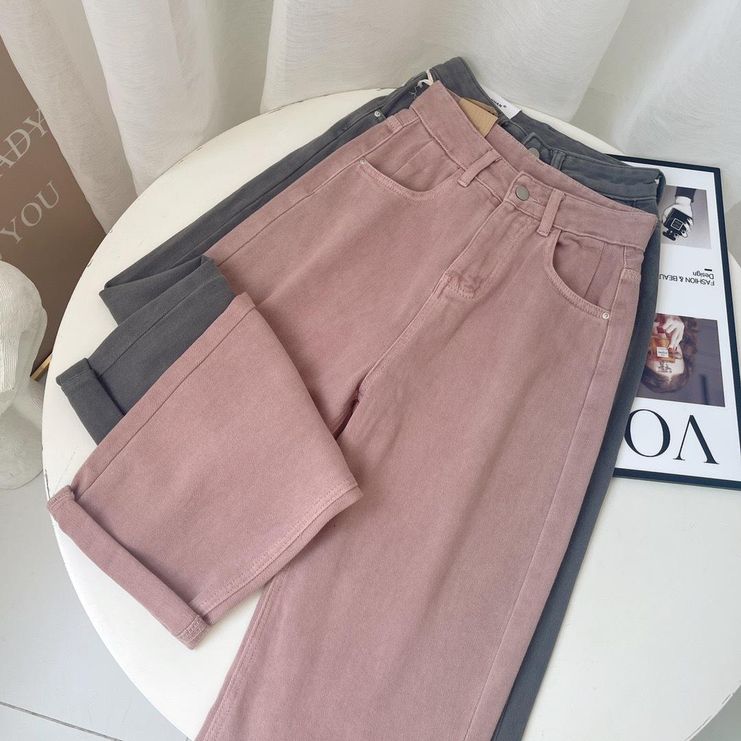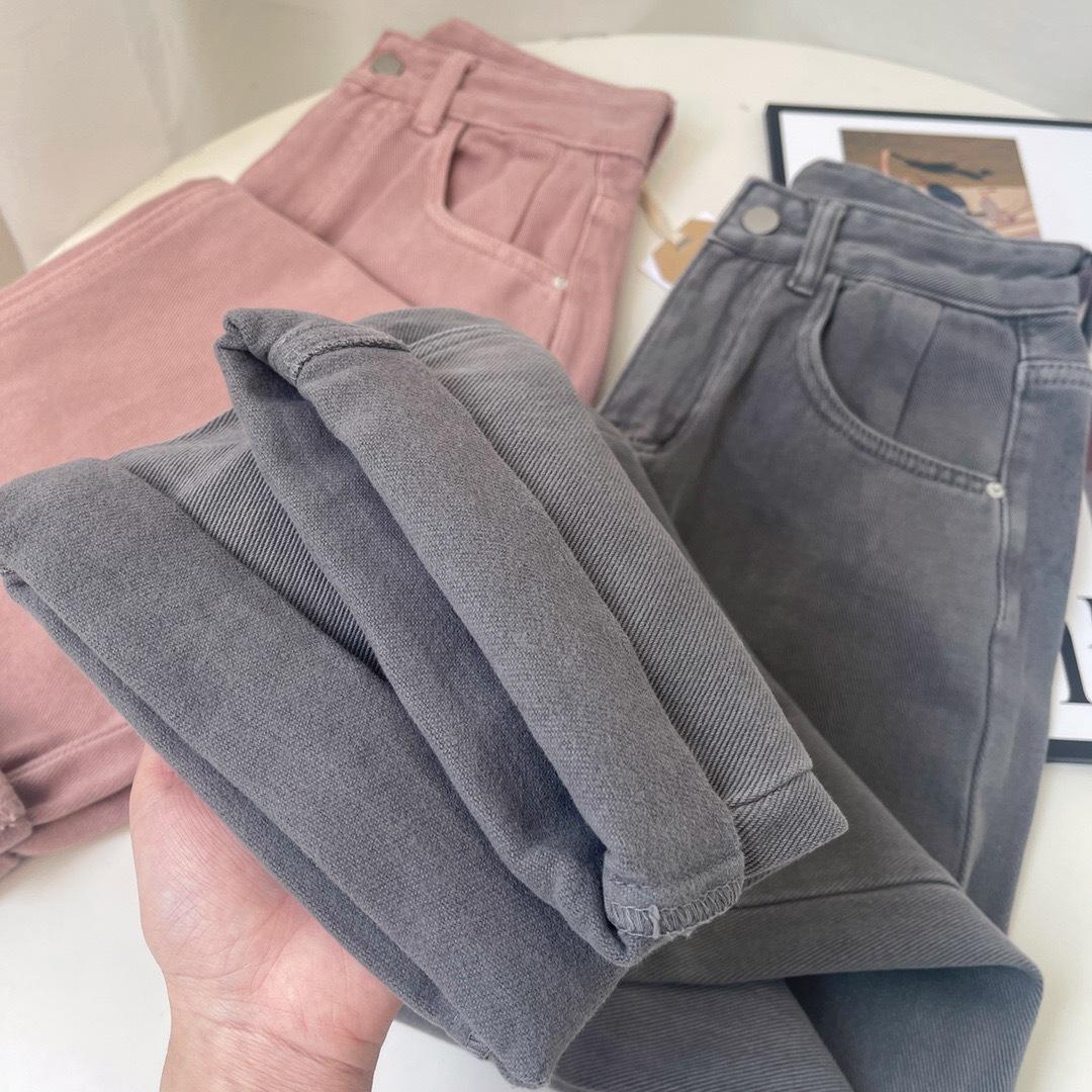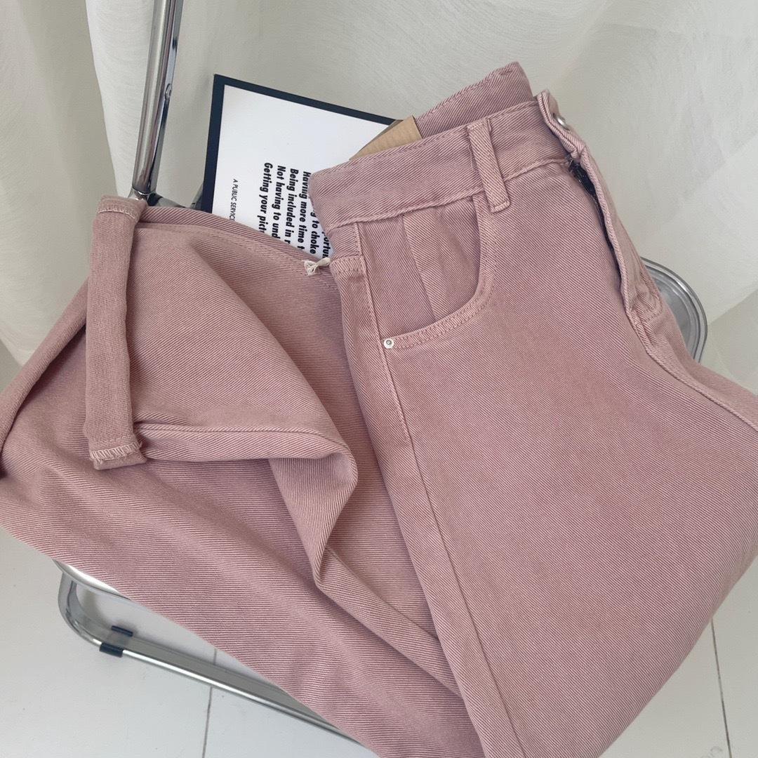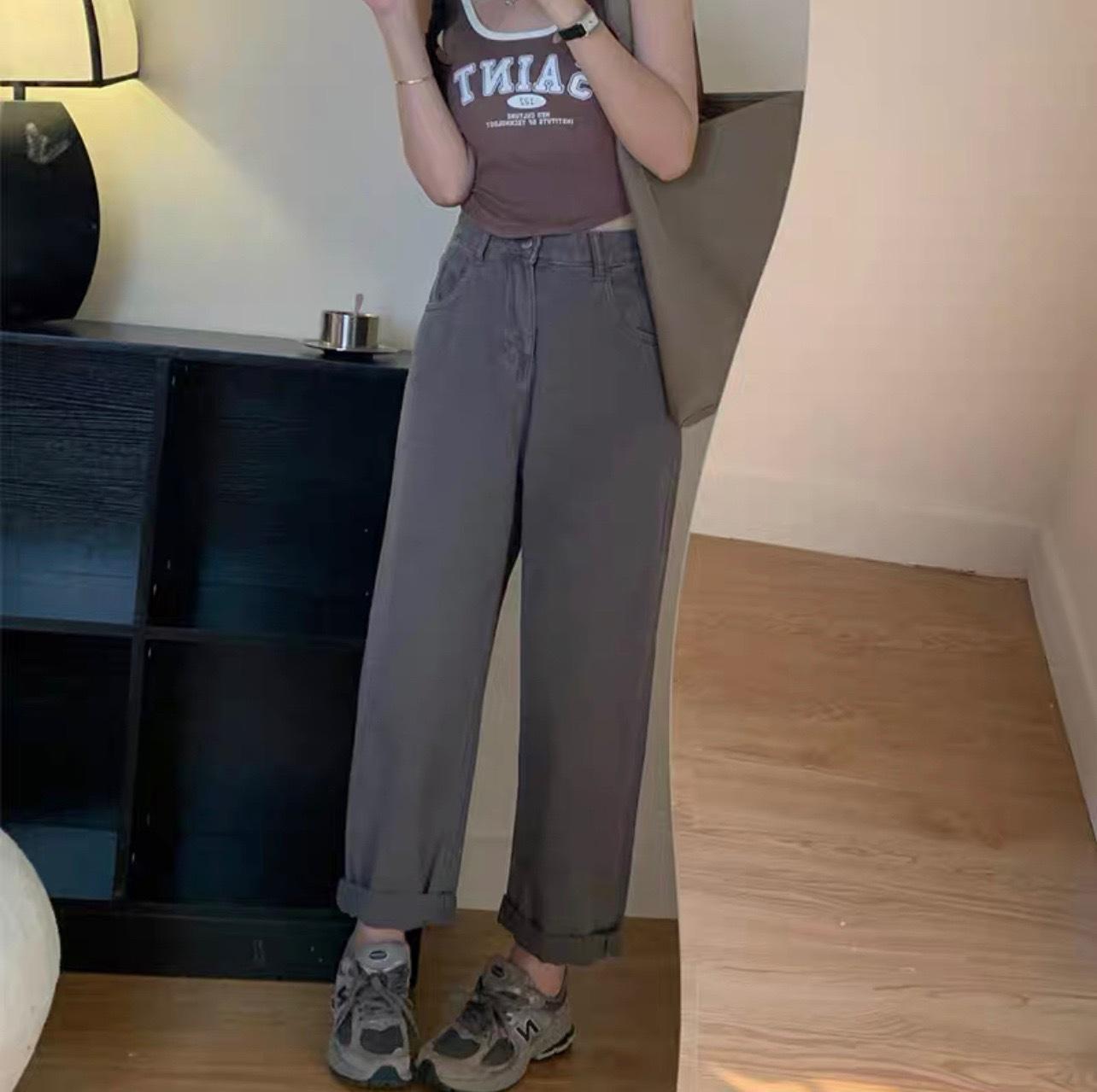 Liquidación Especial W00262 Jeans de Trabajo Desgastados Sueltos Cintura Alta Adelgazantes Cubre Caderas Casuales Pantalones Rectos Liquidación