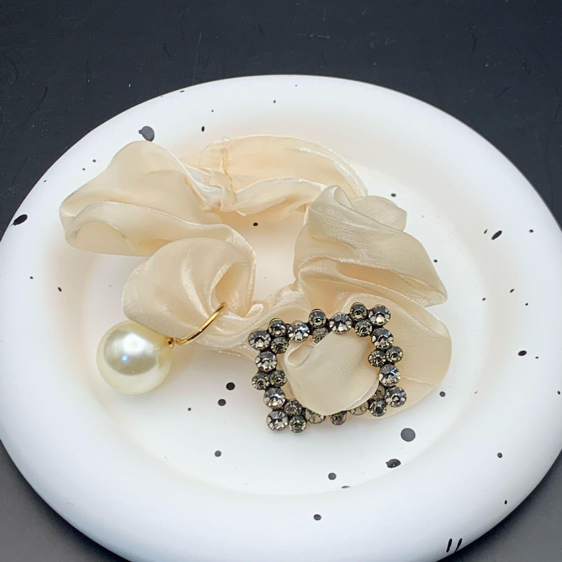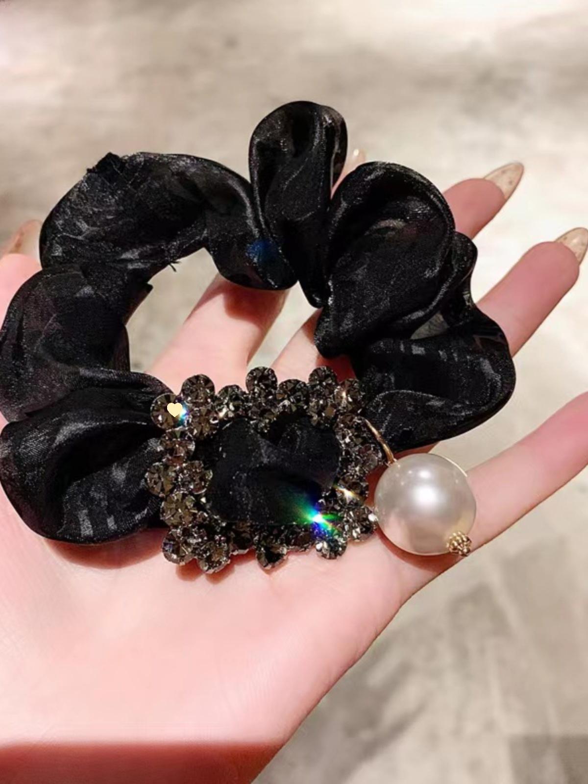 Anillo para el cabello de intestino grueso para mujer, nuevo estilo coreano 2024, ligero, lujoso, con diamantes de imitación, accesorios para el cabello con perlas para adultos, flor para la cabeza de celebridades cibernéticas.